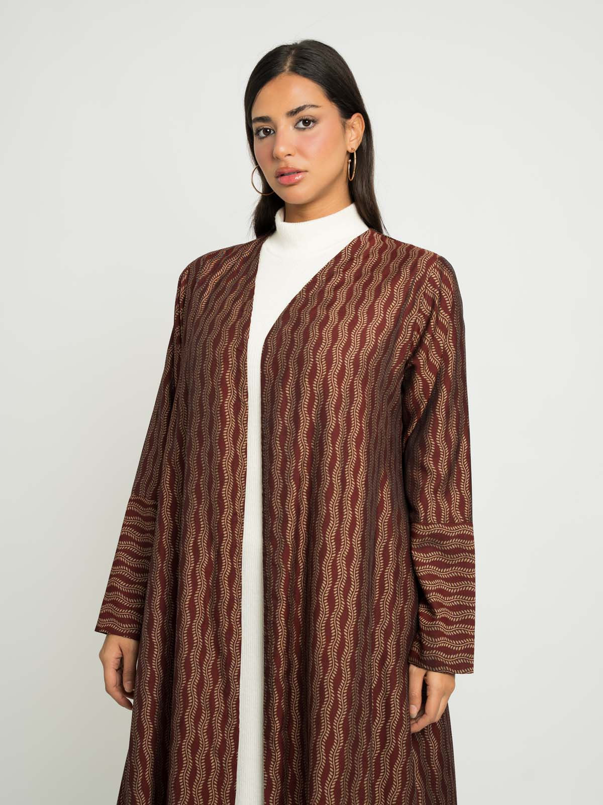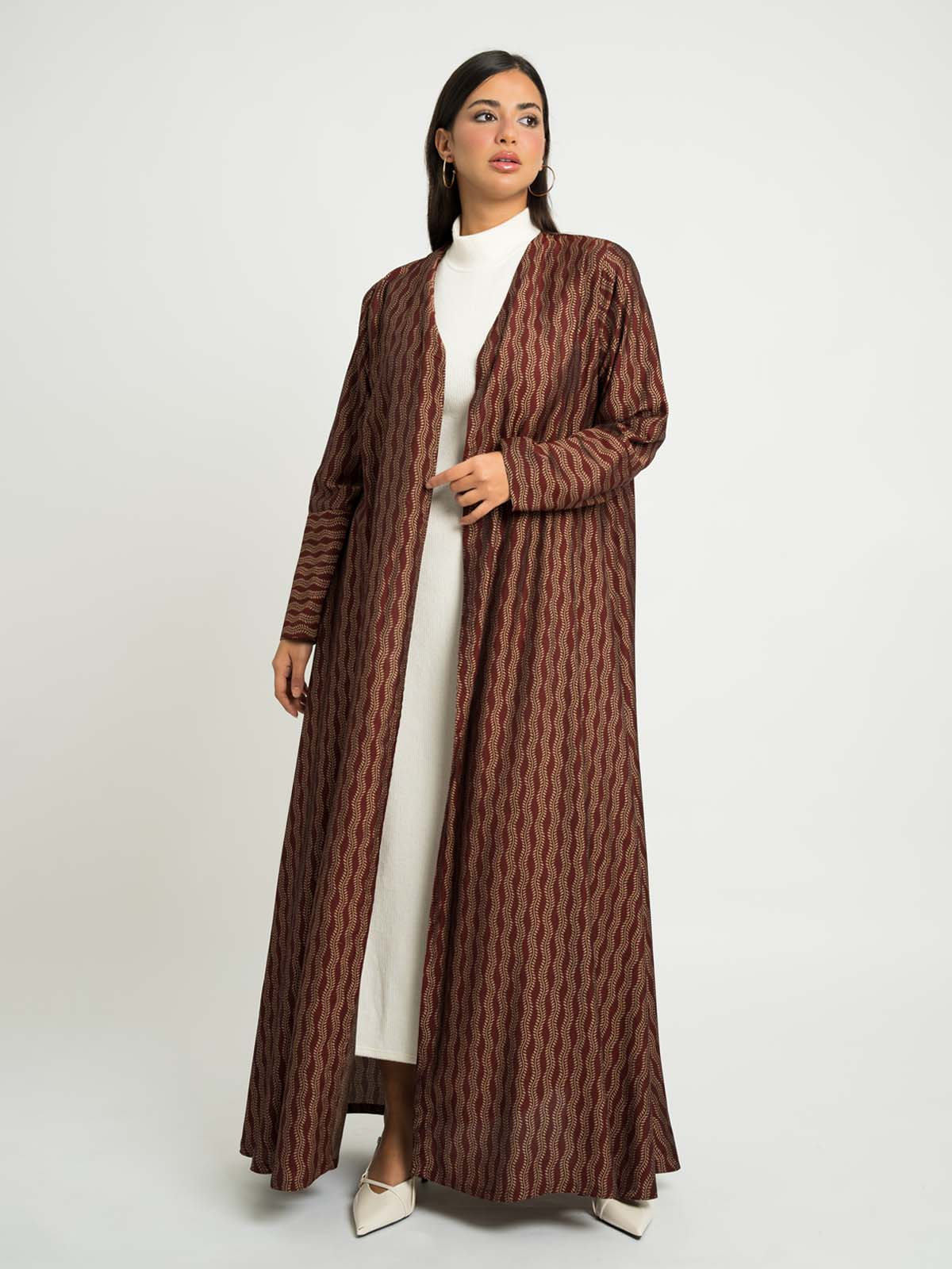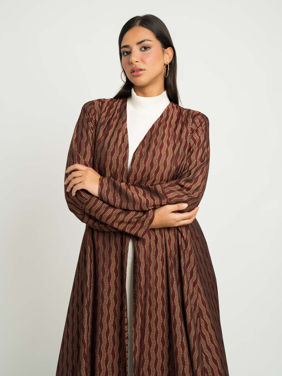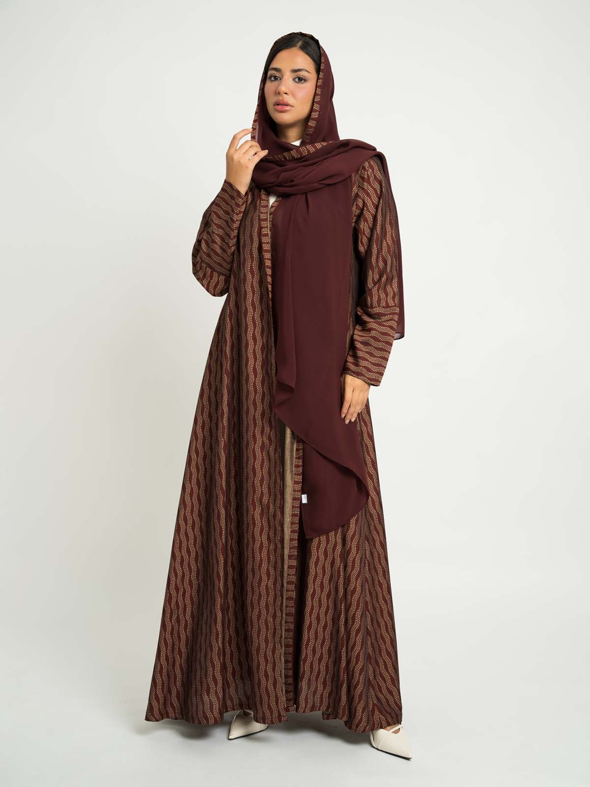 A breezy, relaxed-fit A-cut half cloche abaya made of 100% modal, designed with comfort and attention to detail in mind.