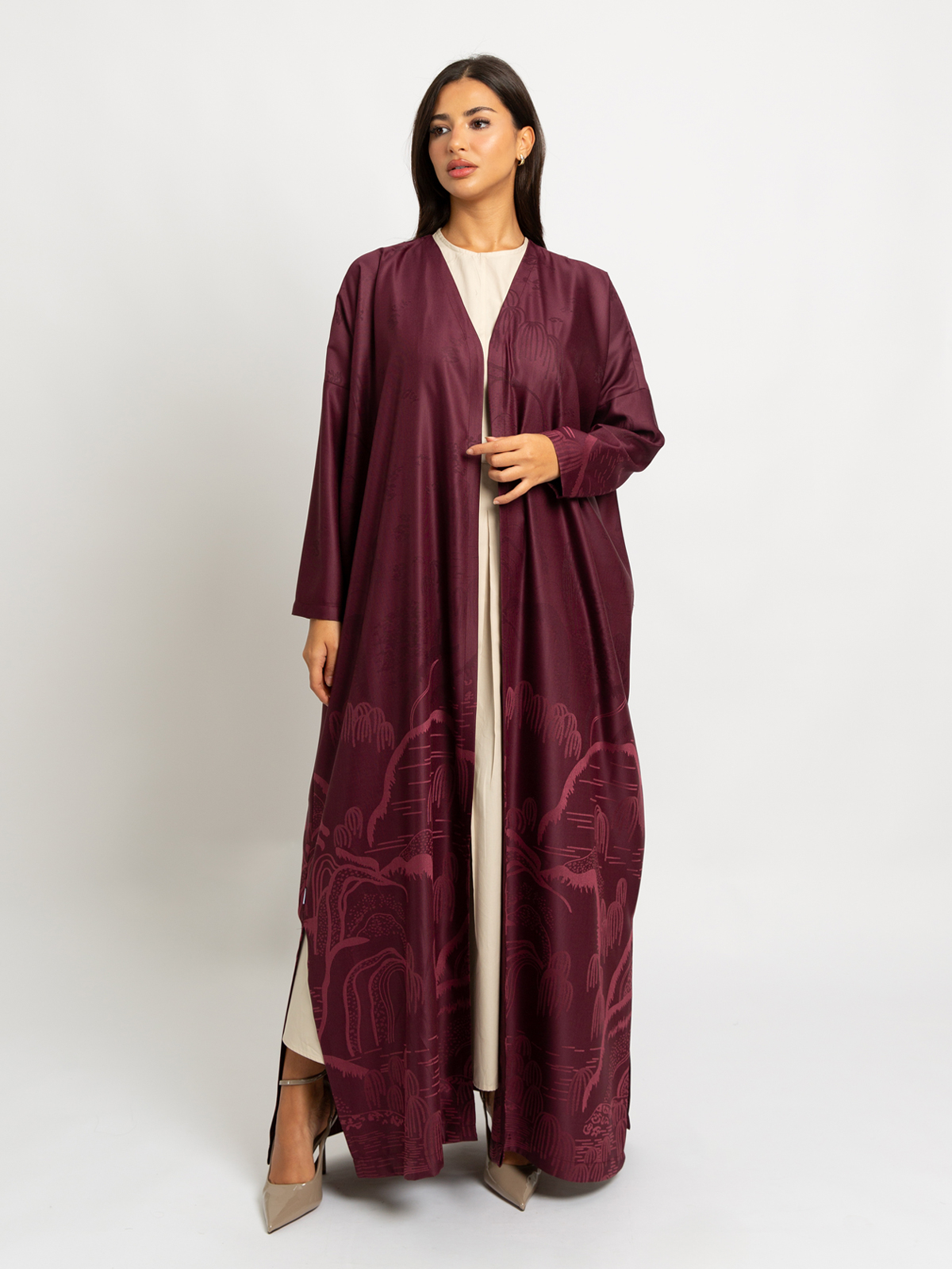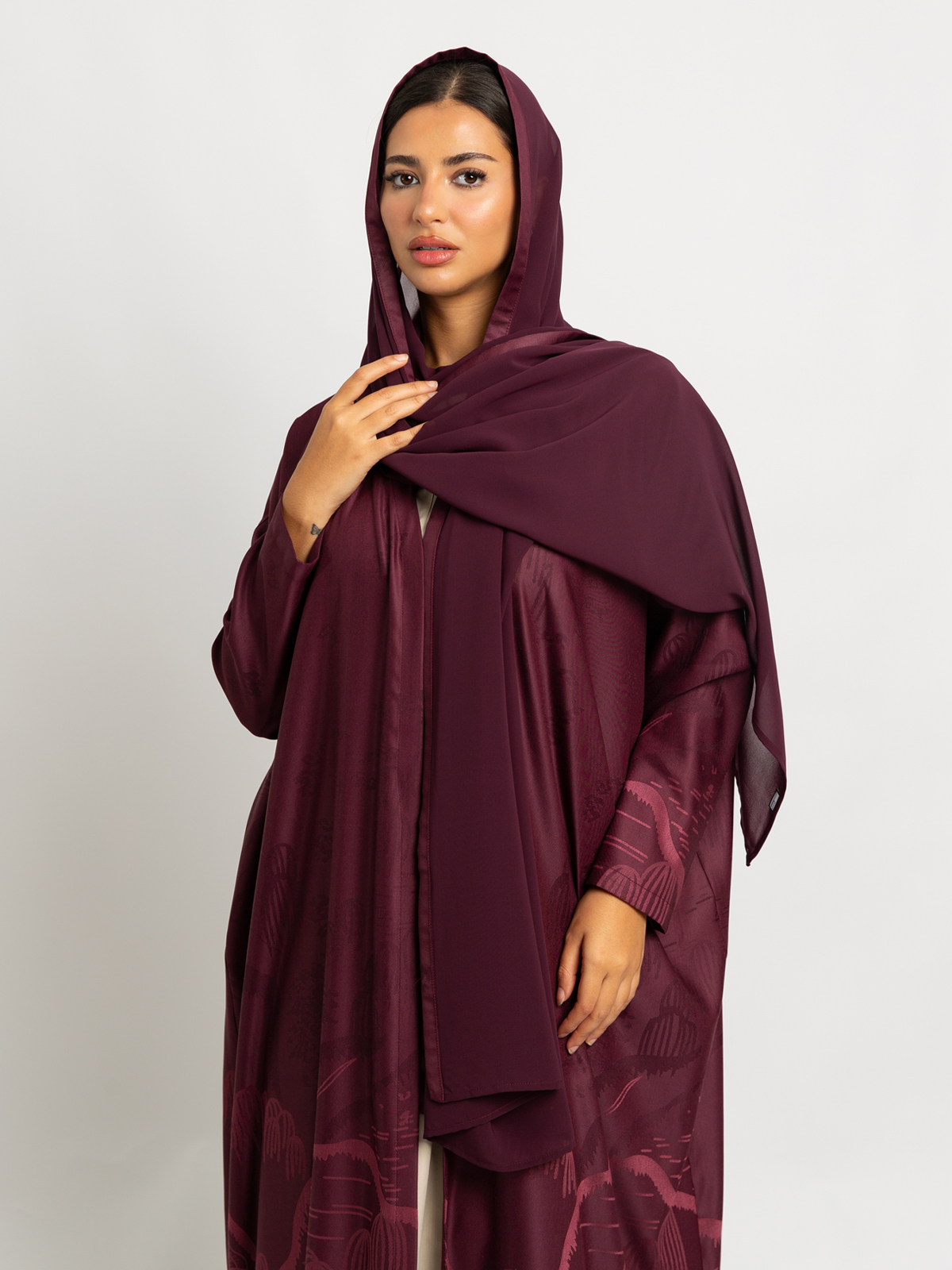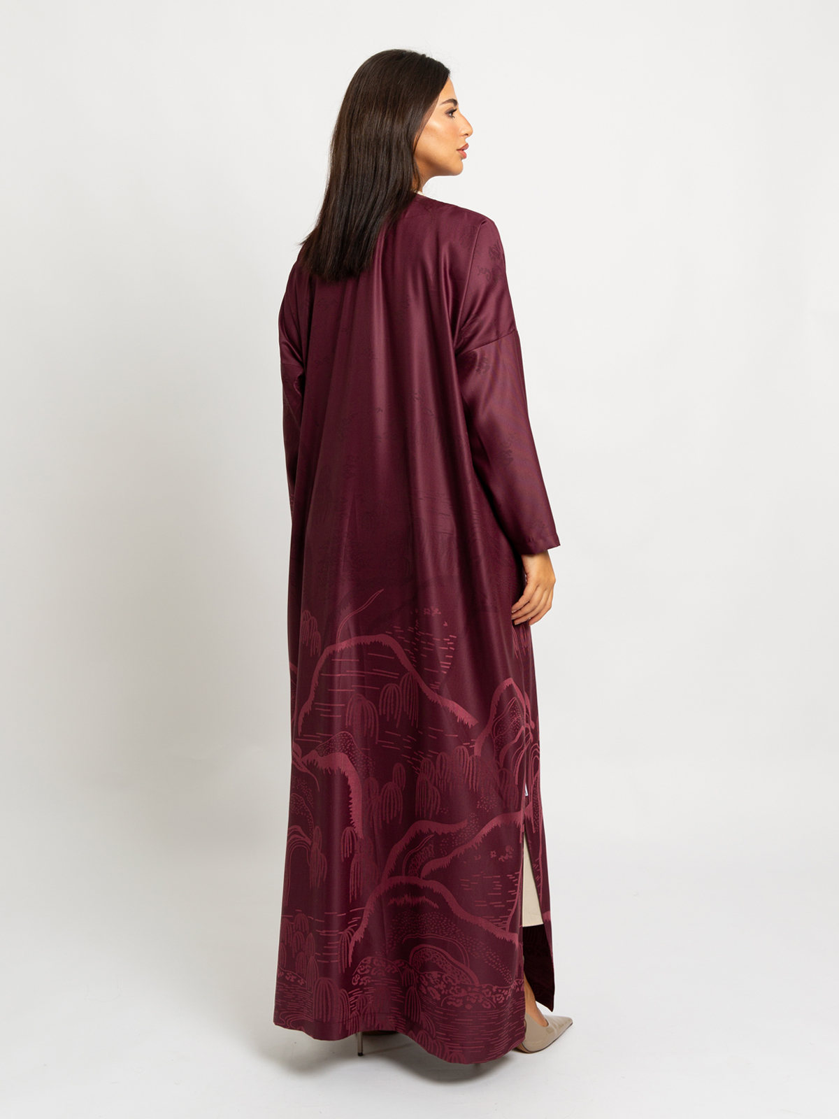 Maroon Earth Peaks Wide-fit Tight Sleeves Abaya