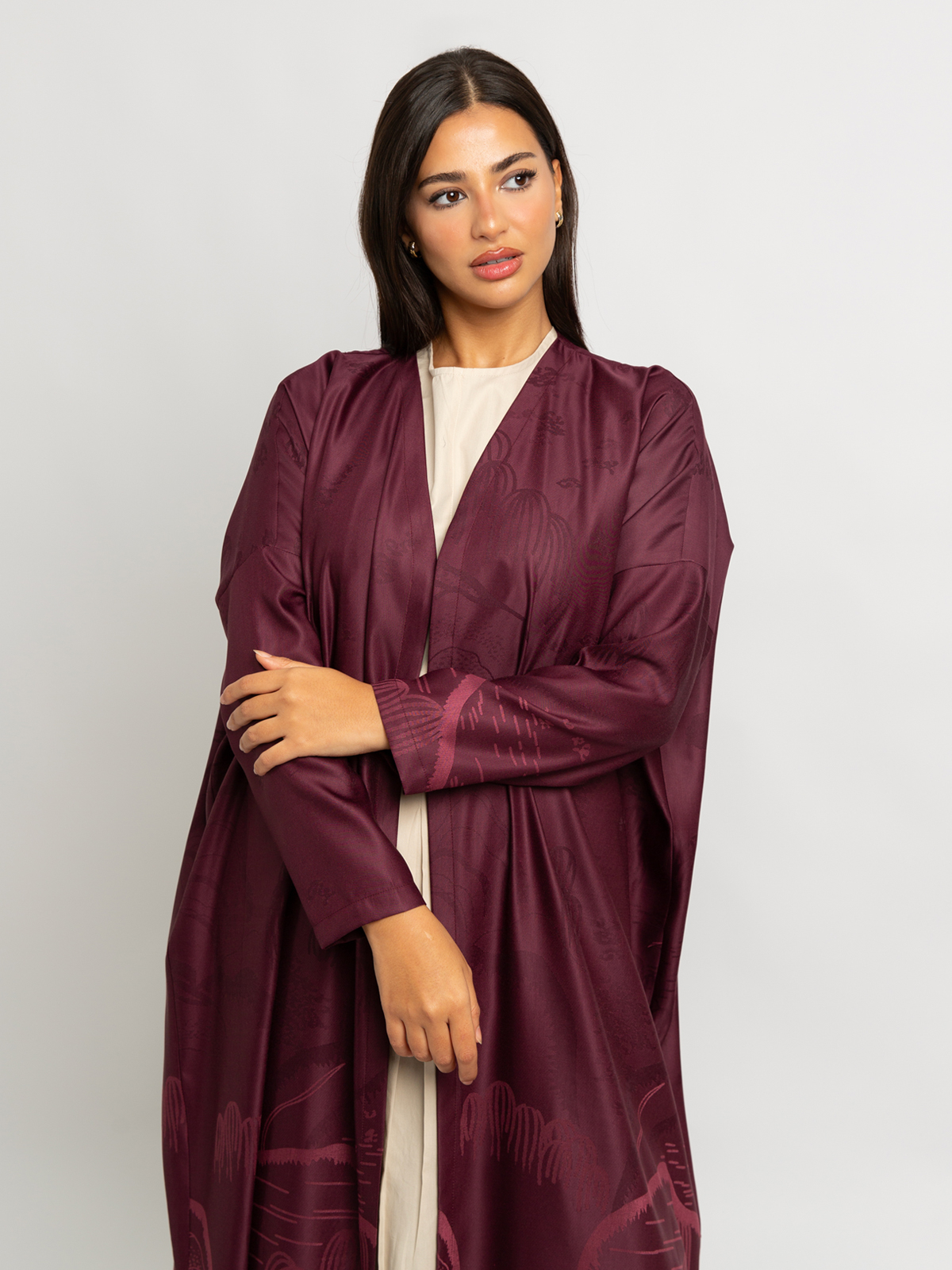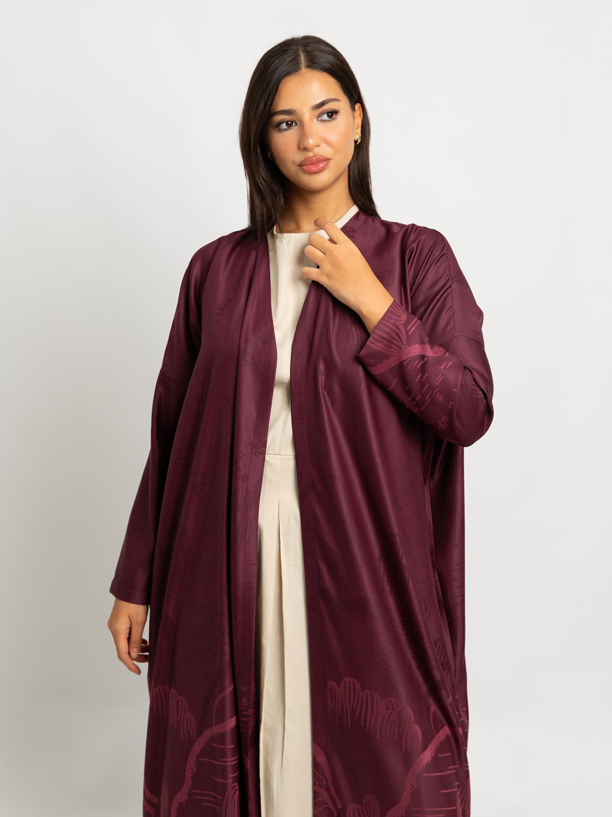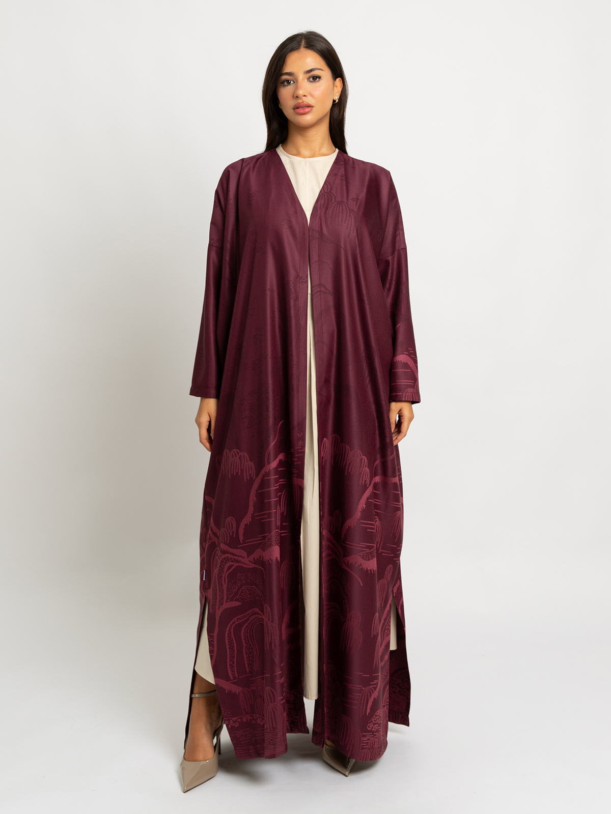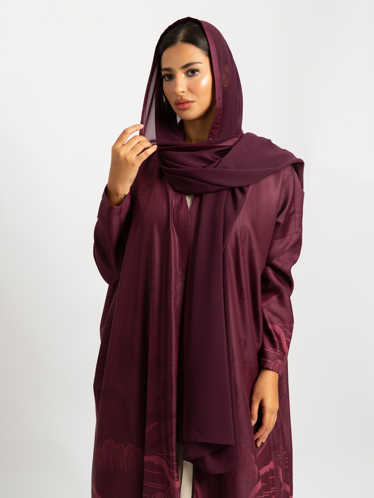 Maroon Earth Peaks Wide-fit Tight Sleeves Abaya