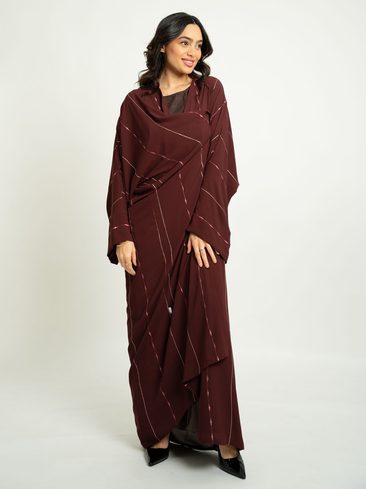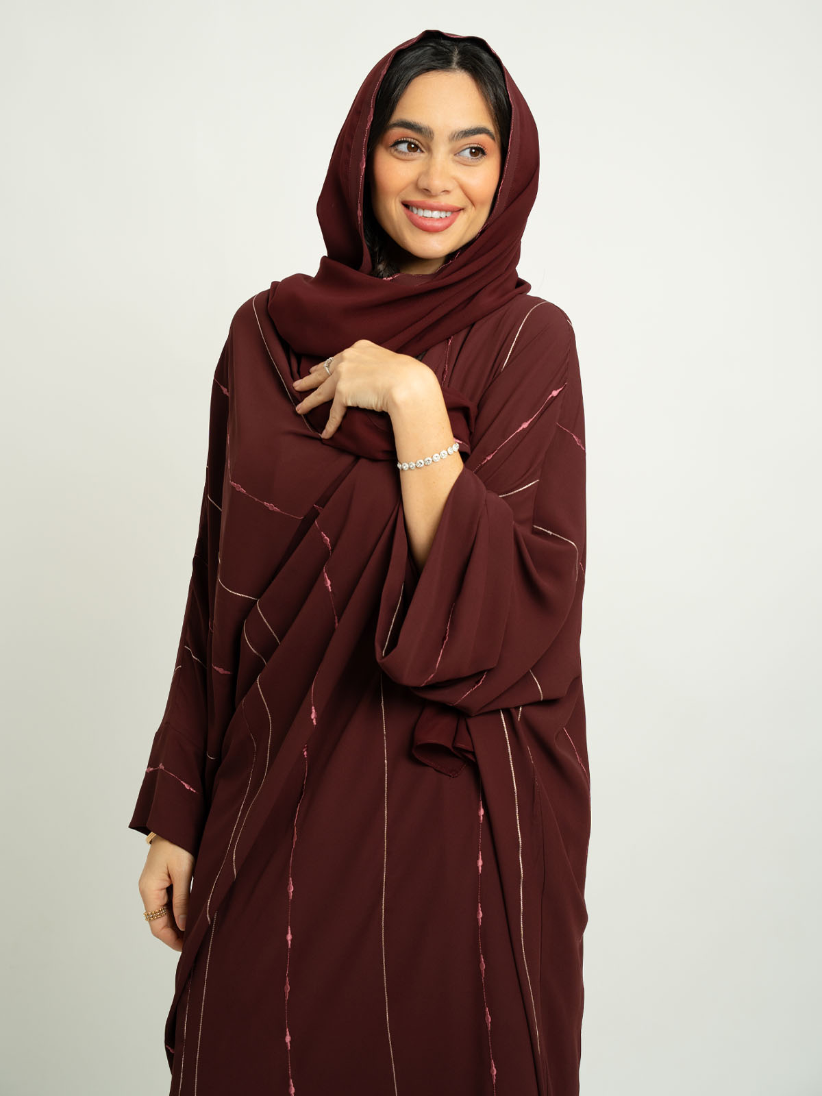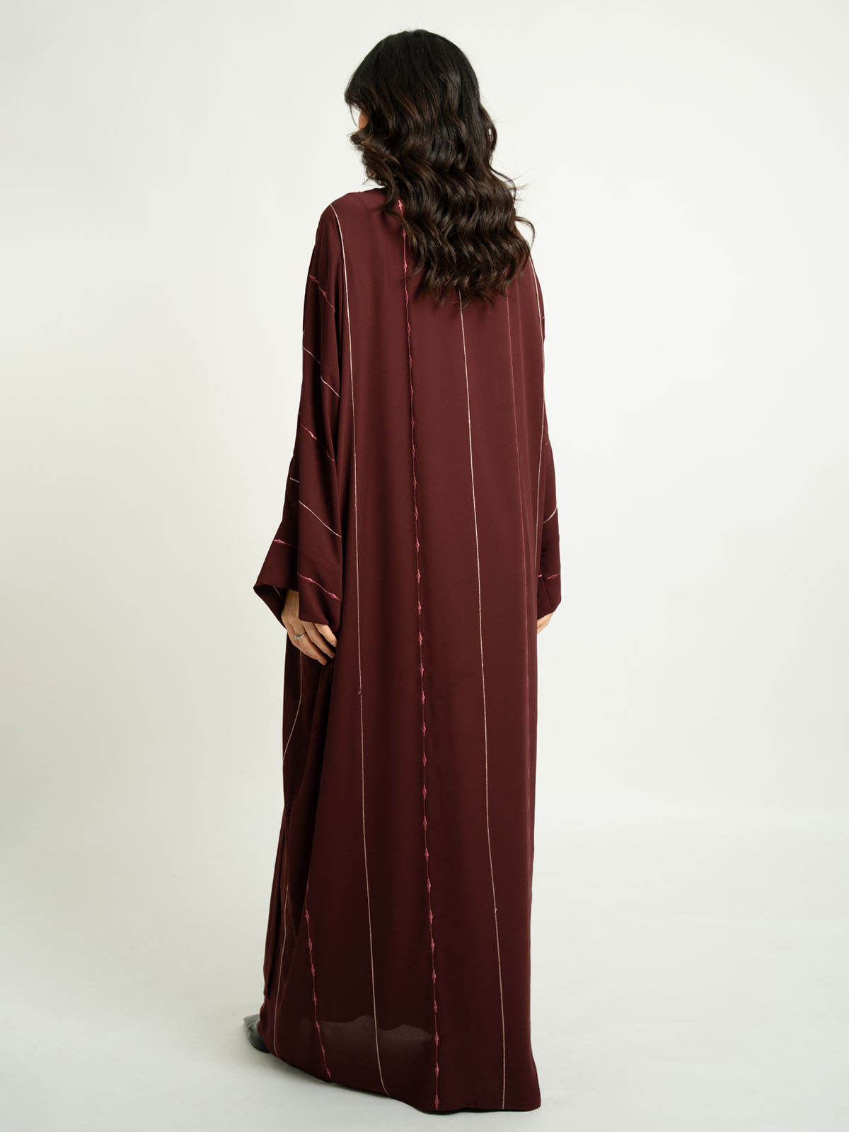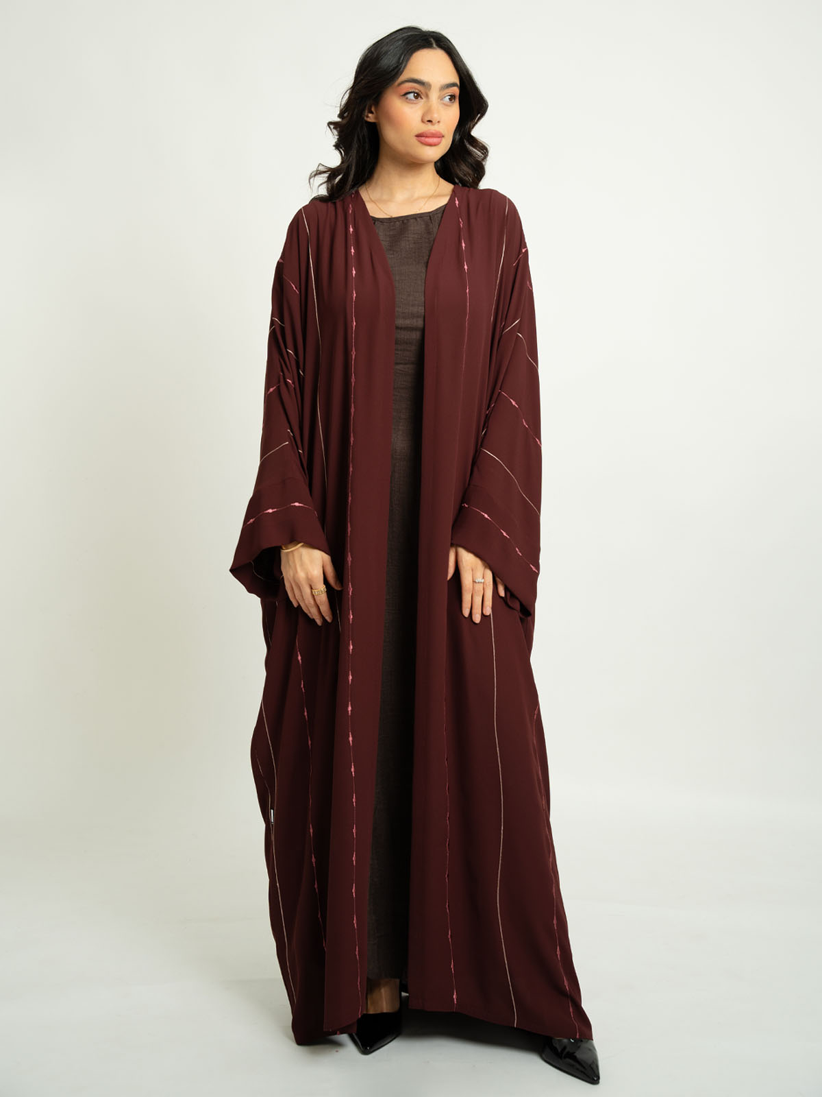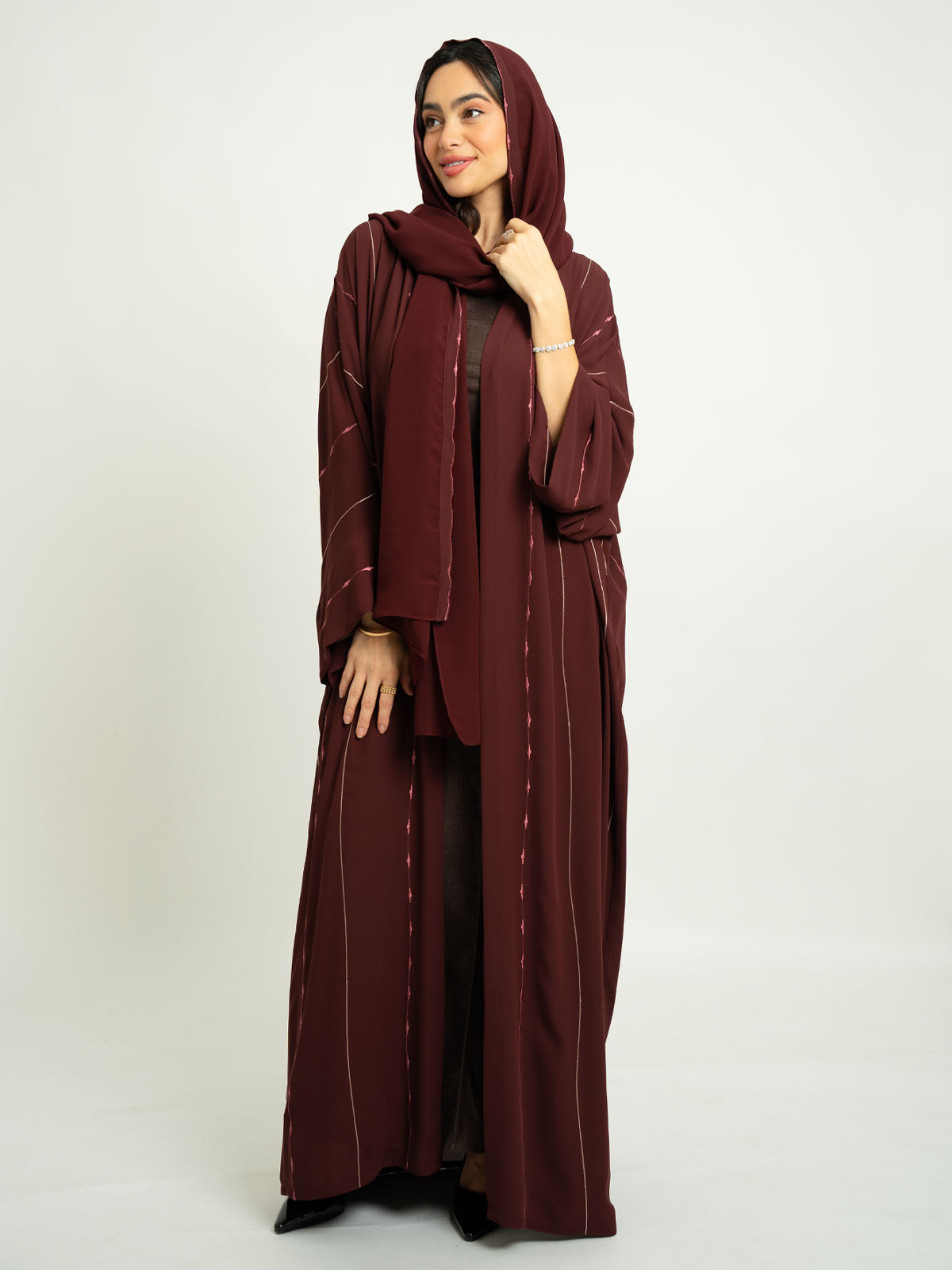 Wide-Fit Long Open Abaya in Embroidered Light Crepe Fabric