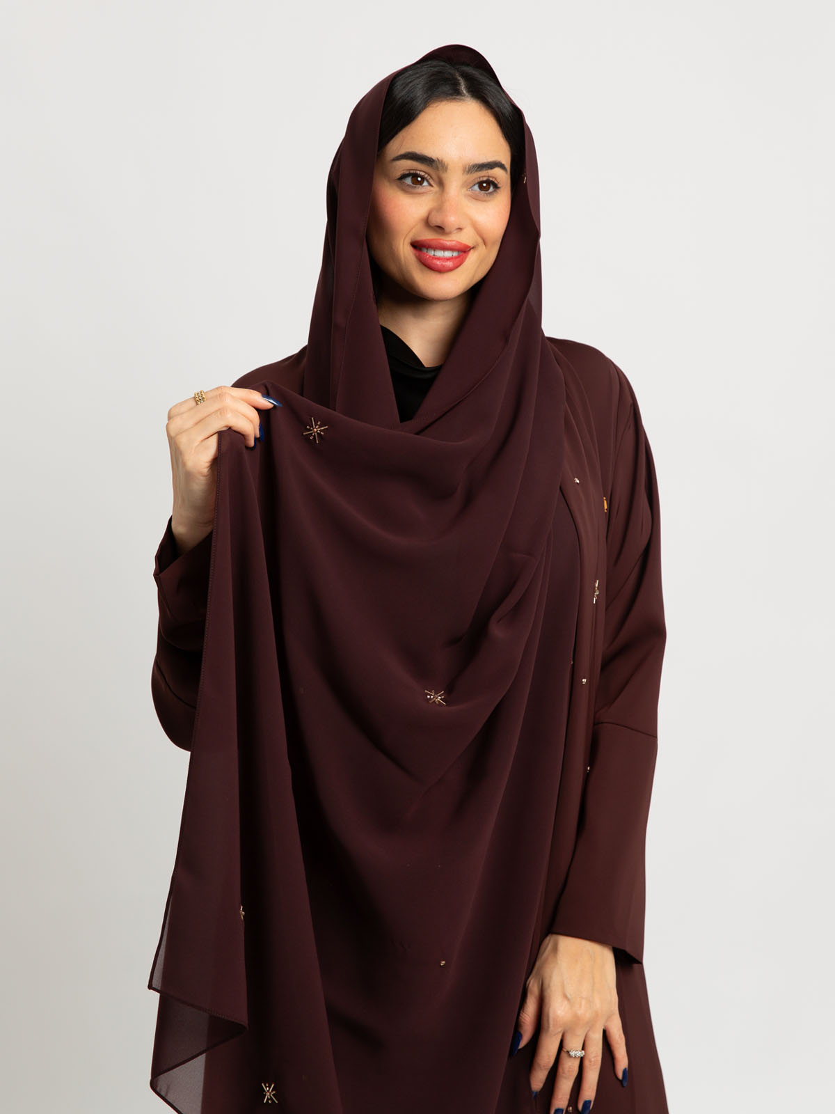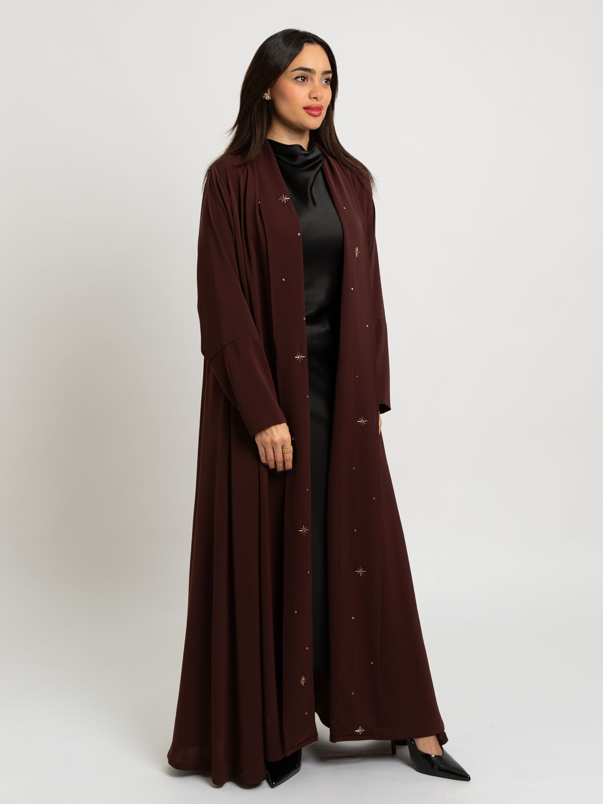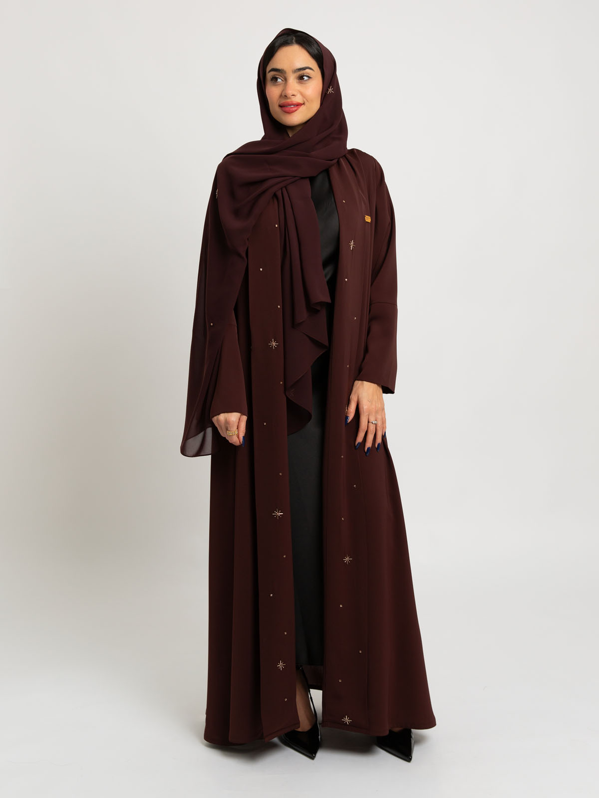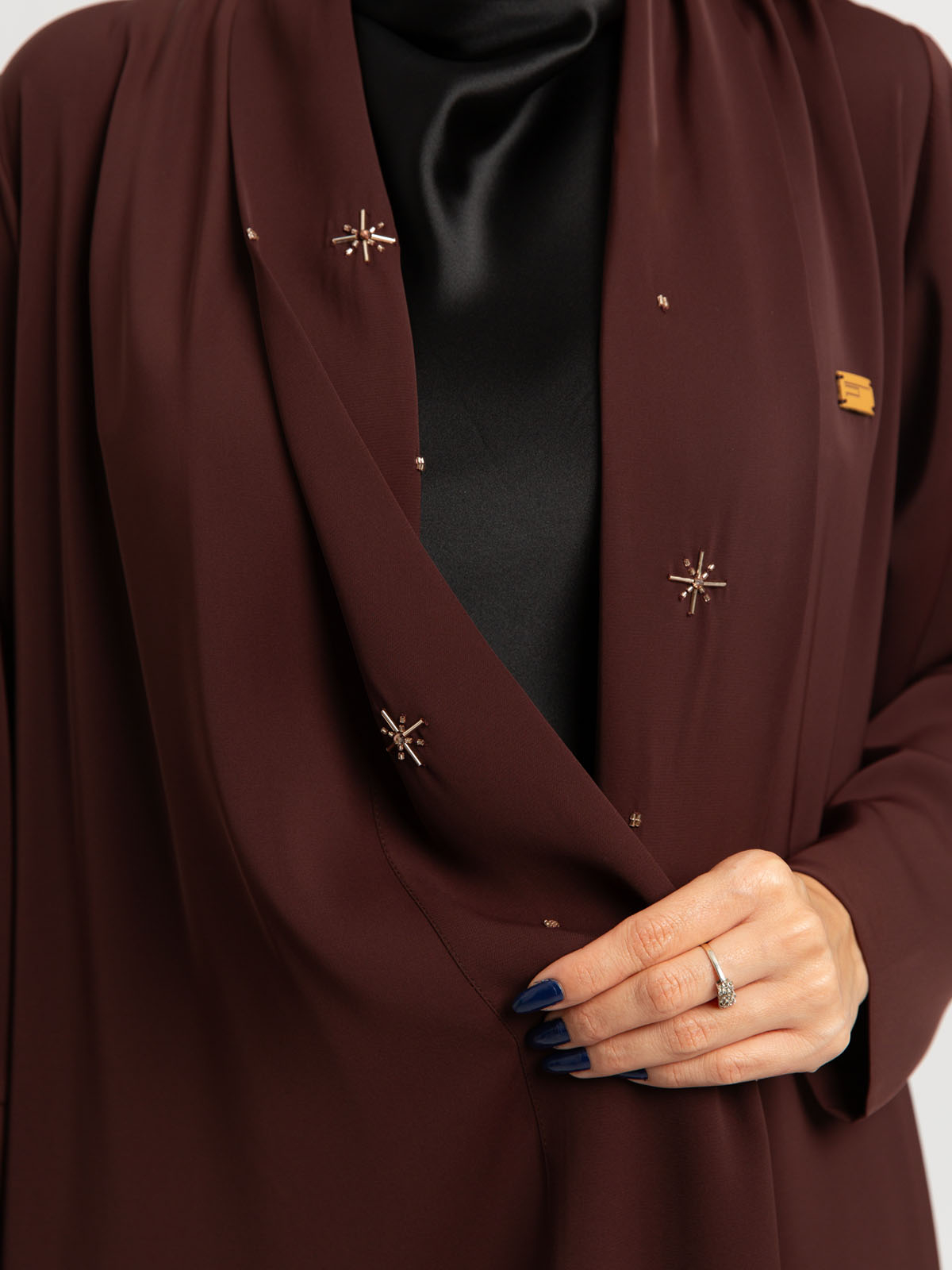 Half Cloche A-Cut Long Open Abaya in Beaded Crepe Fabric
