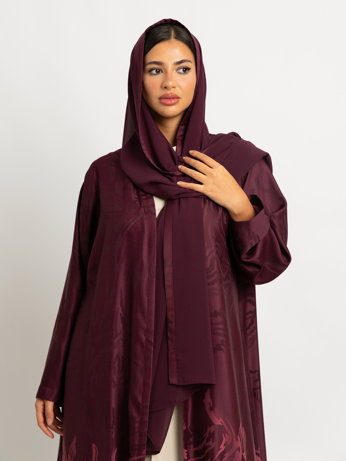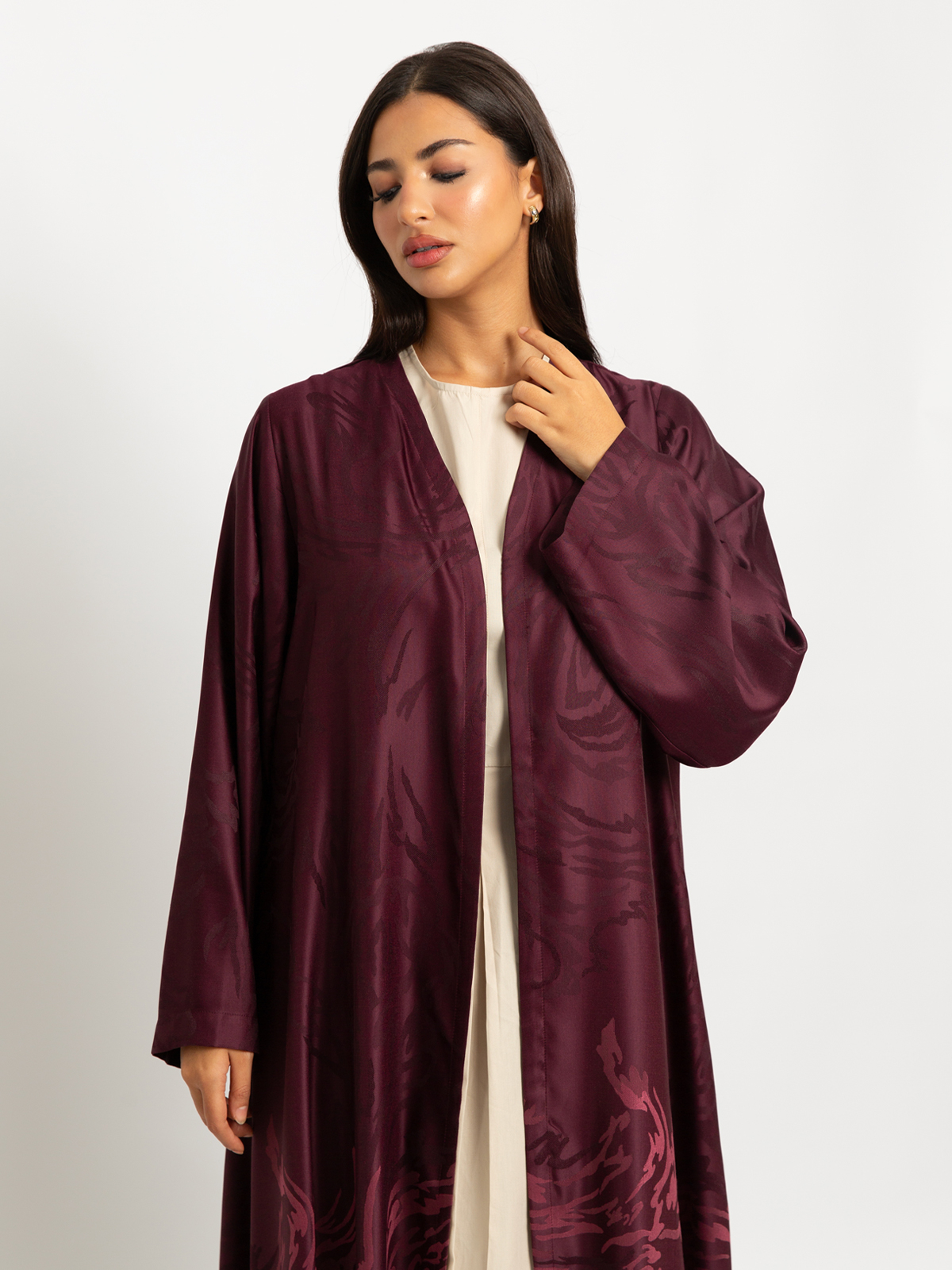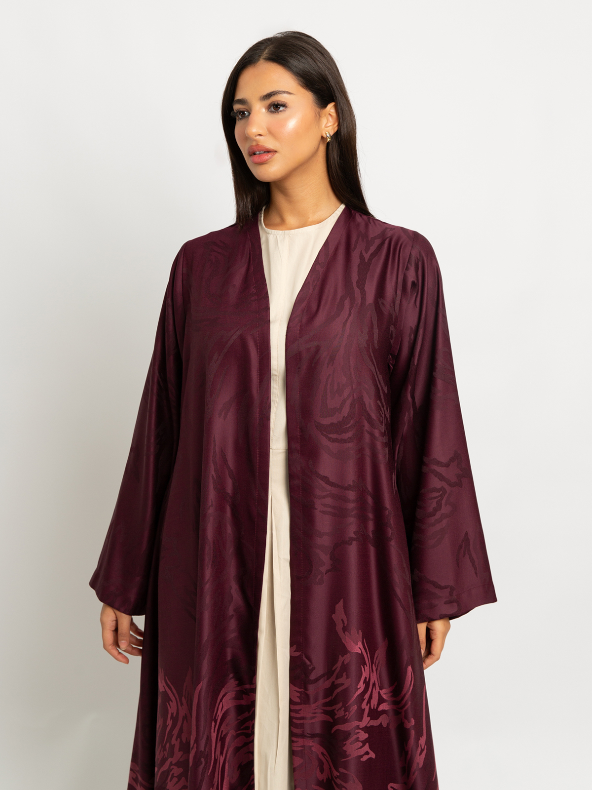 Half Cloche A-Cut Long Open Abaya in Mixed Woven Fabric