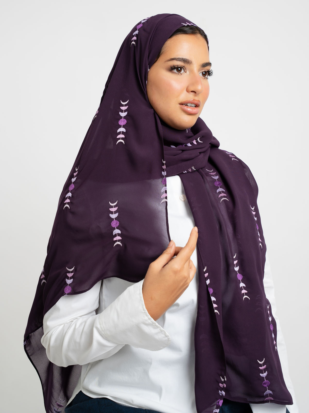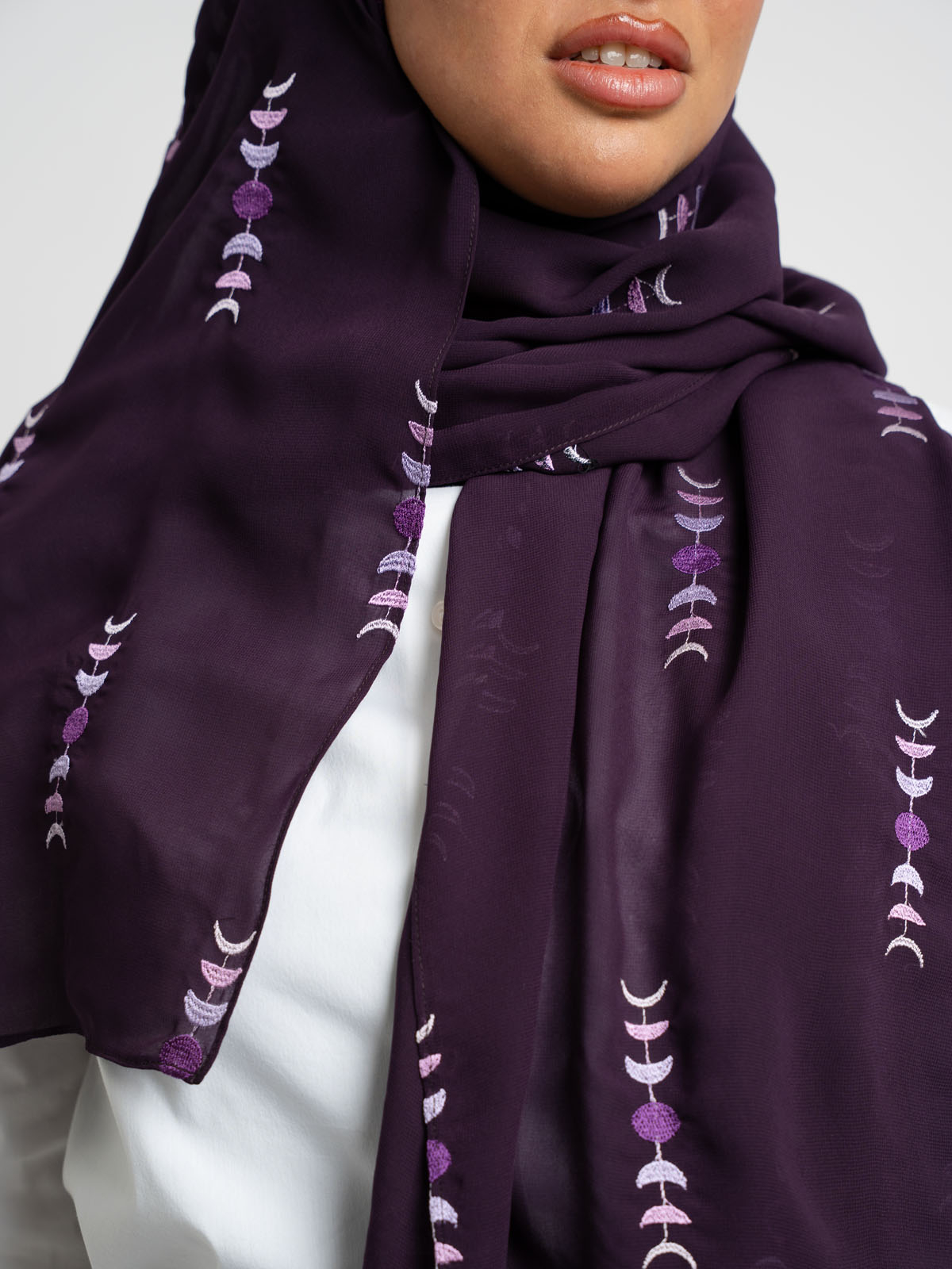 Hijab color: Mauve Tarha with Moon Phases Embroidery.