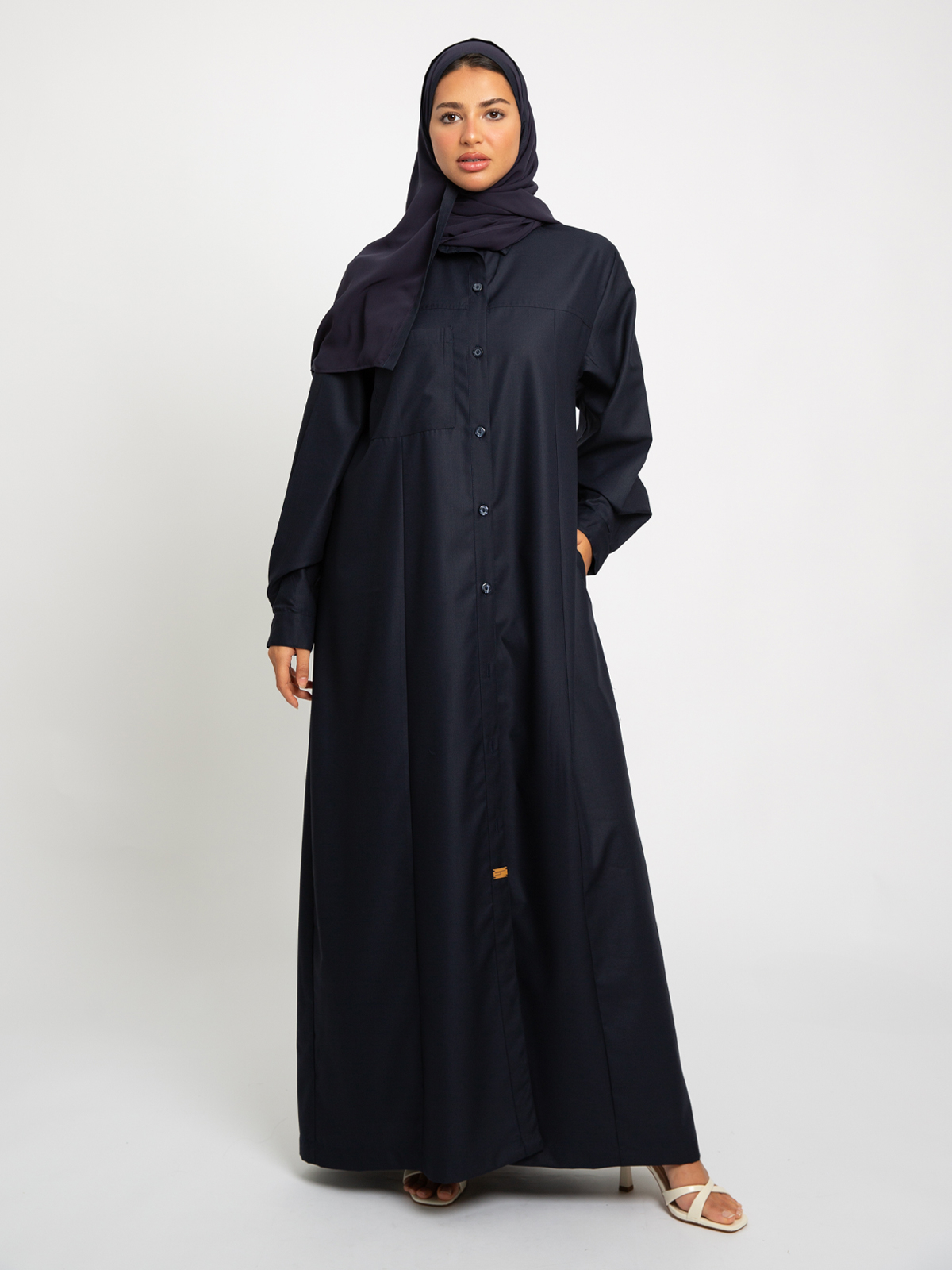 Shirt Regular Cut Closed Abaya in Cotton-feel Fabric
