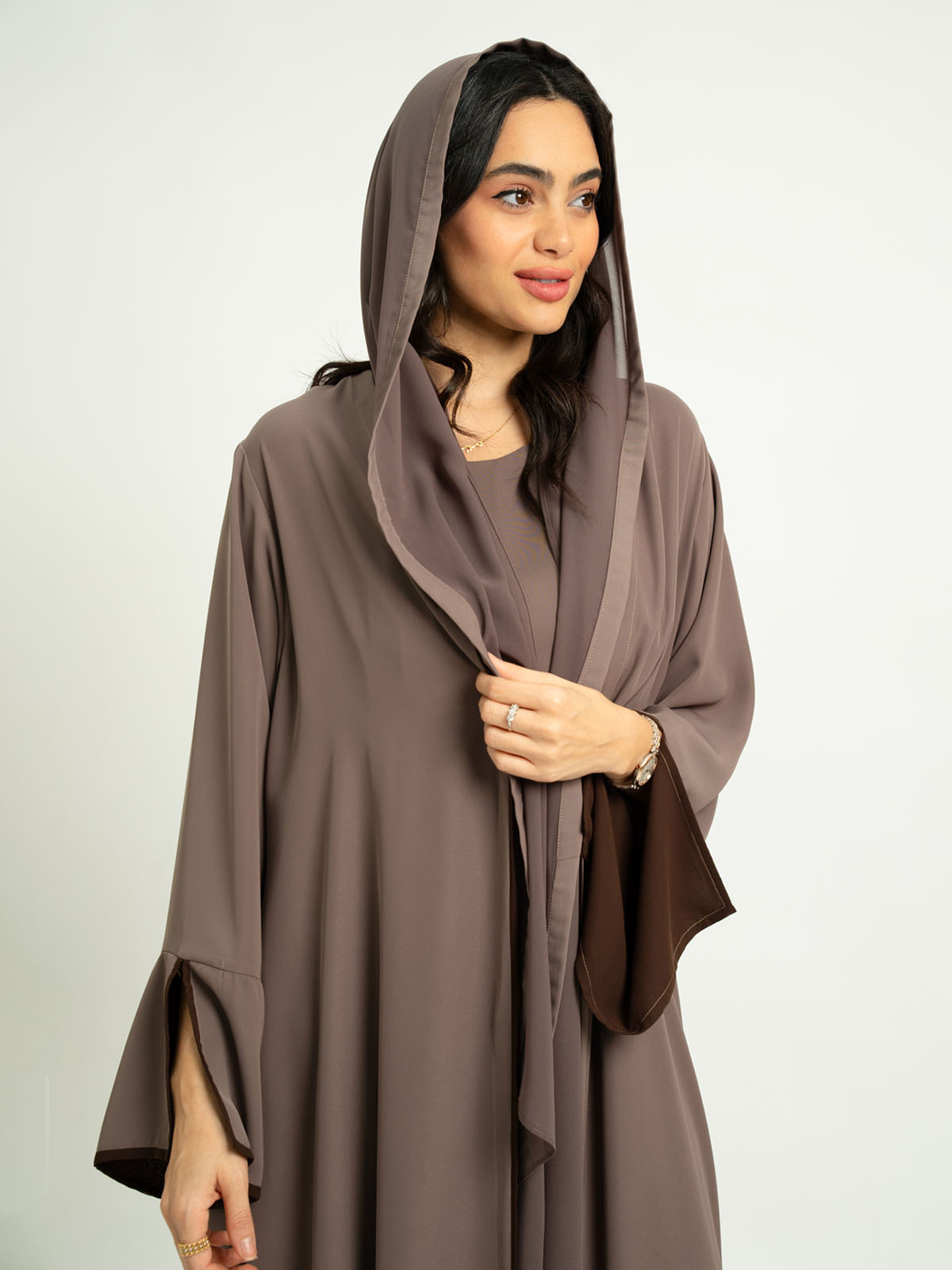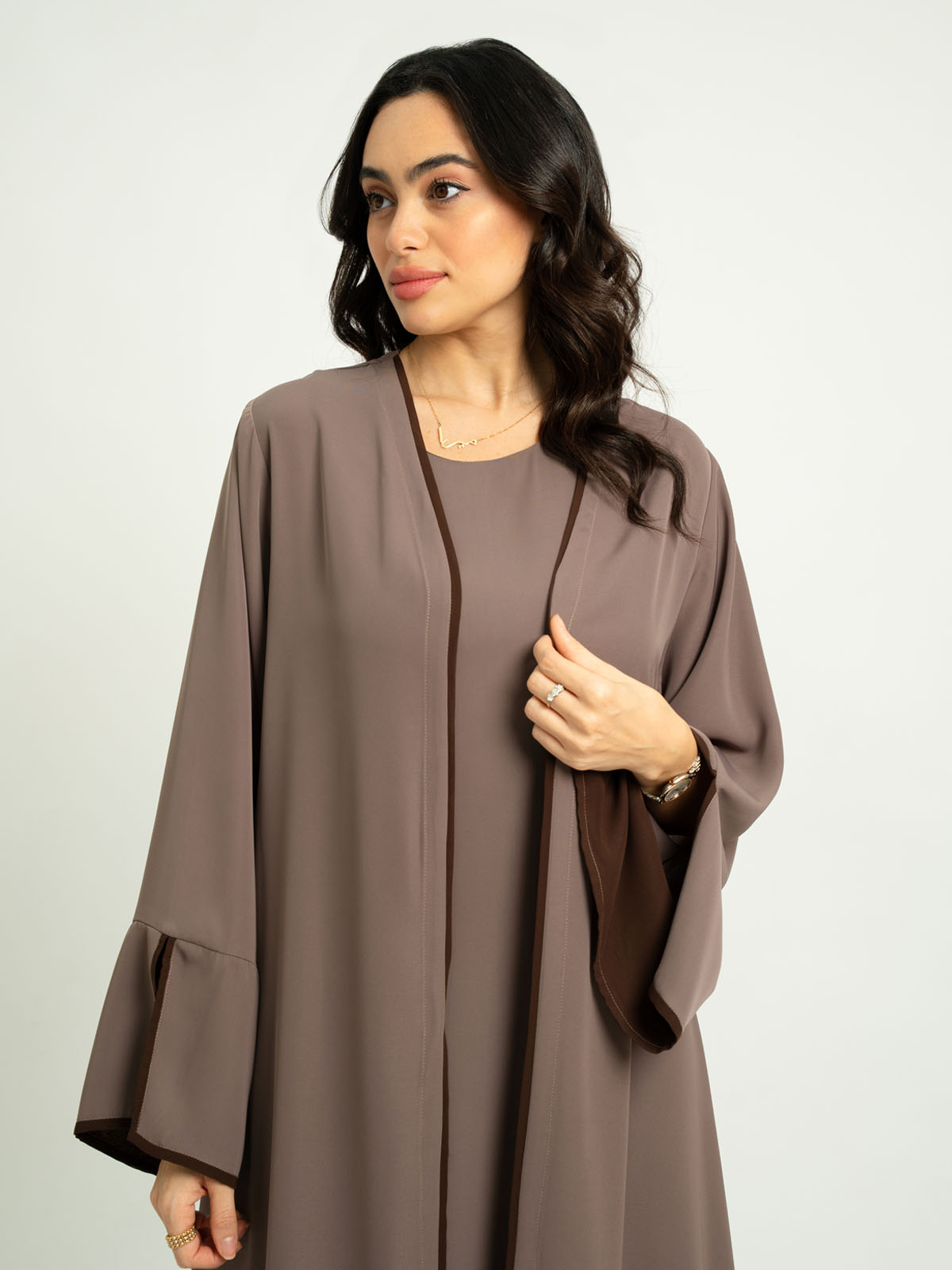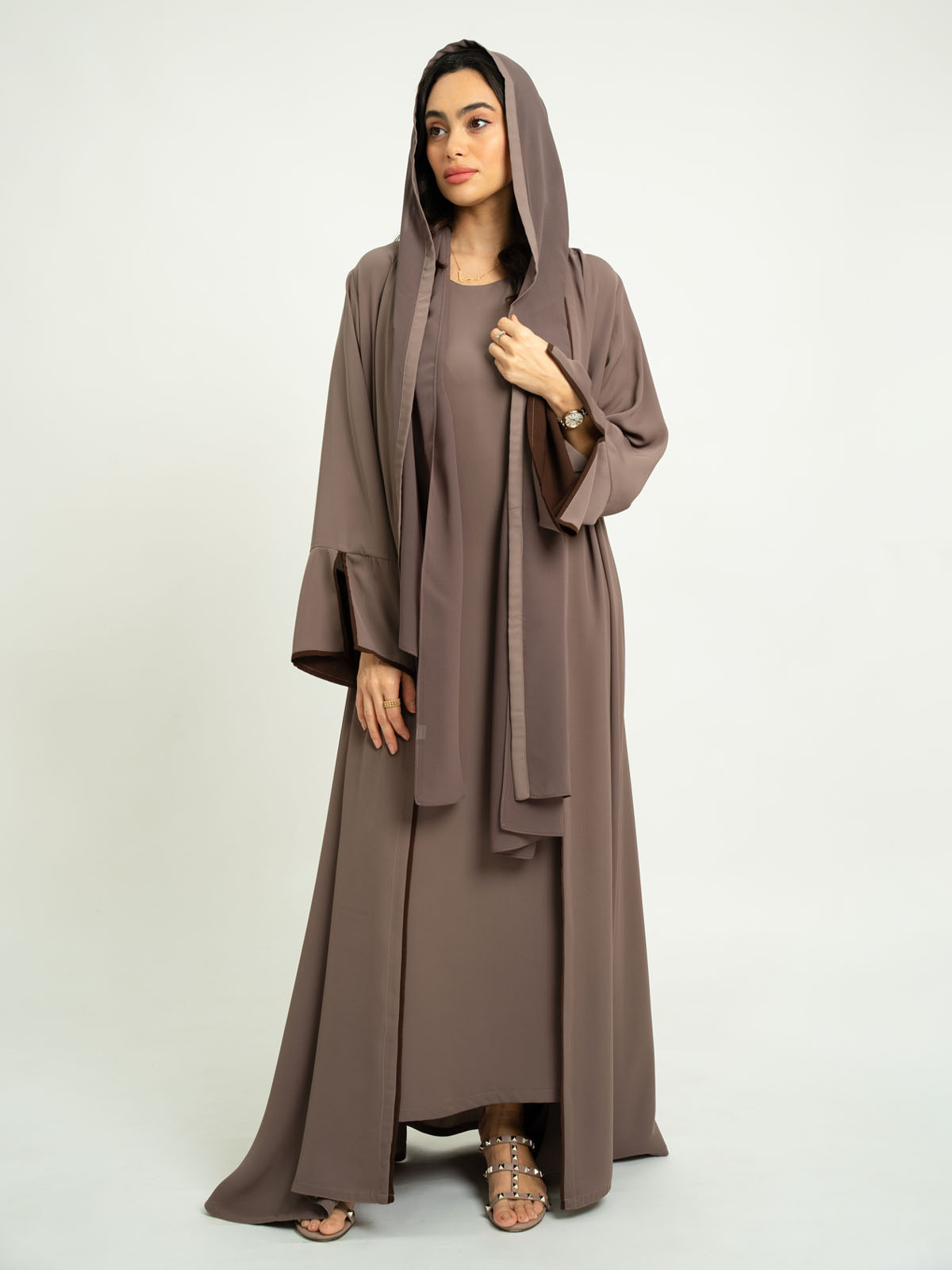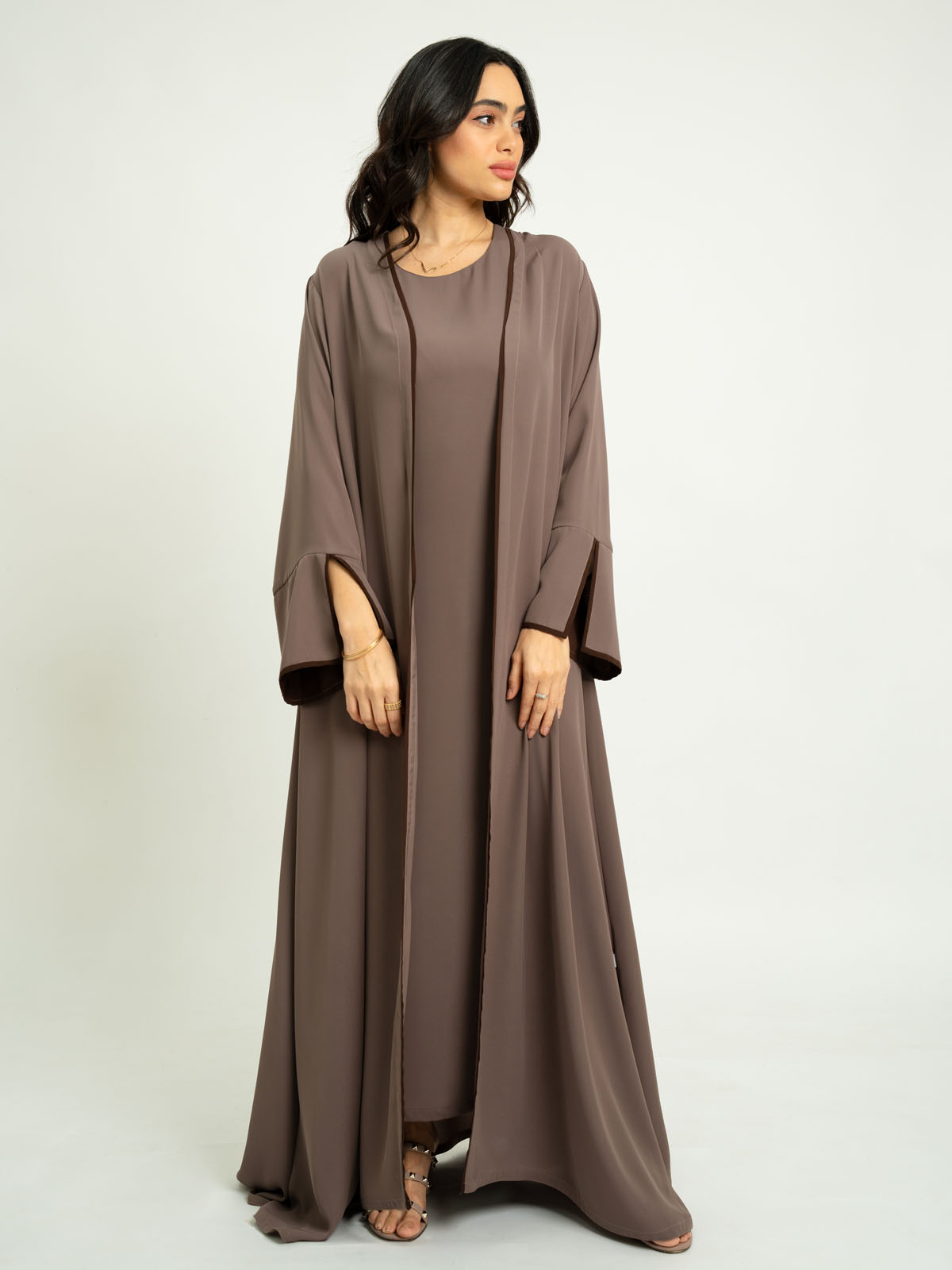 - Full-length open abaya.