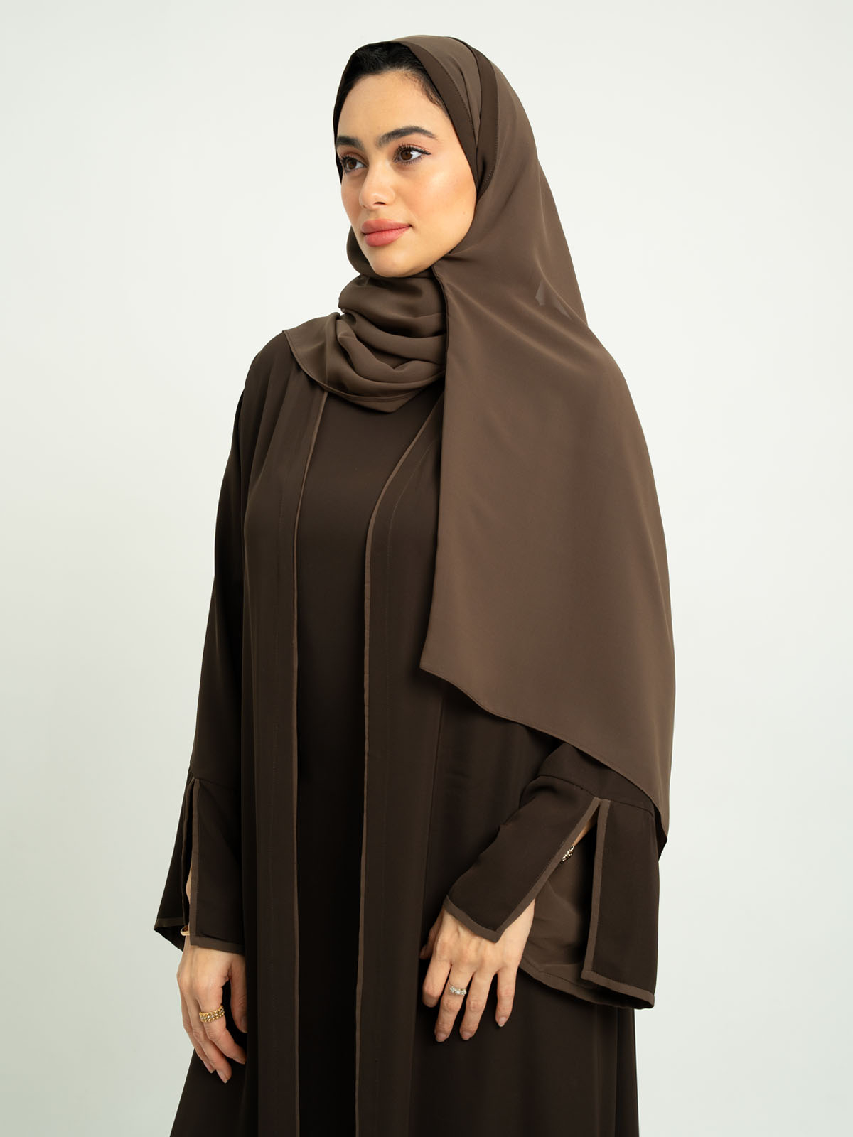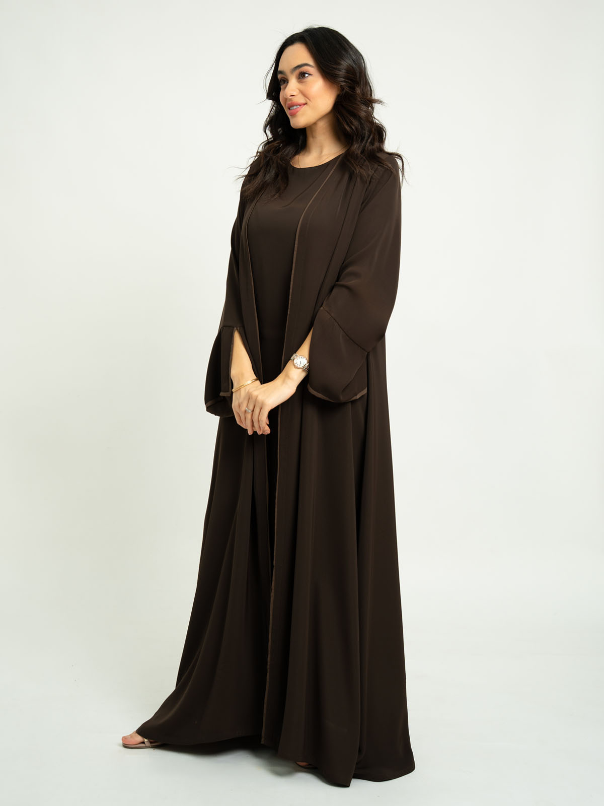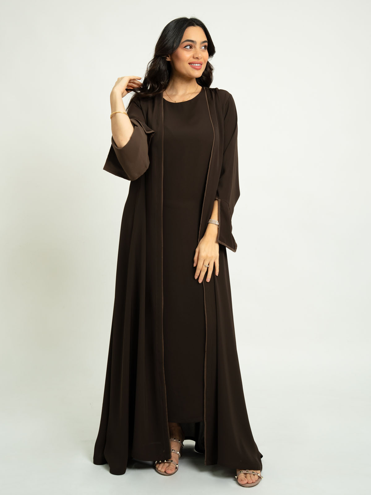 Monochrome Brown A-Cut Abaya With Matching Dress
