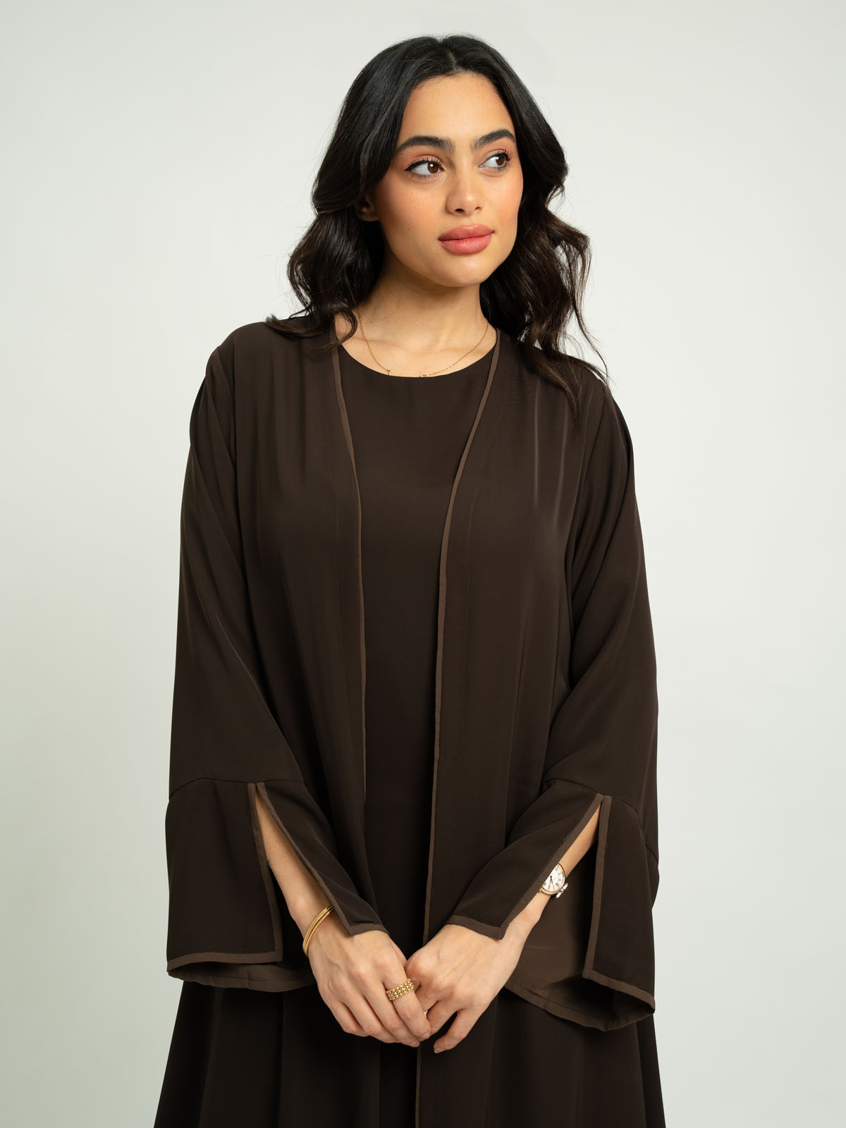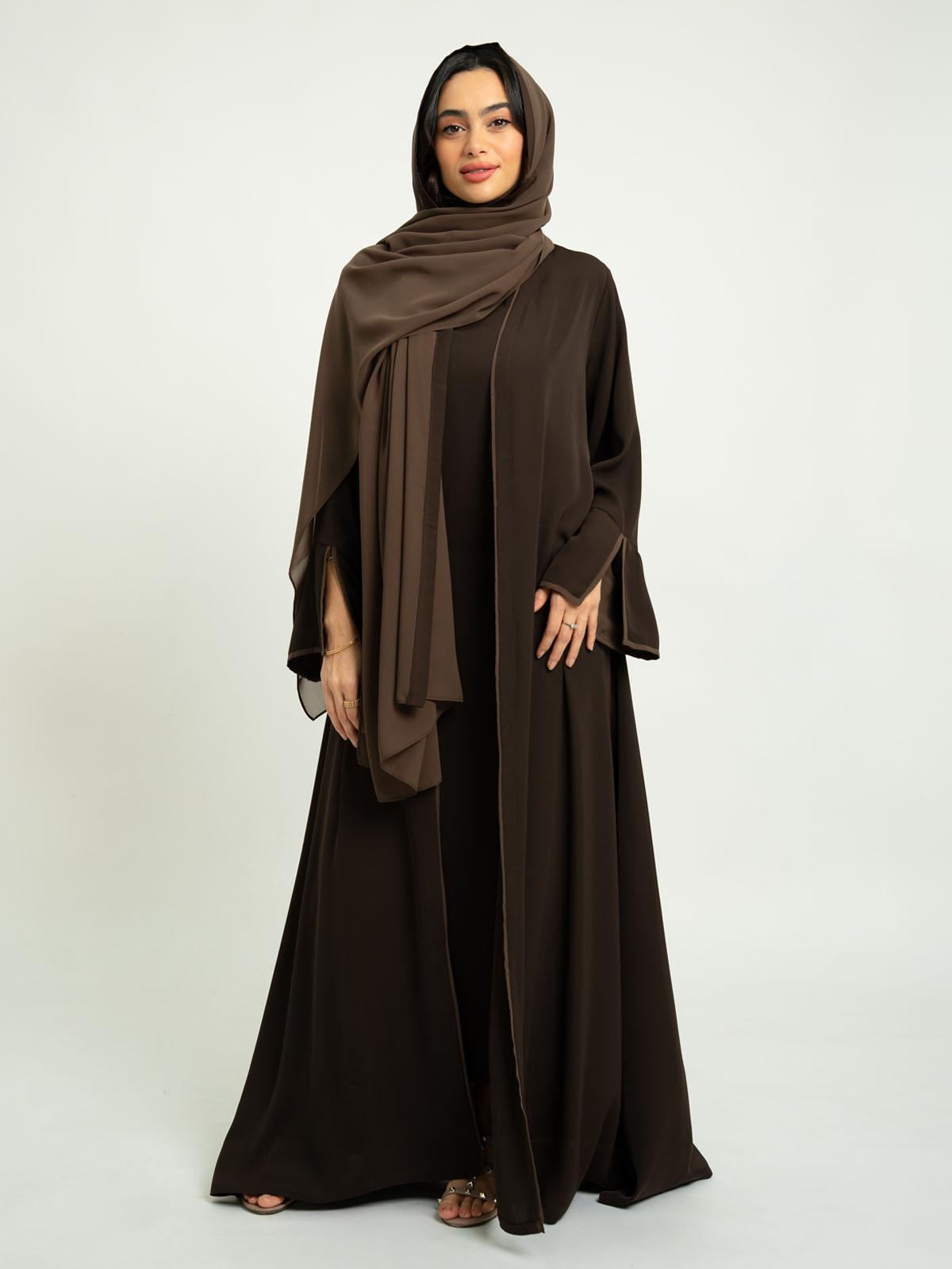 - Full-length open abaya.