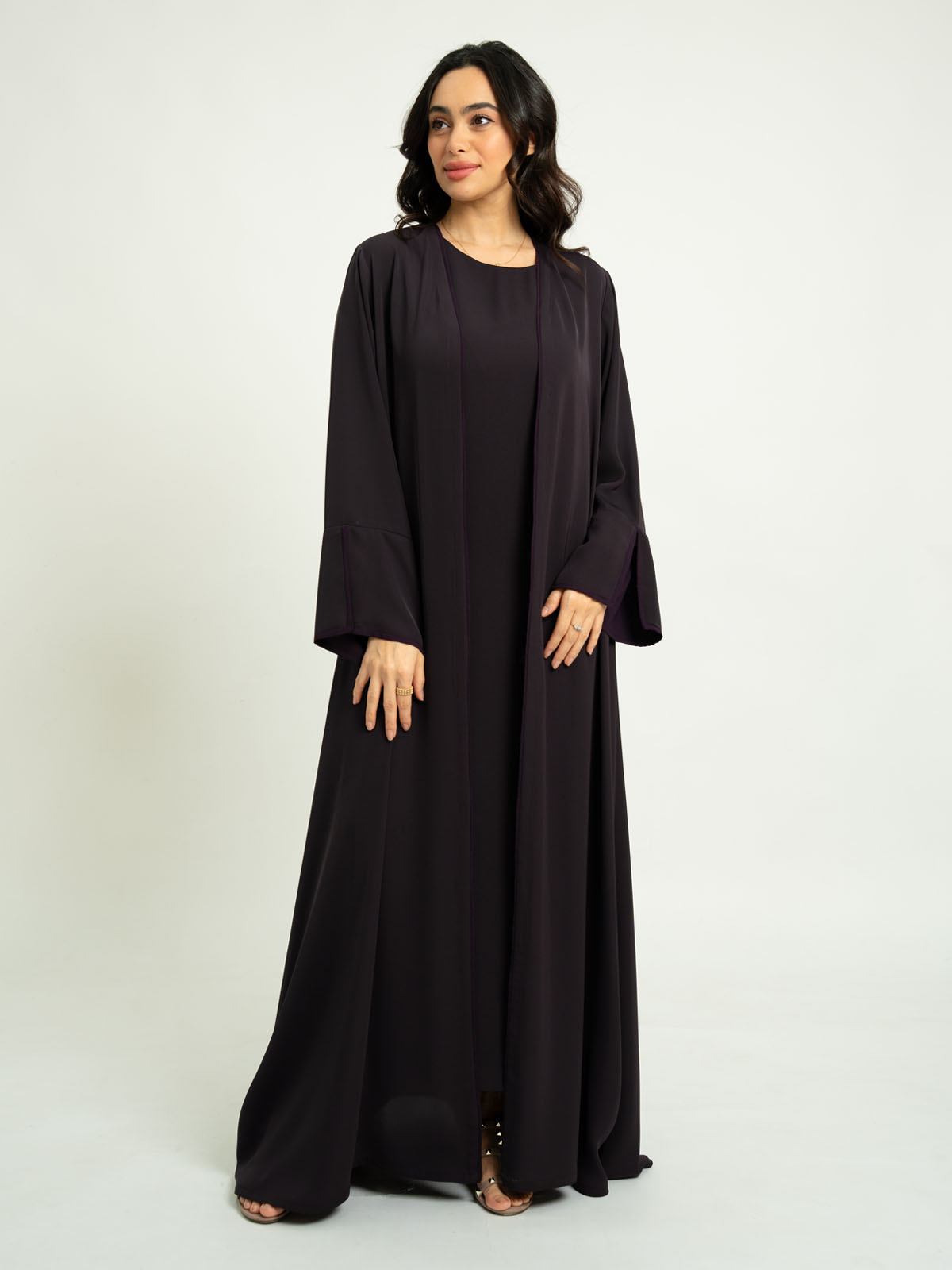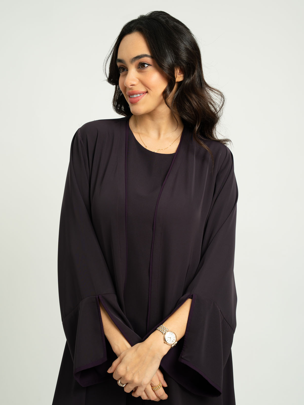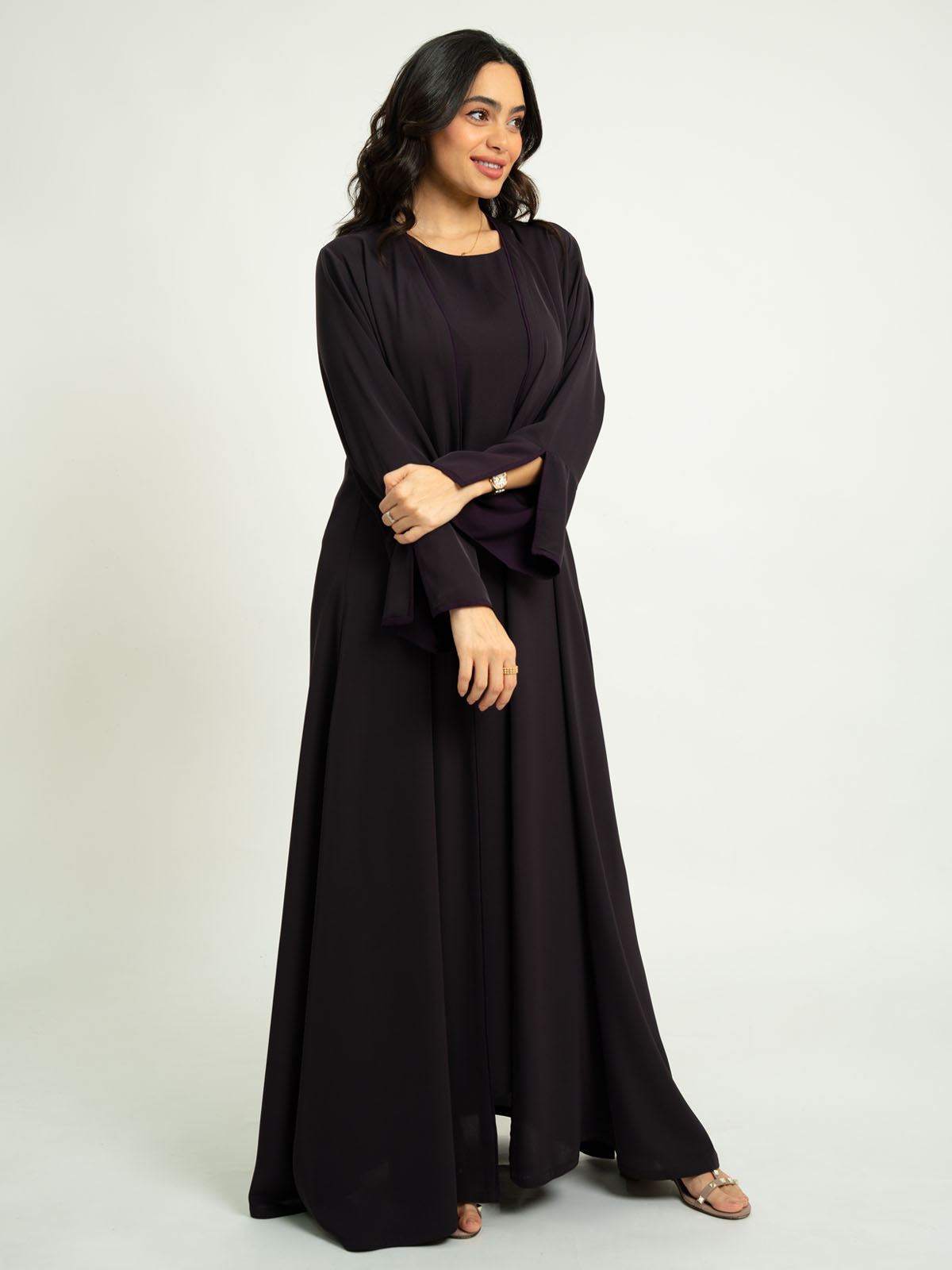 Monochrome Mauve A-Cut Abaya With Matching Dress