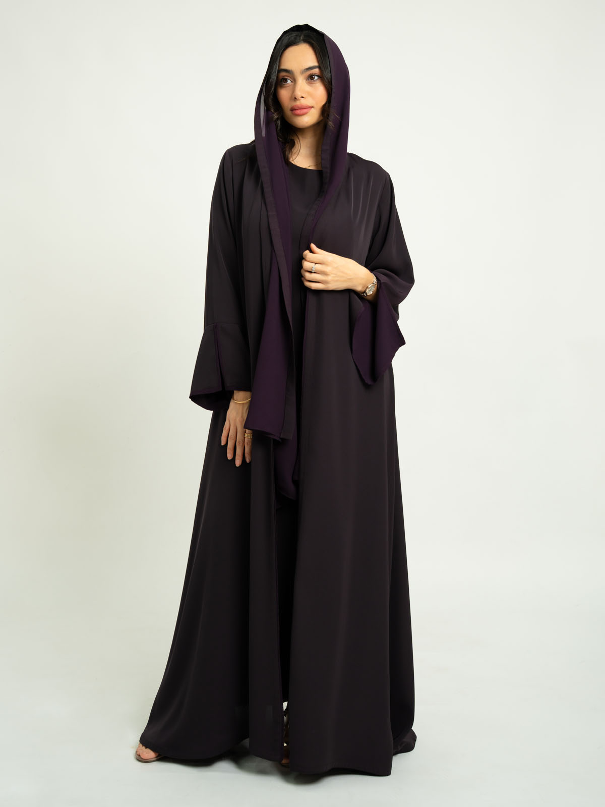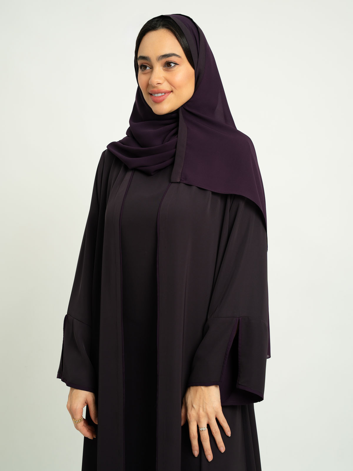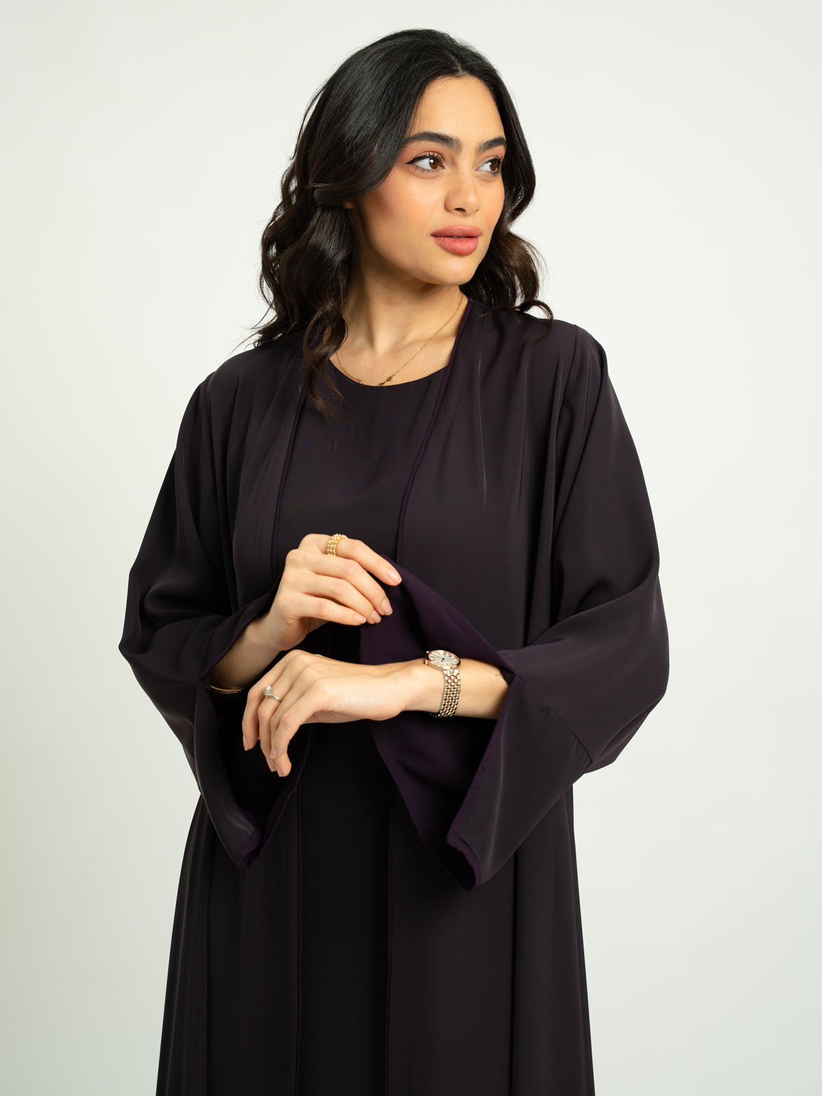 Monochrome Mauve A-Cut Abaya With Matching Dress