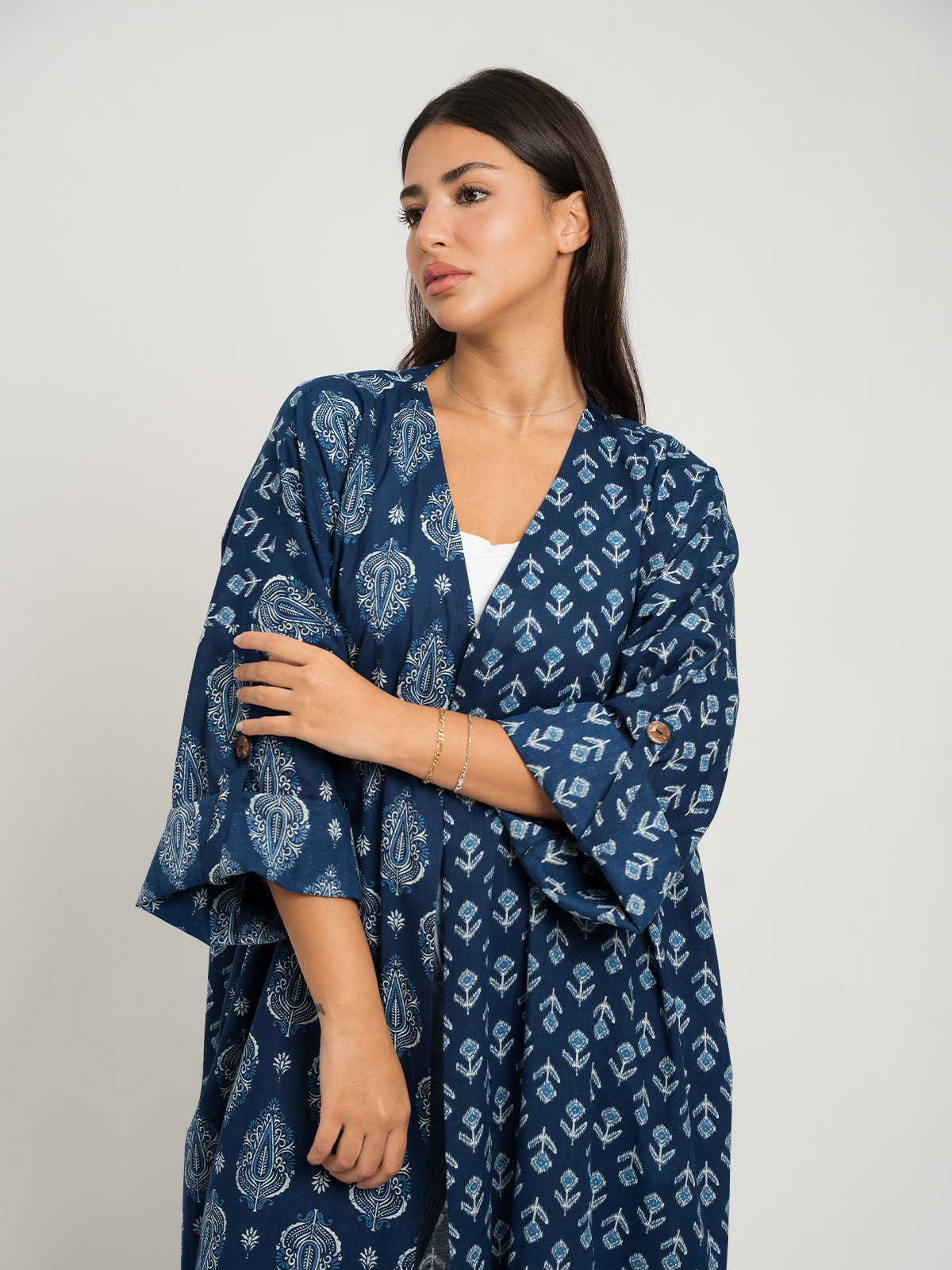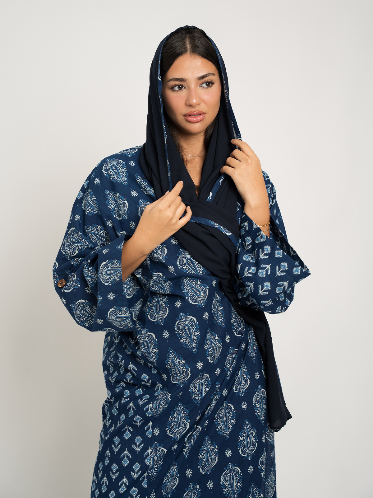 Cotton Abaya Collection by KaafmeemA breezy, bohemian abaya made of 100% natural cotton fabric, designed with comfort and attention to detail in mind.