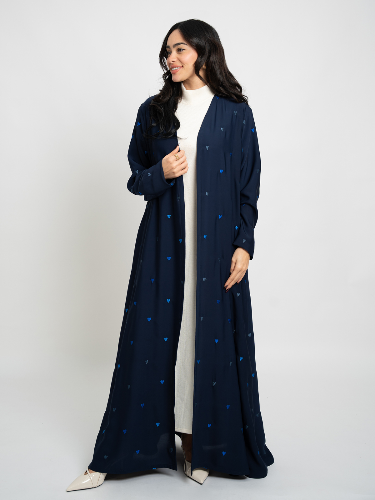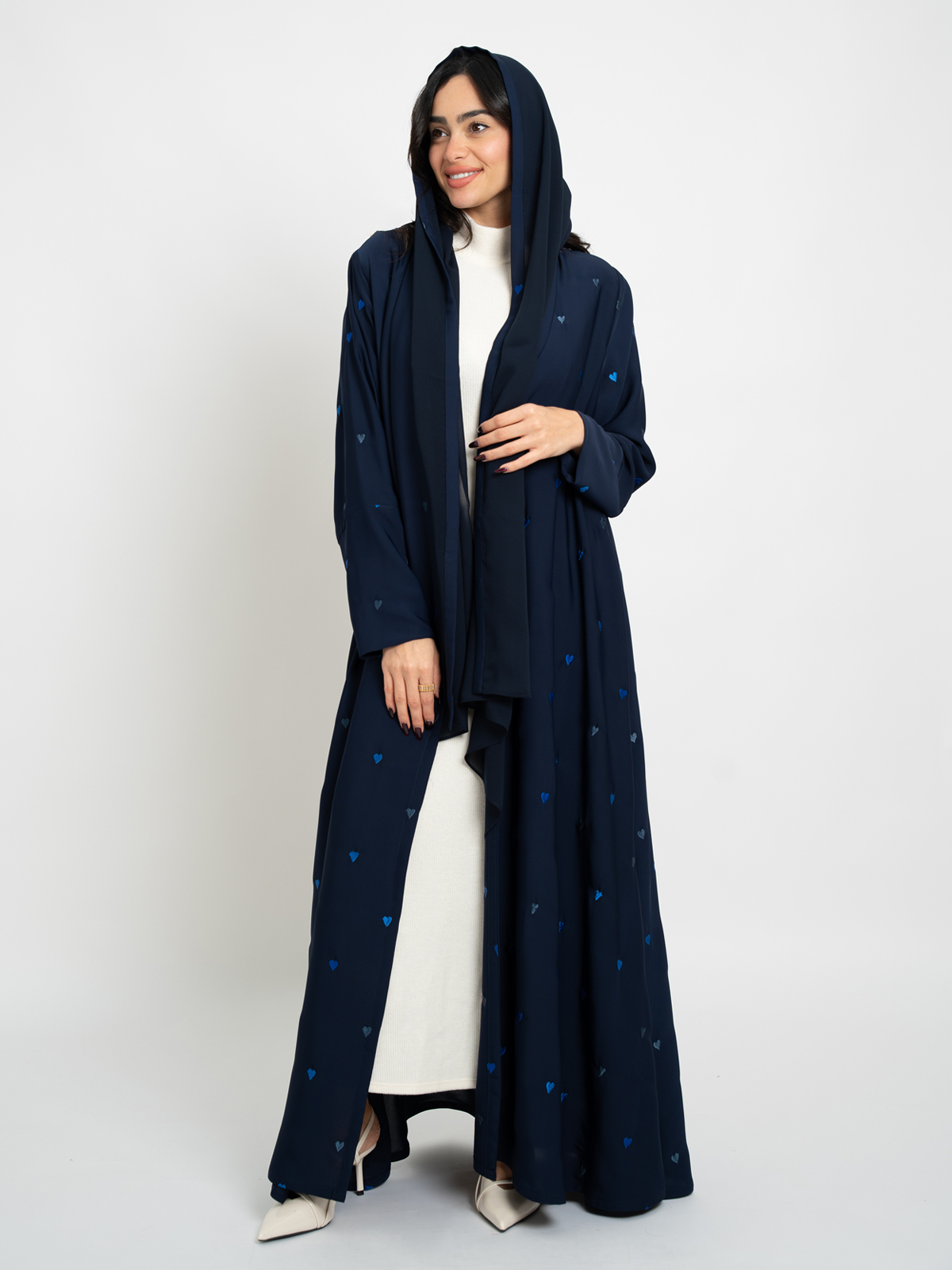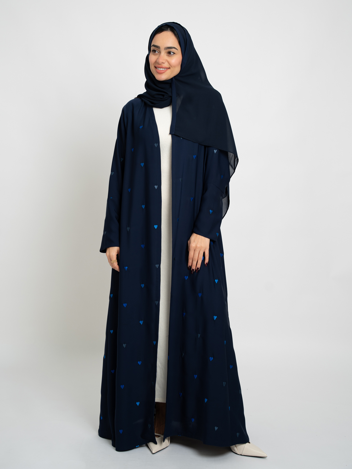 Navy Hearts A-Cut Abaya