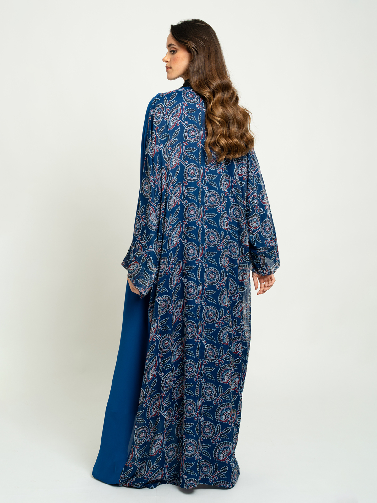 Wide-fit Long Open Abaya in Printed Chiffon Fabric