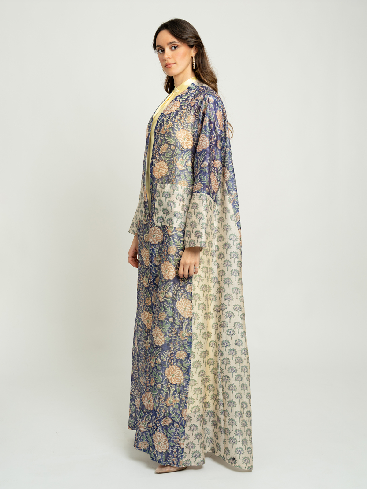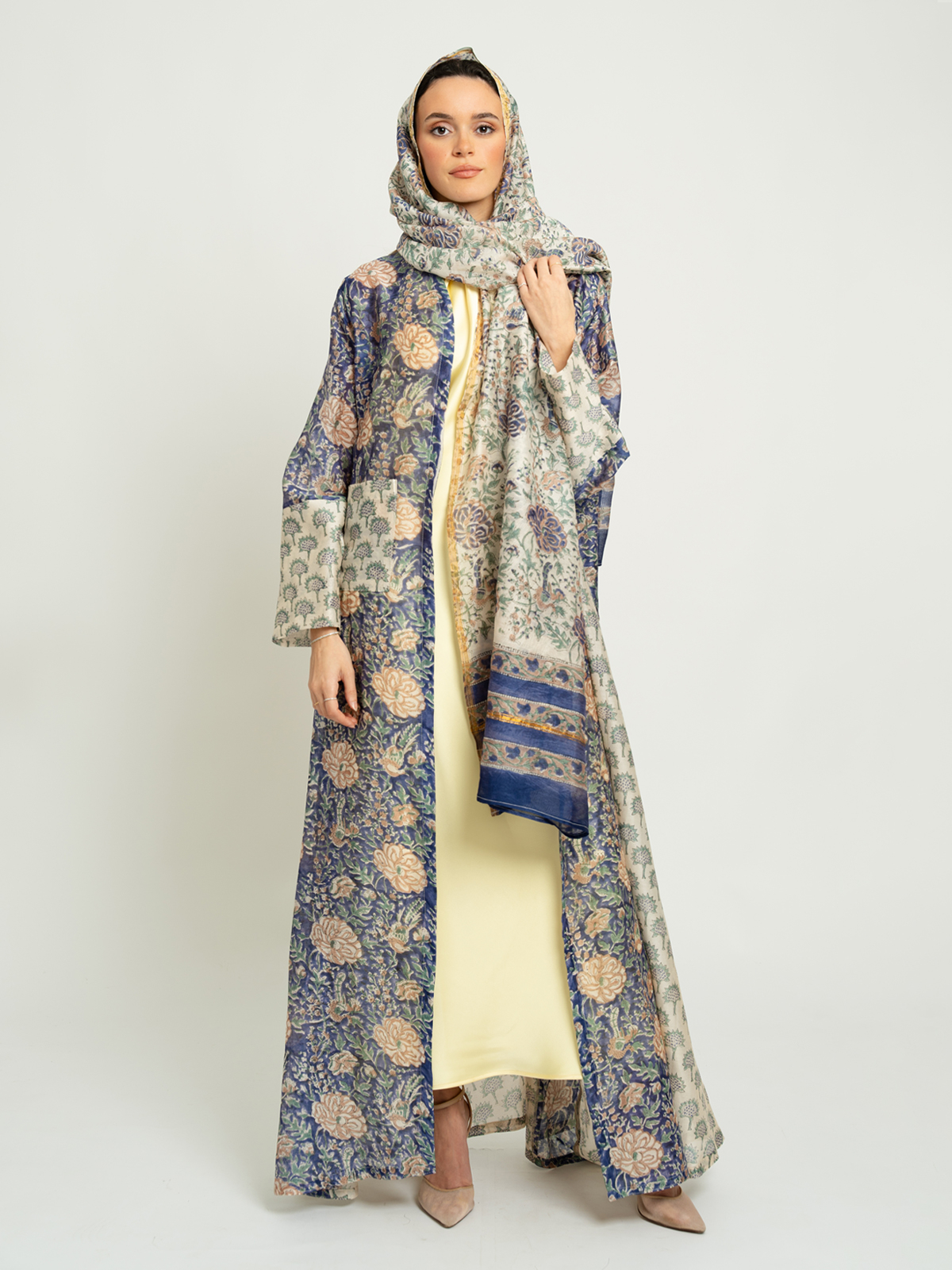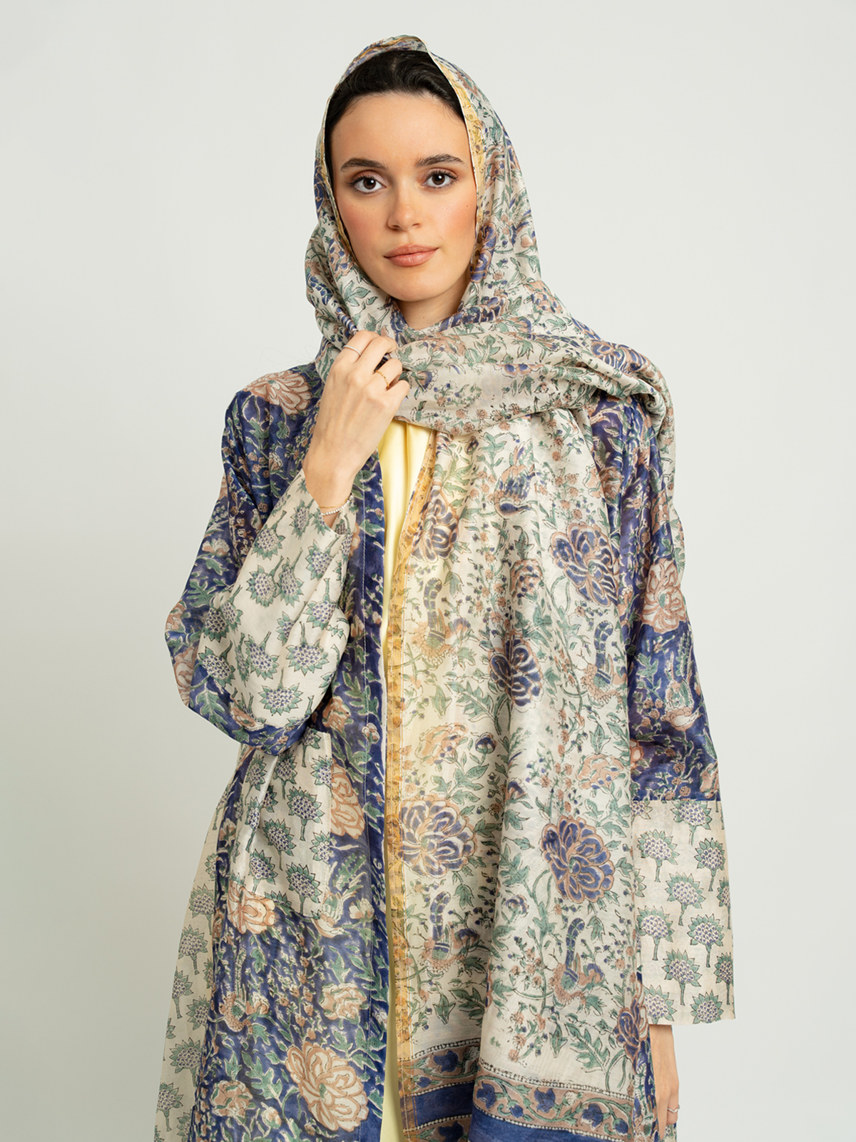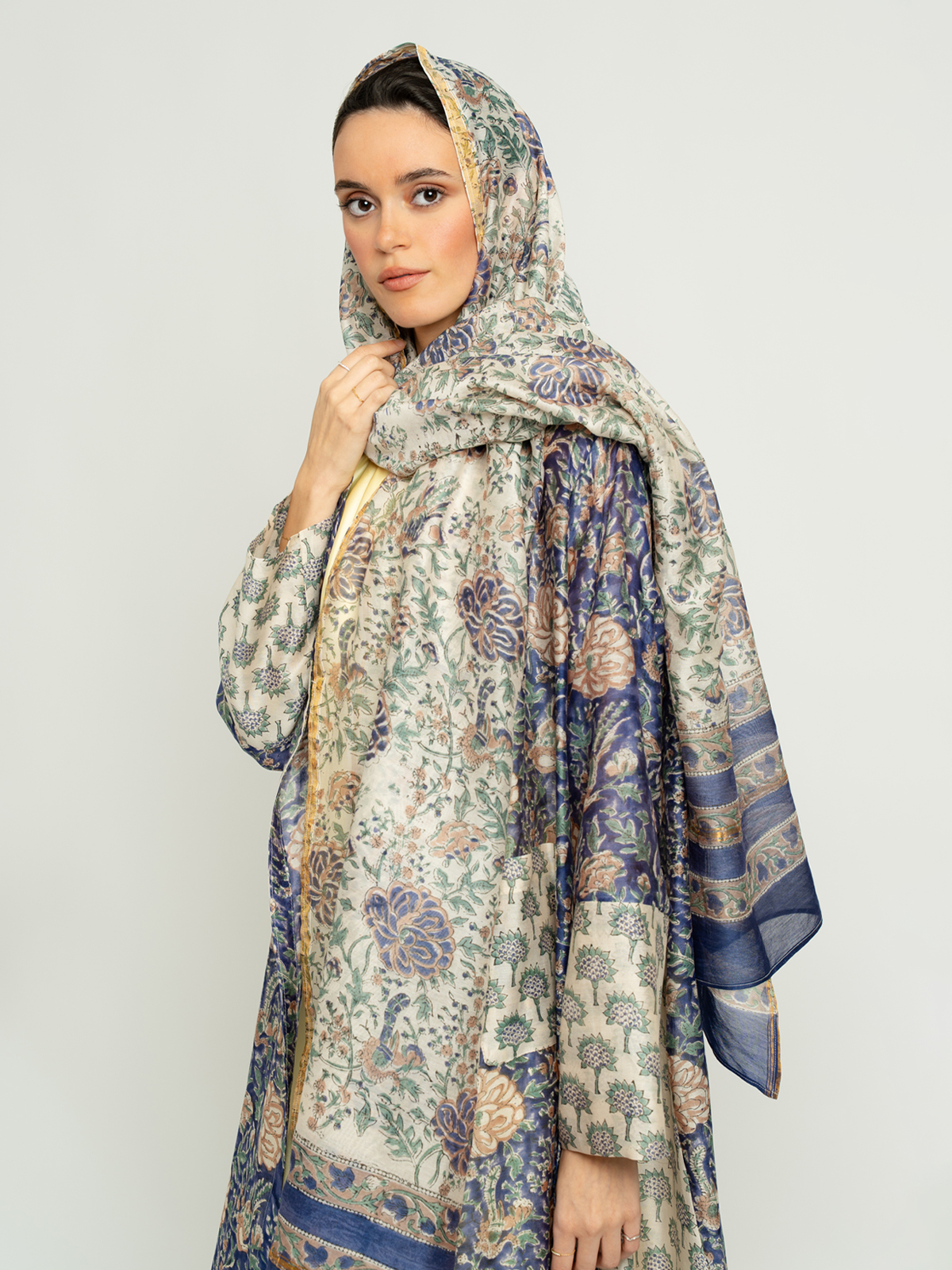 A new A-cut half cloche printed abaya made from premium 100% stiff silk fabric, offering a soft, breathable feel you’ll appreciate all day long.