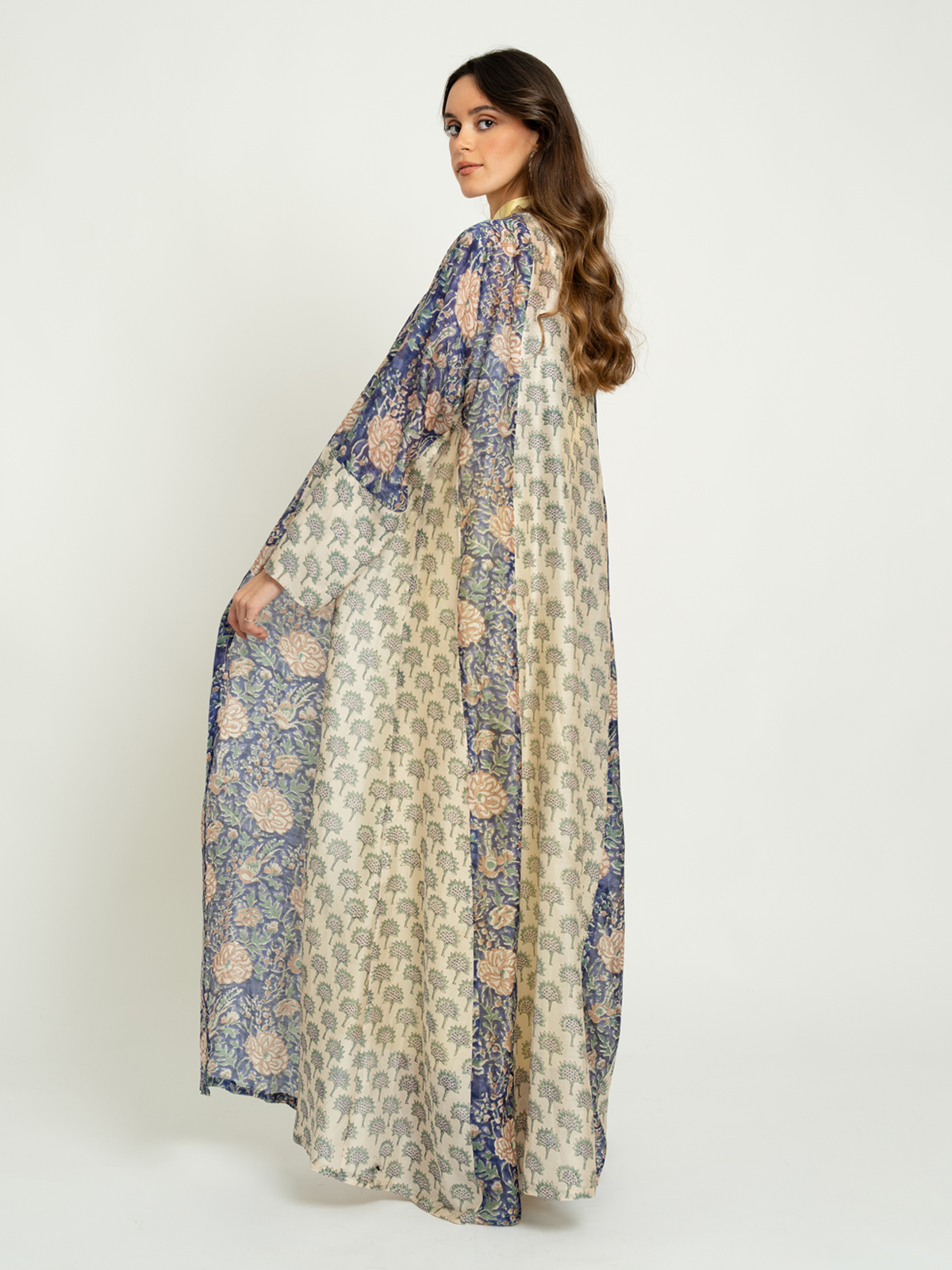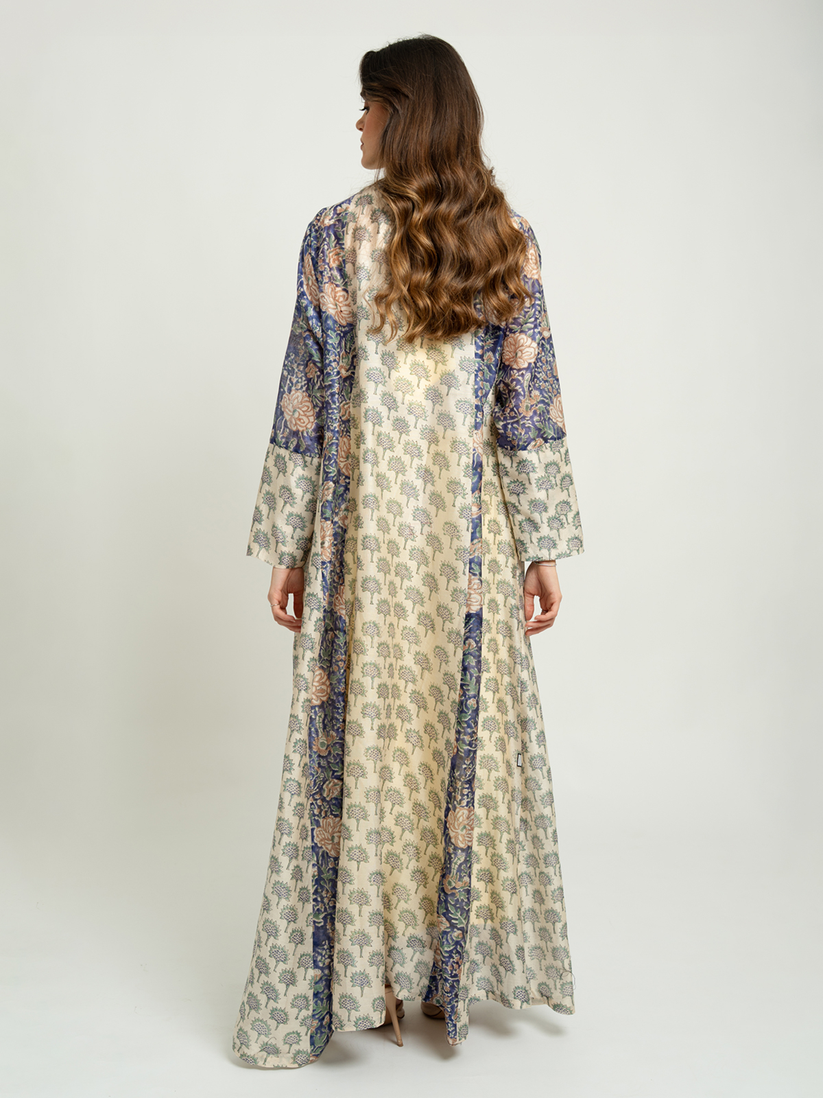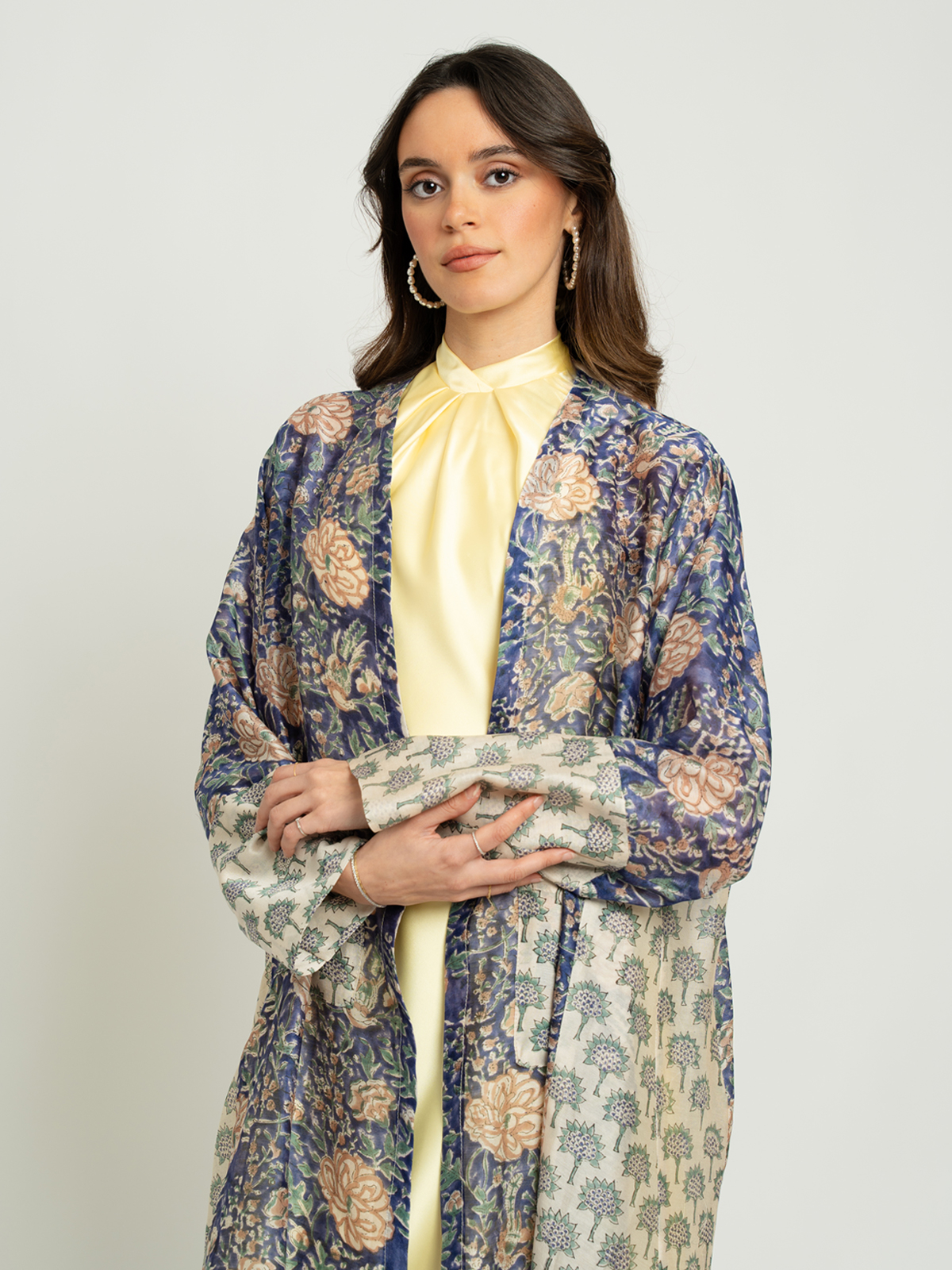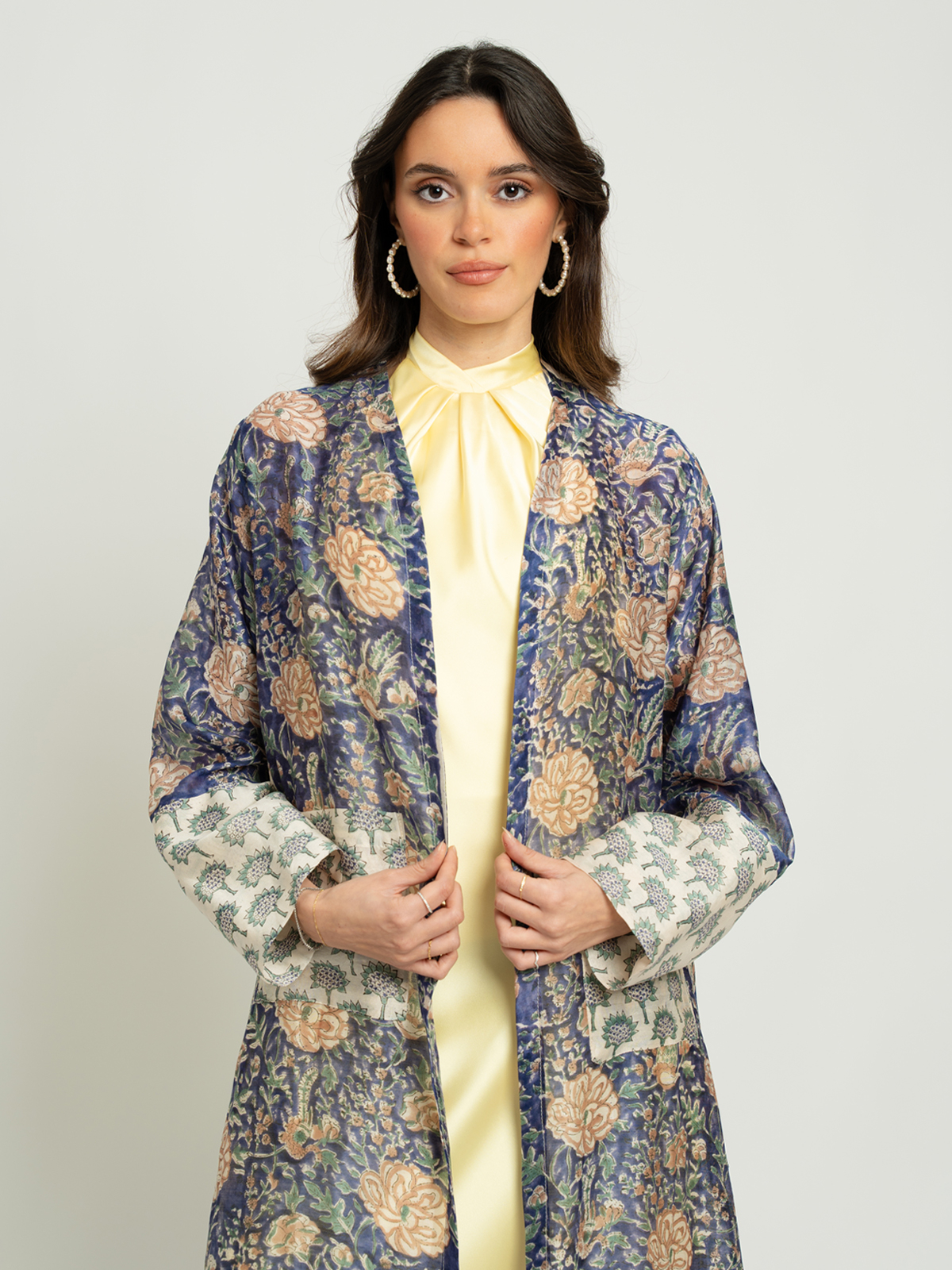 A new A-cut half cloche printed abaya made from premium 100% stiff silk fabric, offering a soft, breathable feel you’ll appreciate all day long.