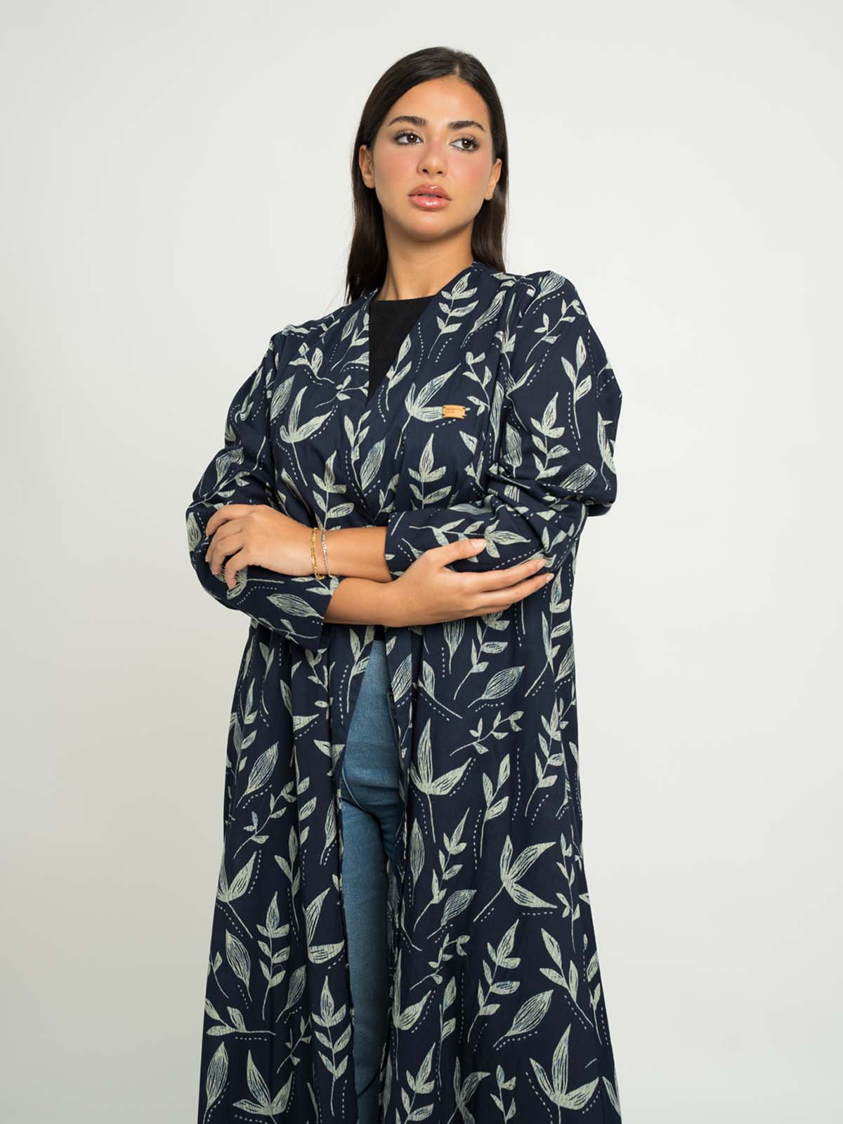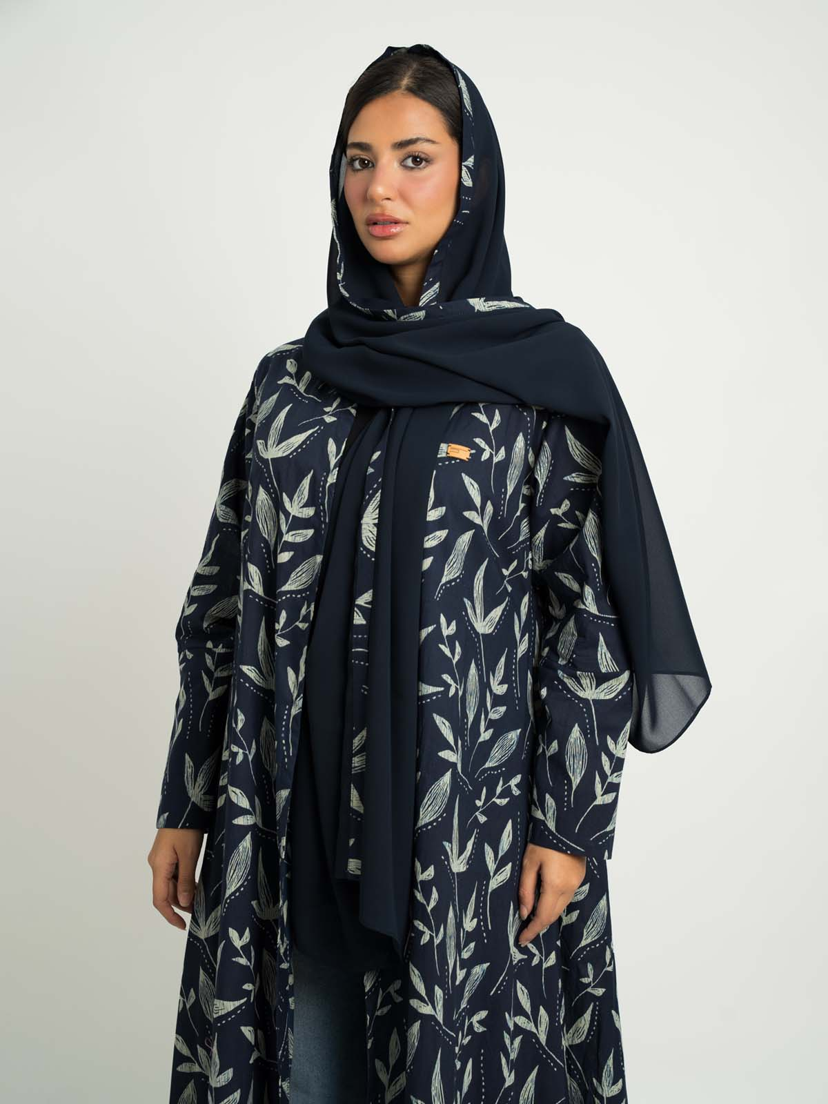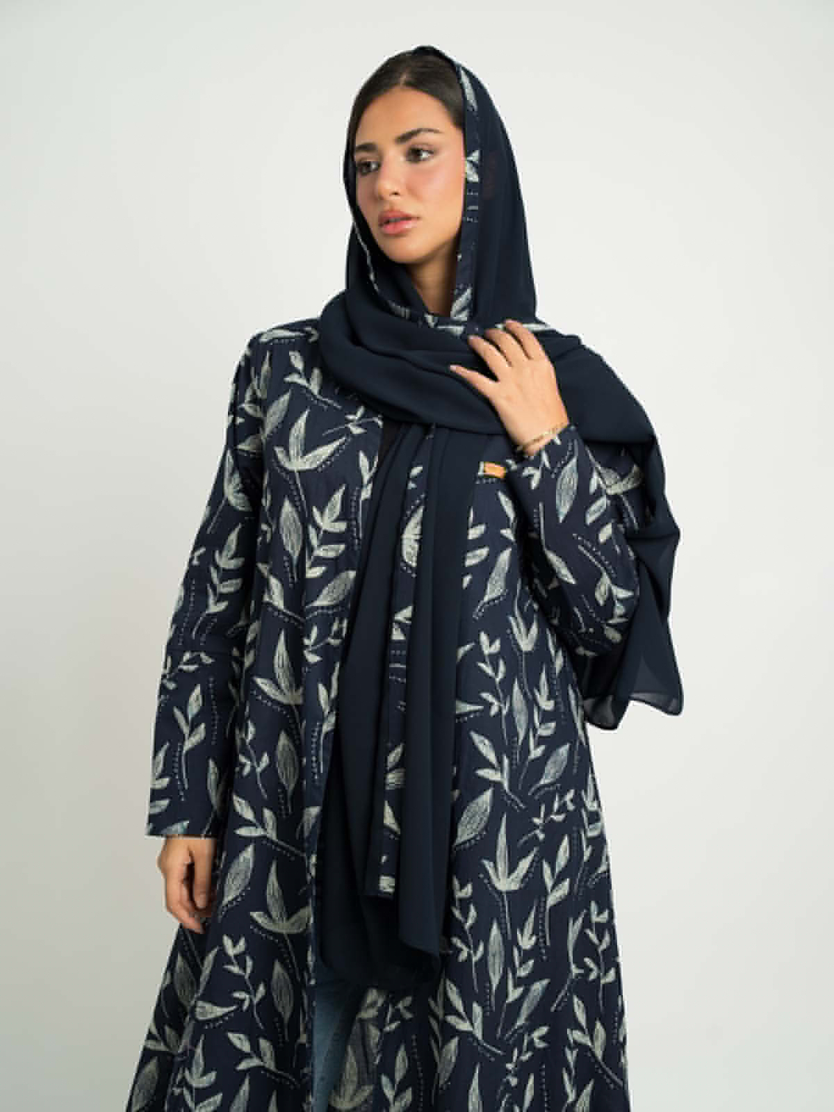 A breezy, relaxed-fit A-cut half cloche abaya made of 100% natural cotton, designed with comfort and attention to detail in mind.