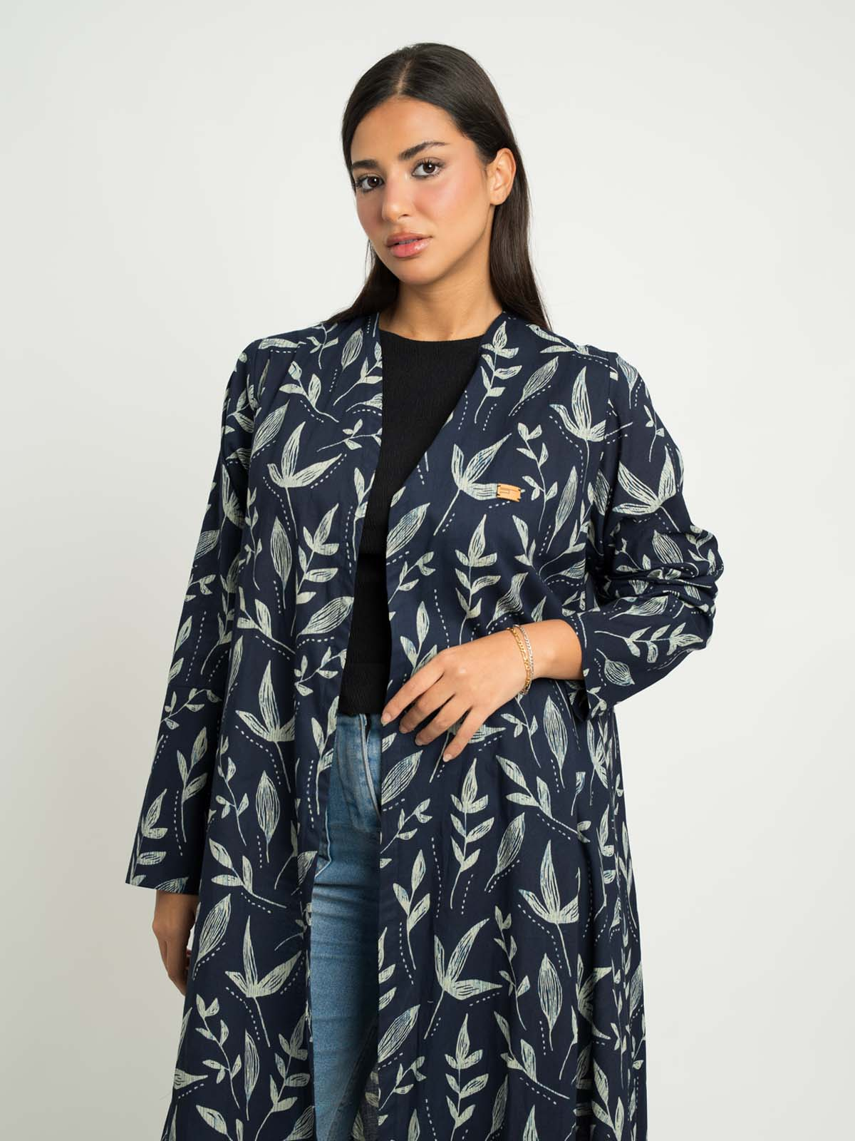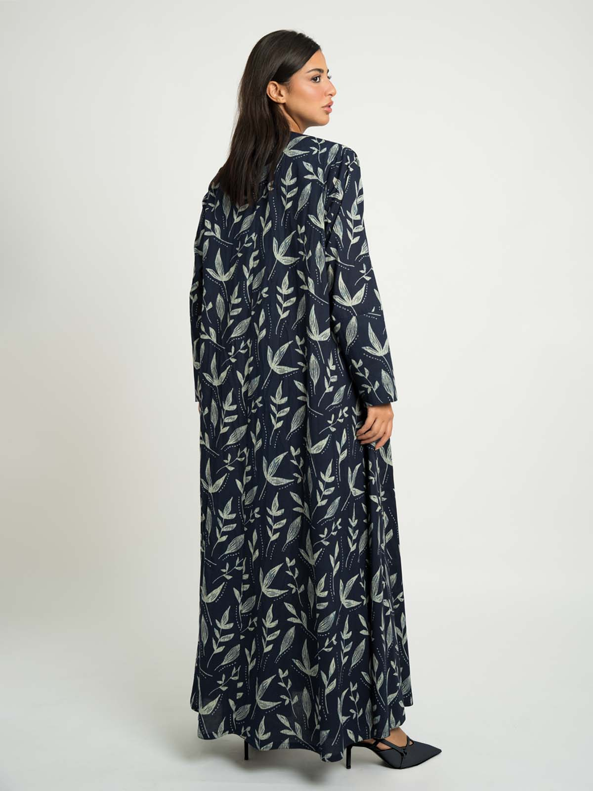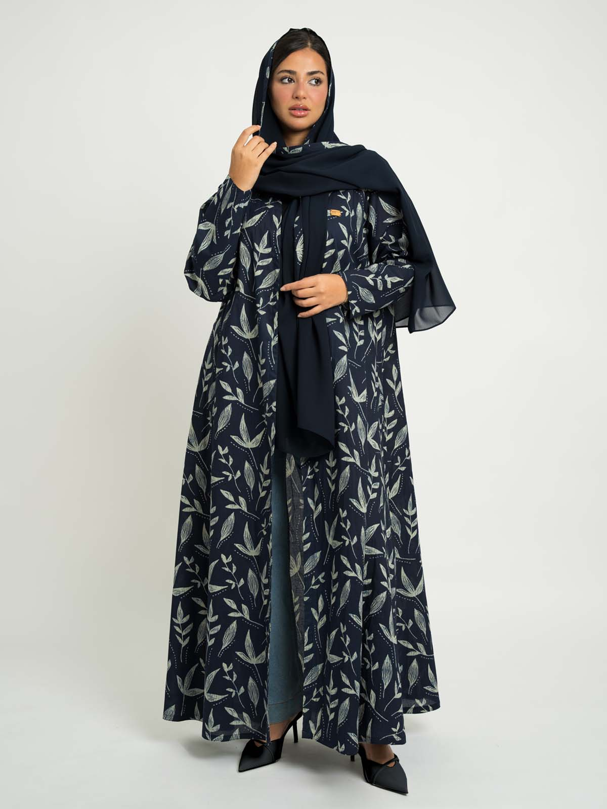 A breezy, relaxed-fit A-cut half cloche abaya made of 100% natural cotton, designed with comfort and attention to detail in mind.
