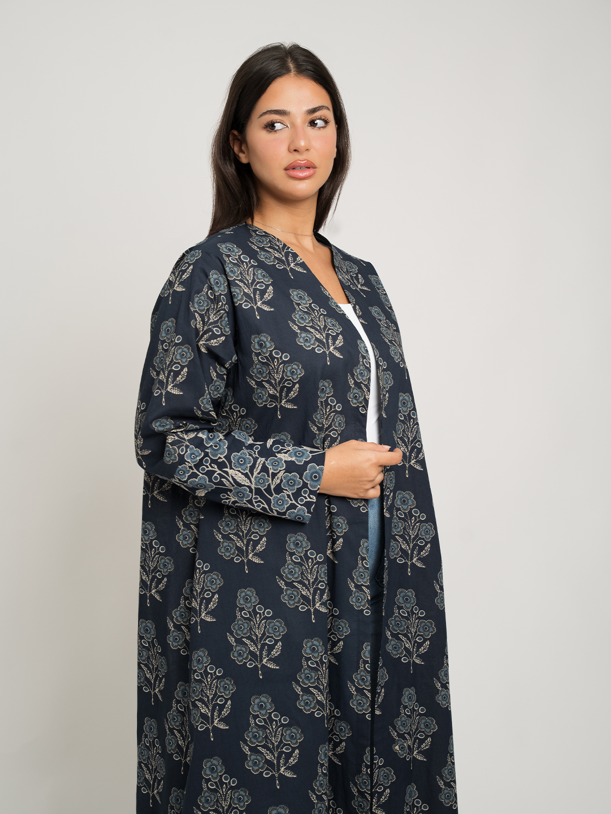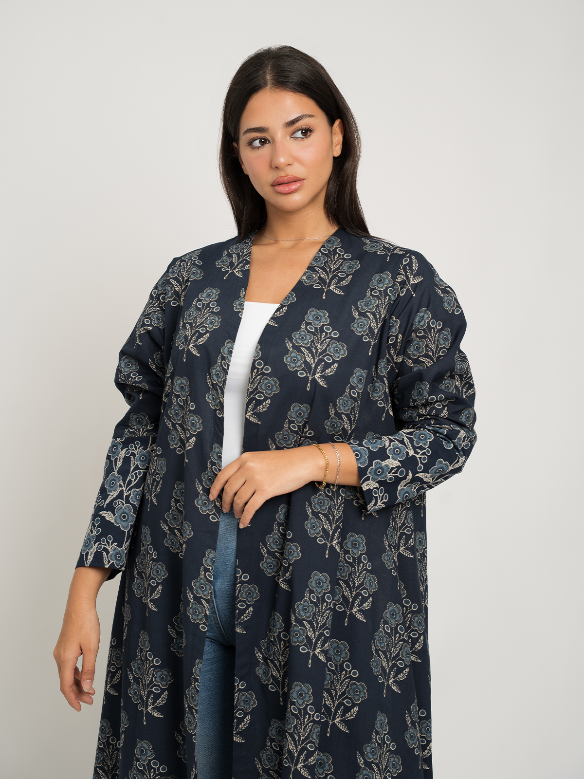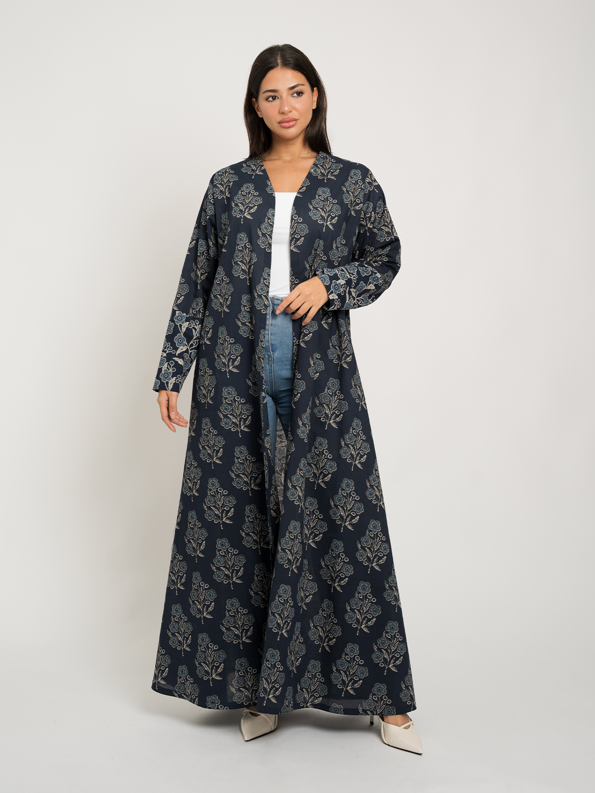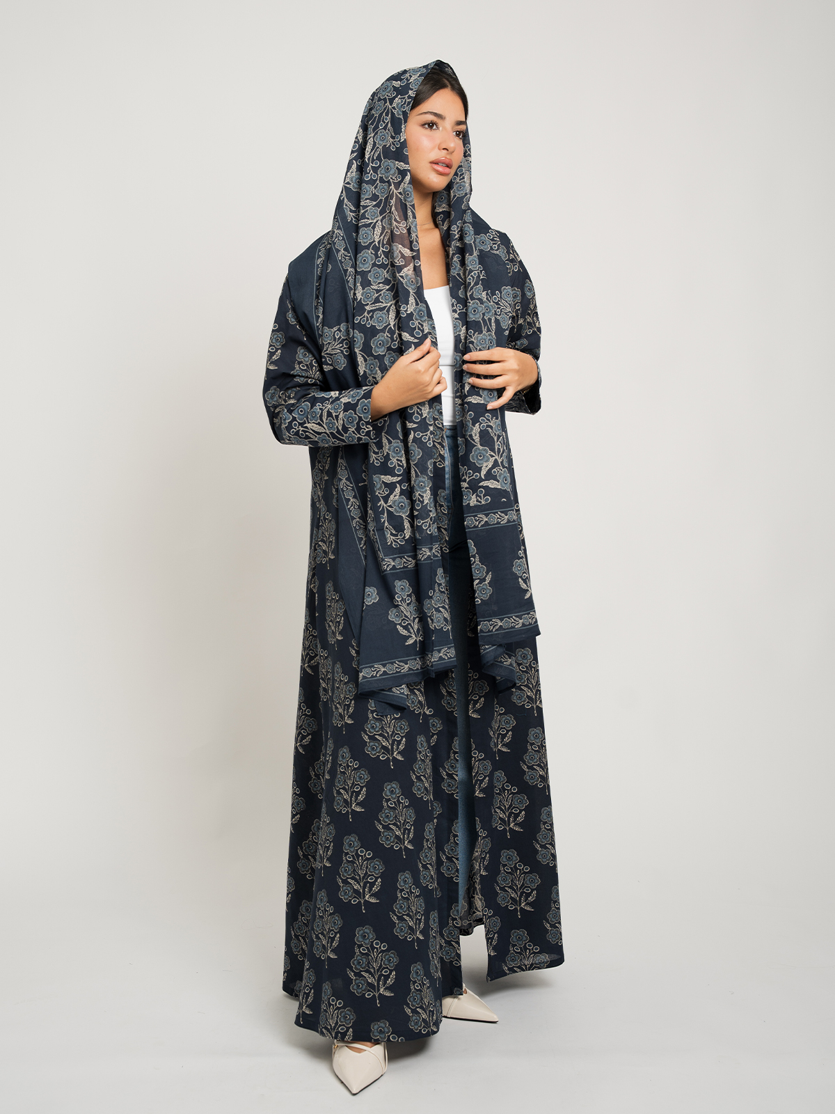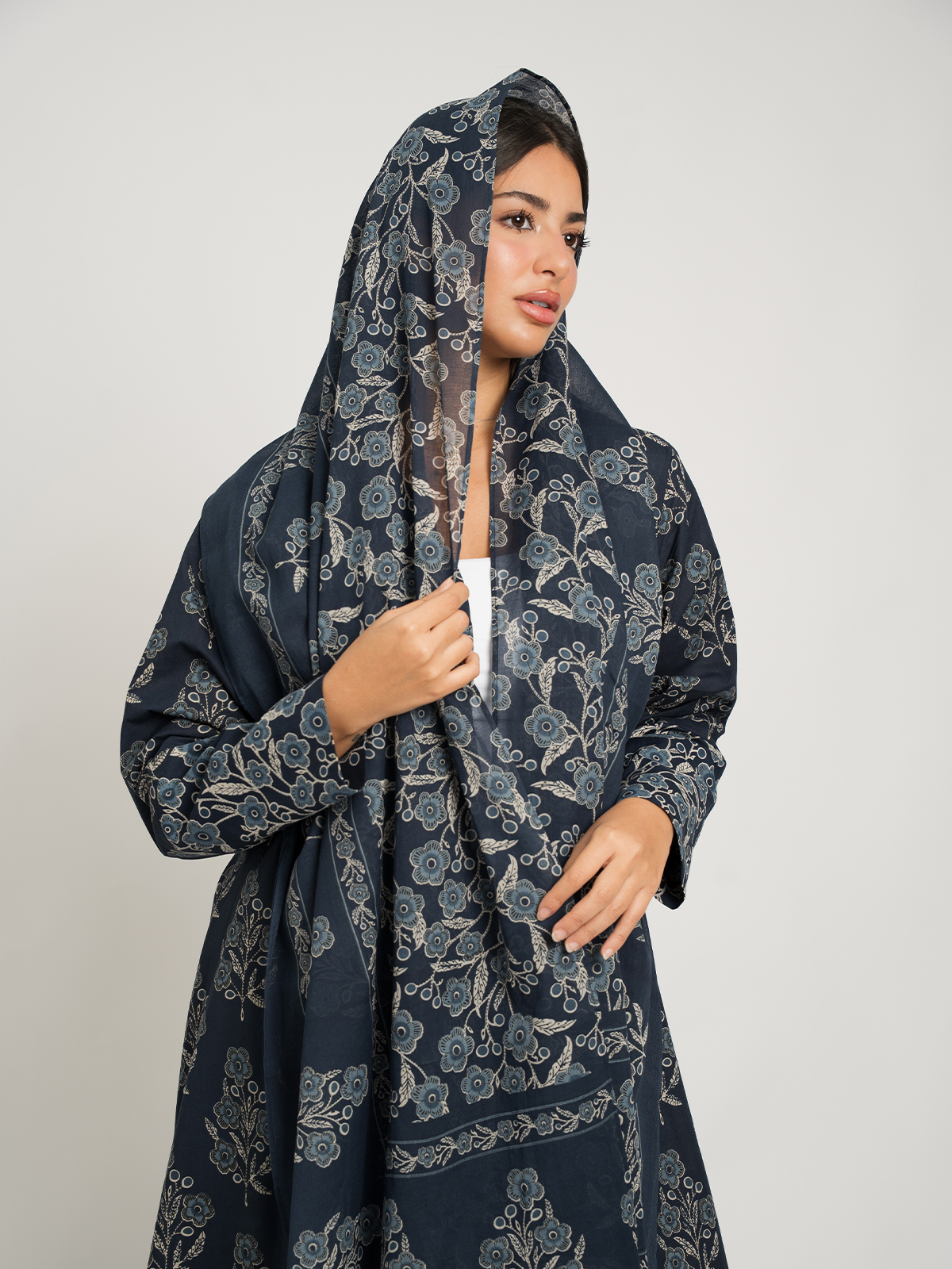 Abaya comes with its matching full printed cotton tarha (Headscarf).