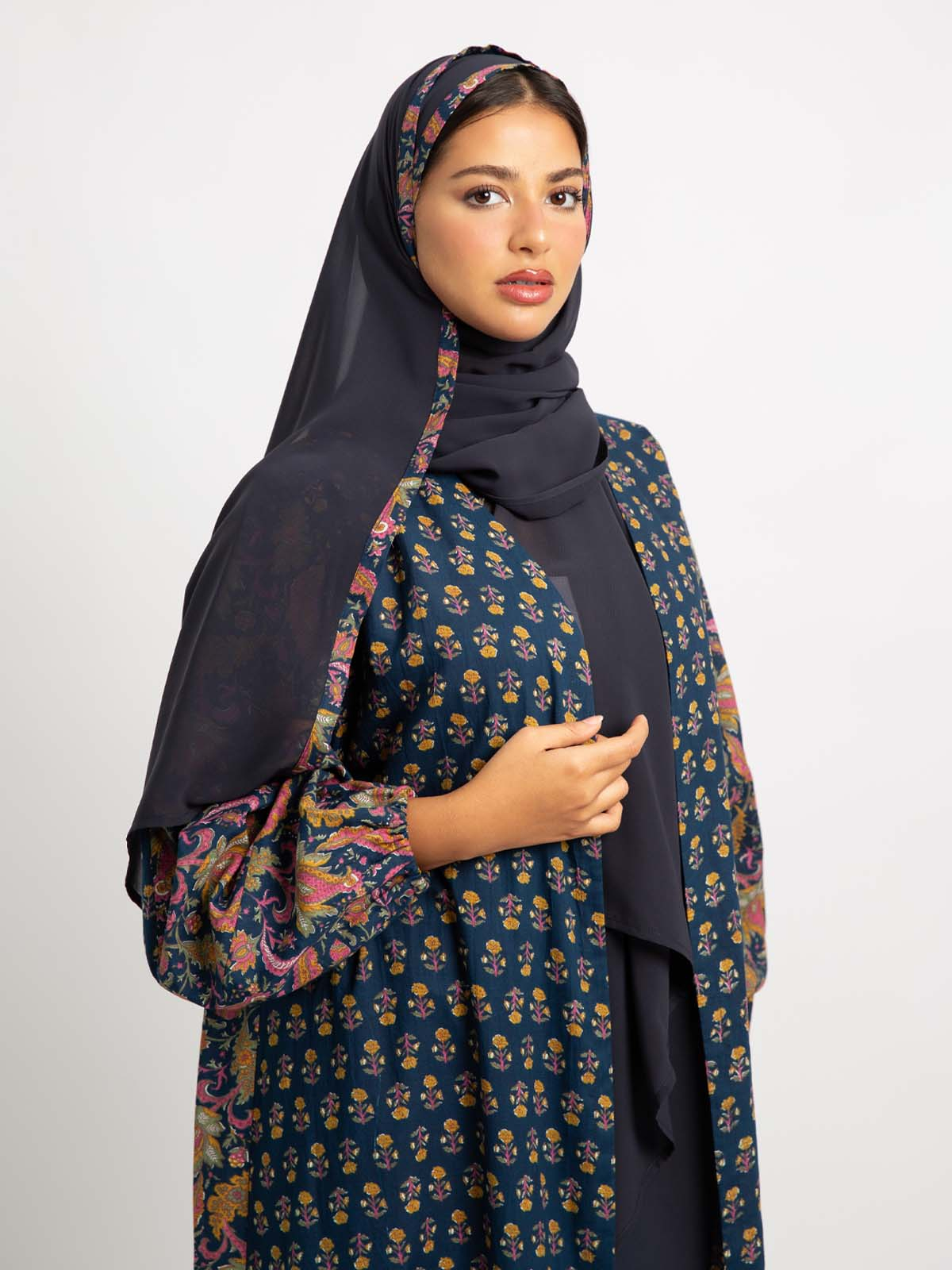Navy Paisley Flora A-Cut Abaya