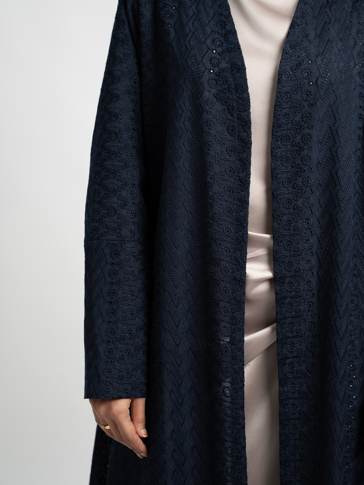 This abaya features several details: