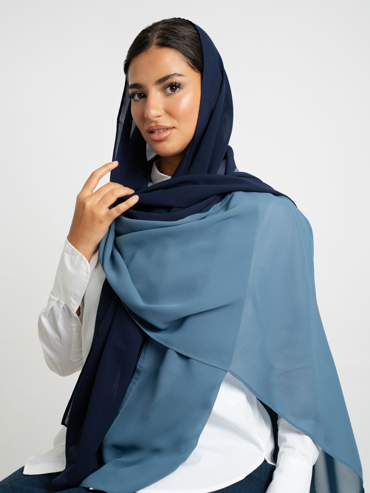 Effortless, refined, and quietly eye-catching. Made from airy chiffon fabric that flows with ease, this tarha features a harmonious two-tone design that adds a subtle statement to your look.