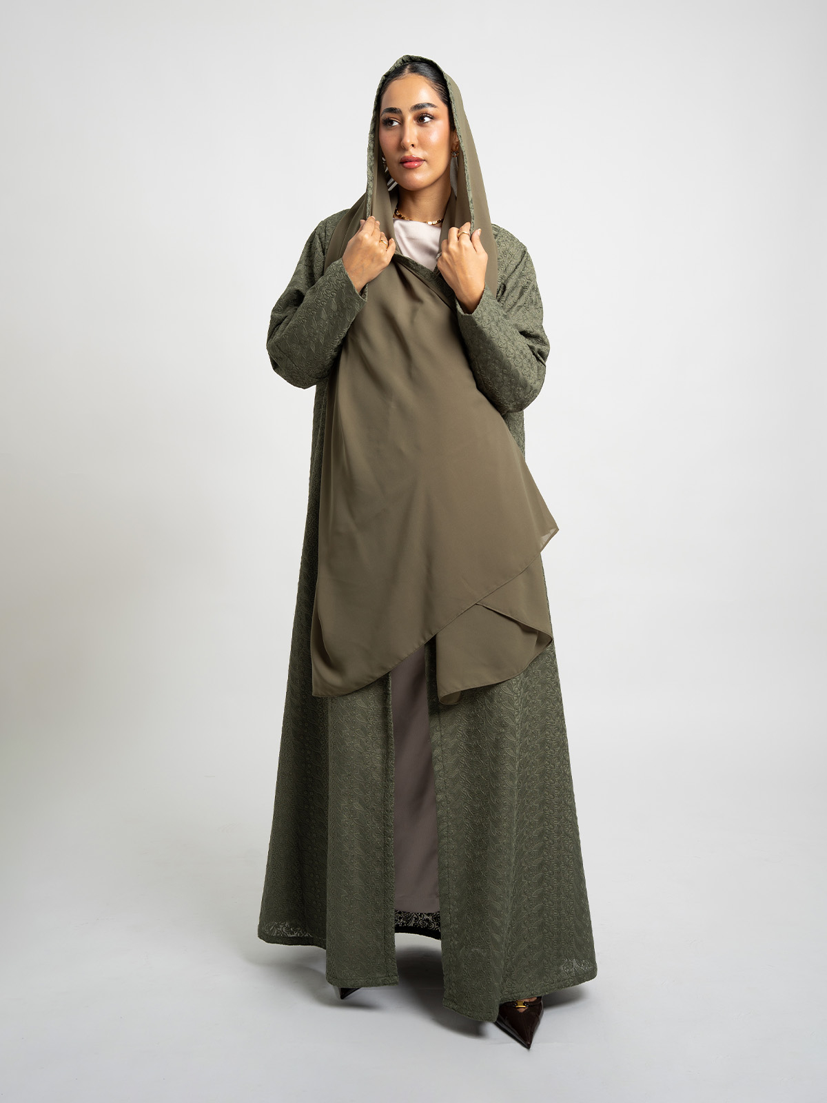 Abaya Color: Olive Abaya.