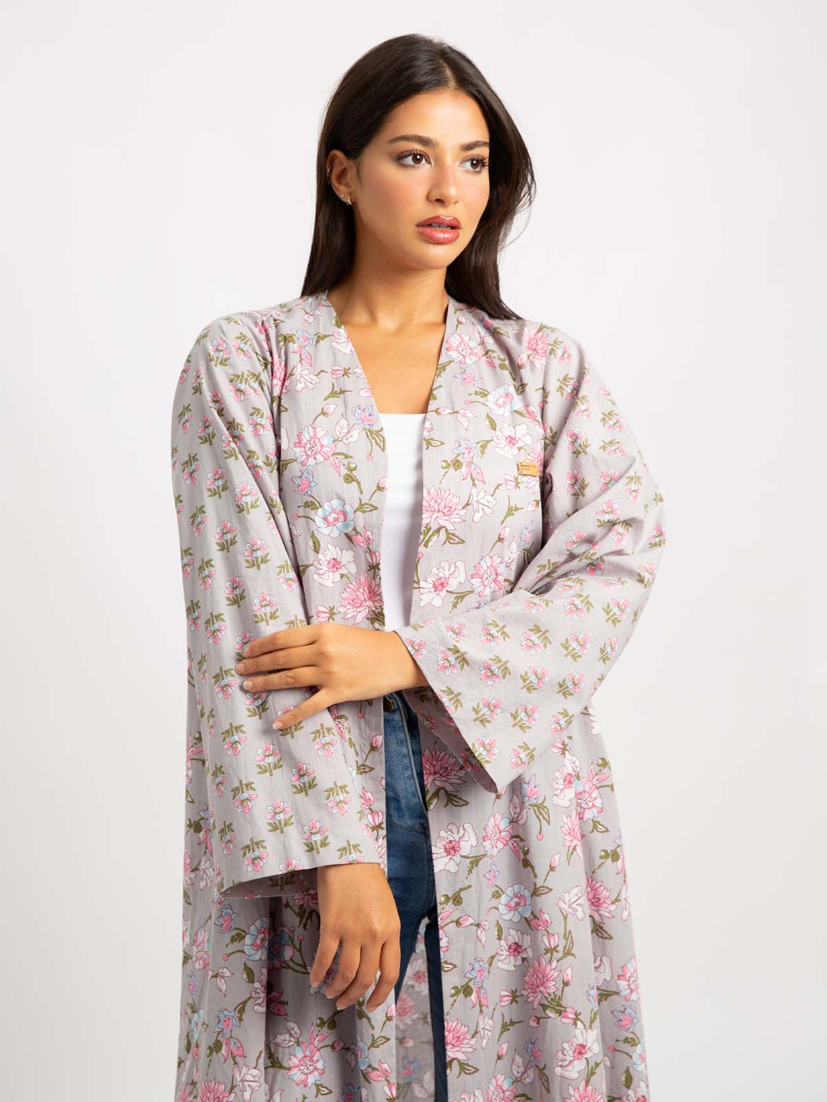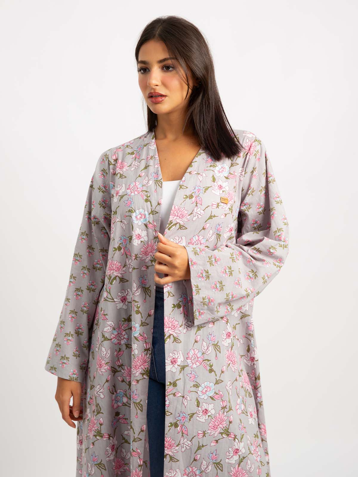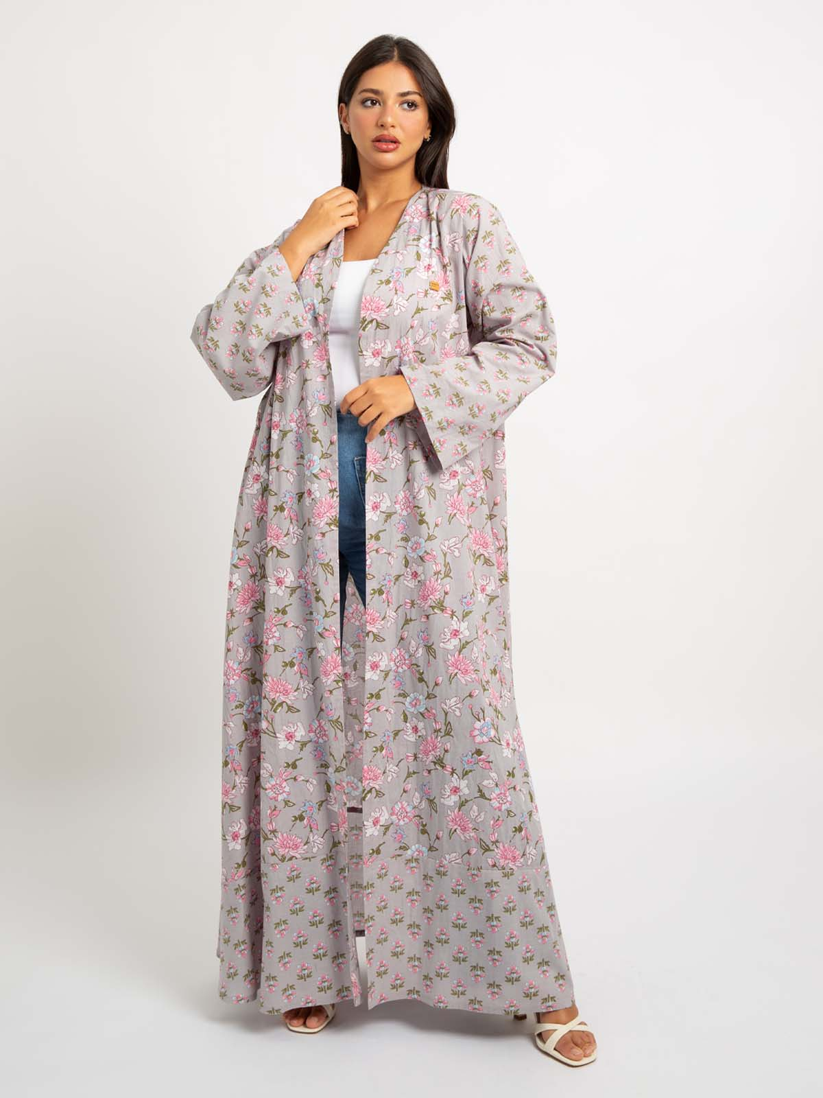 Half Cloche A-Cut Long Open Abaya in Printed Cotton Fabric