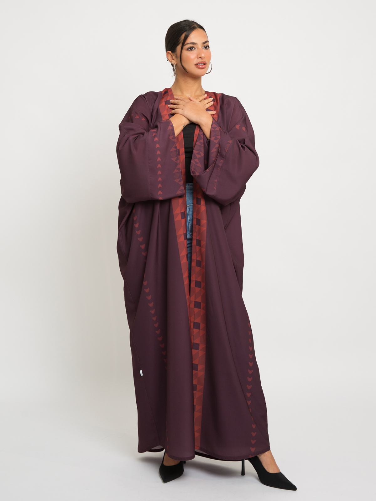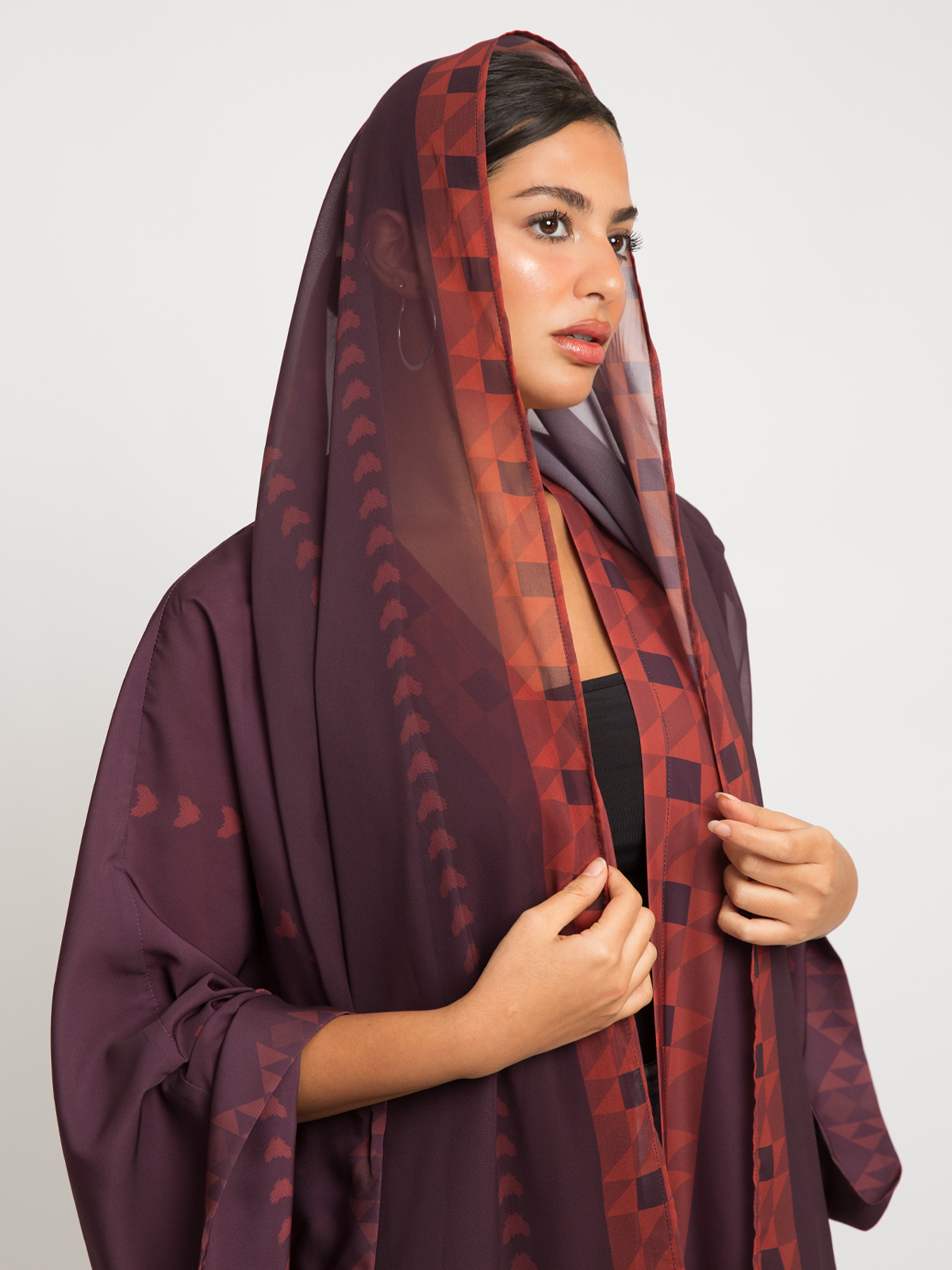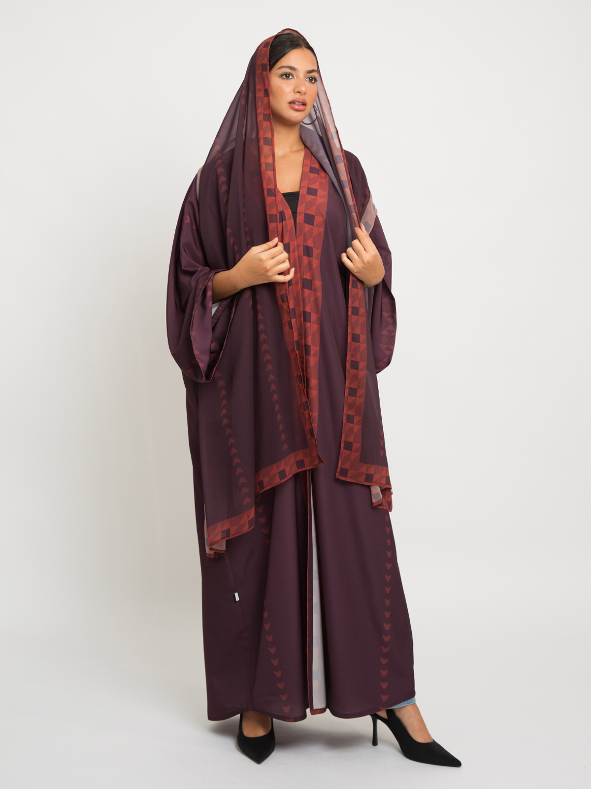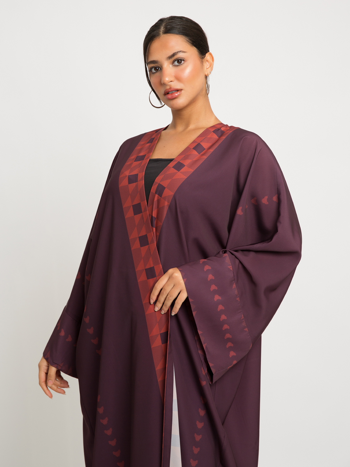Wide-fit Long Open Abaya in Printed Light Crepe Fabric