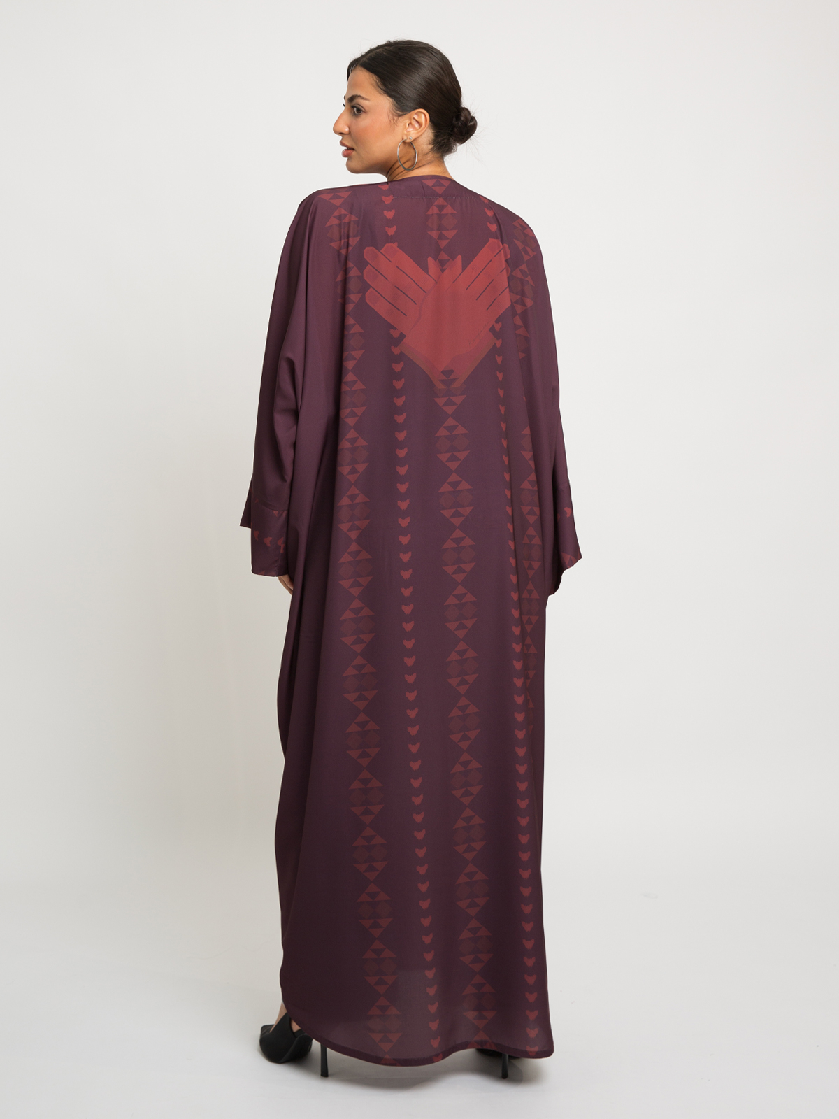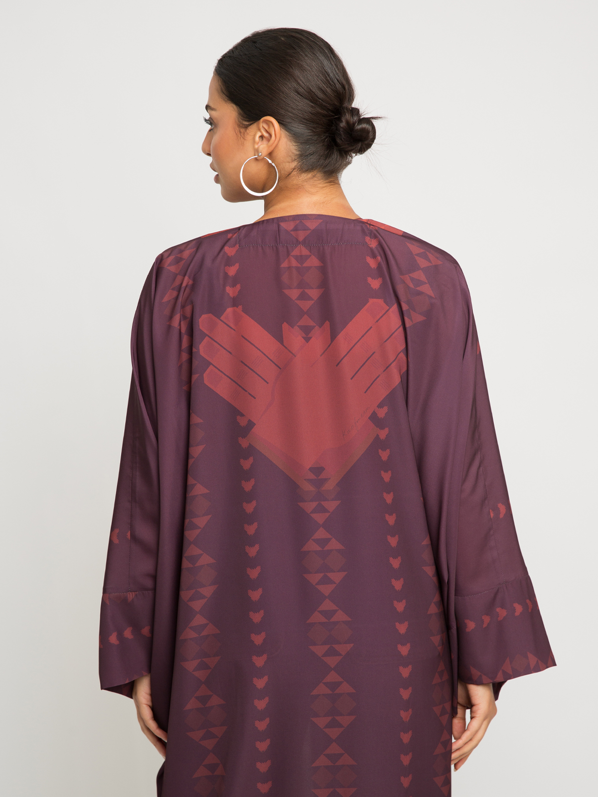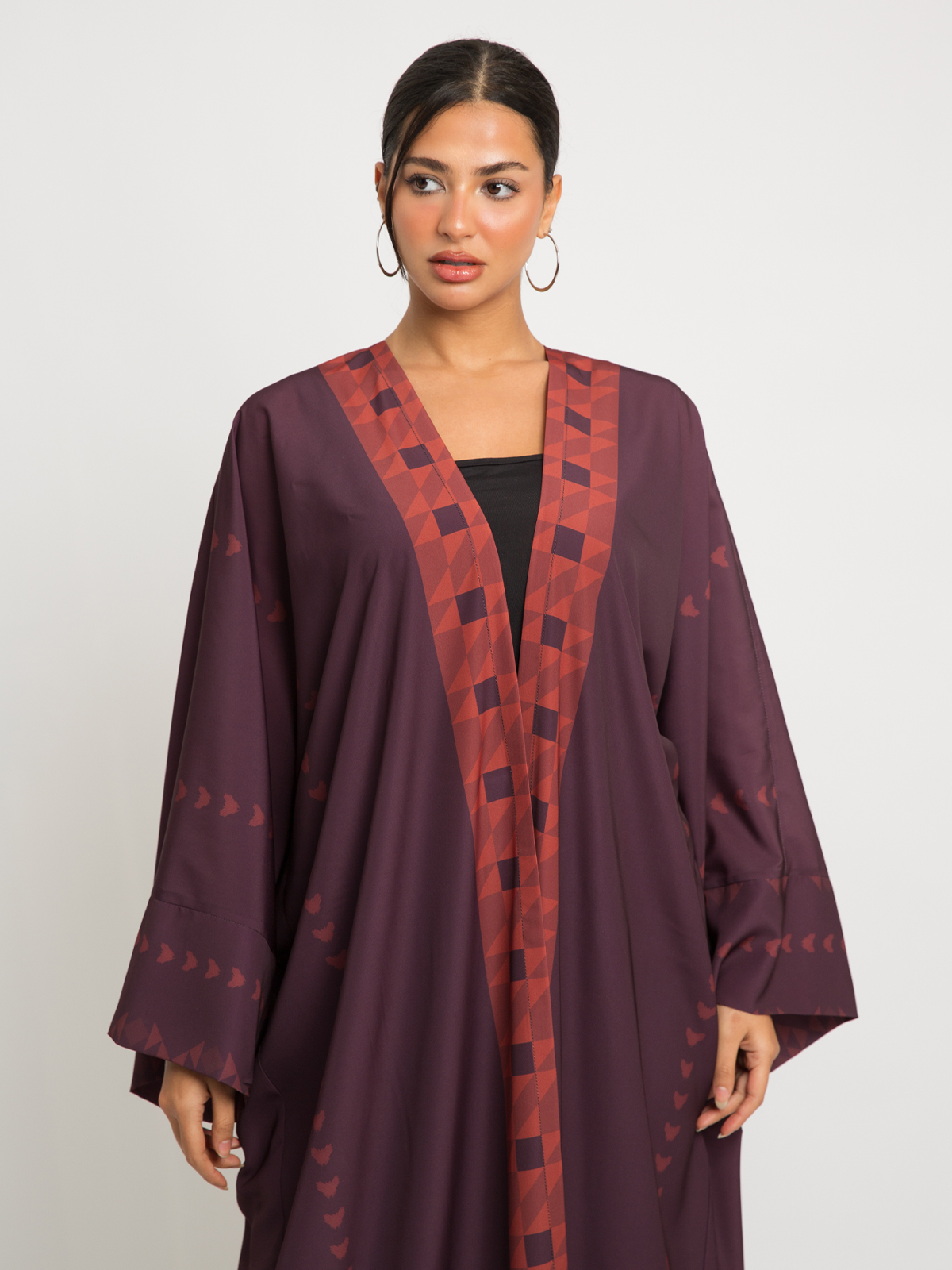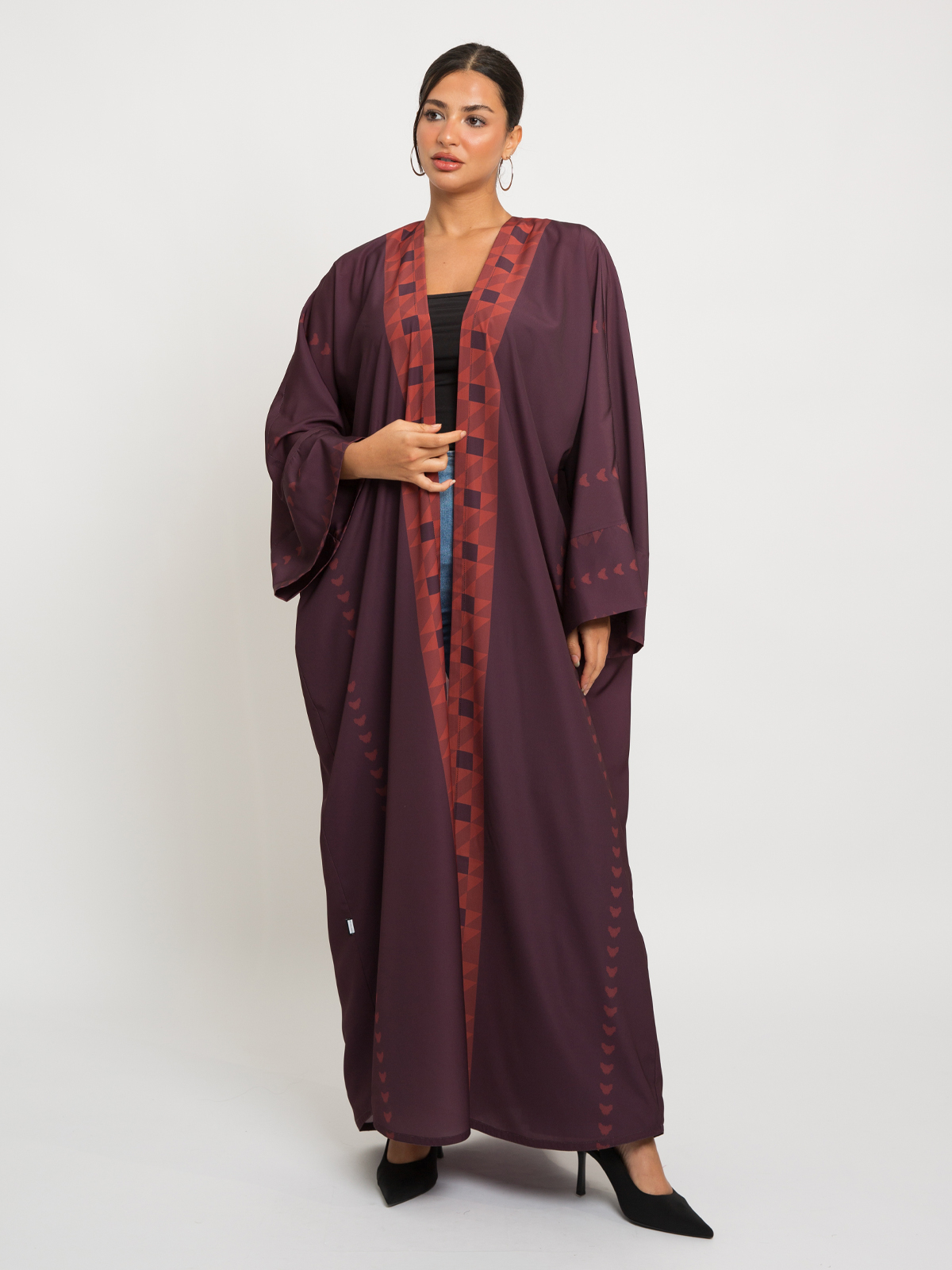 Wide-fit Long Open Abaya in Printed Light Crepe Fabric