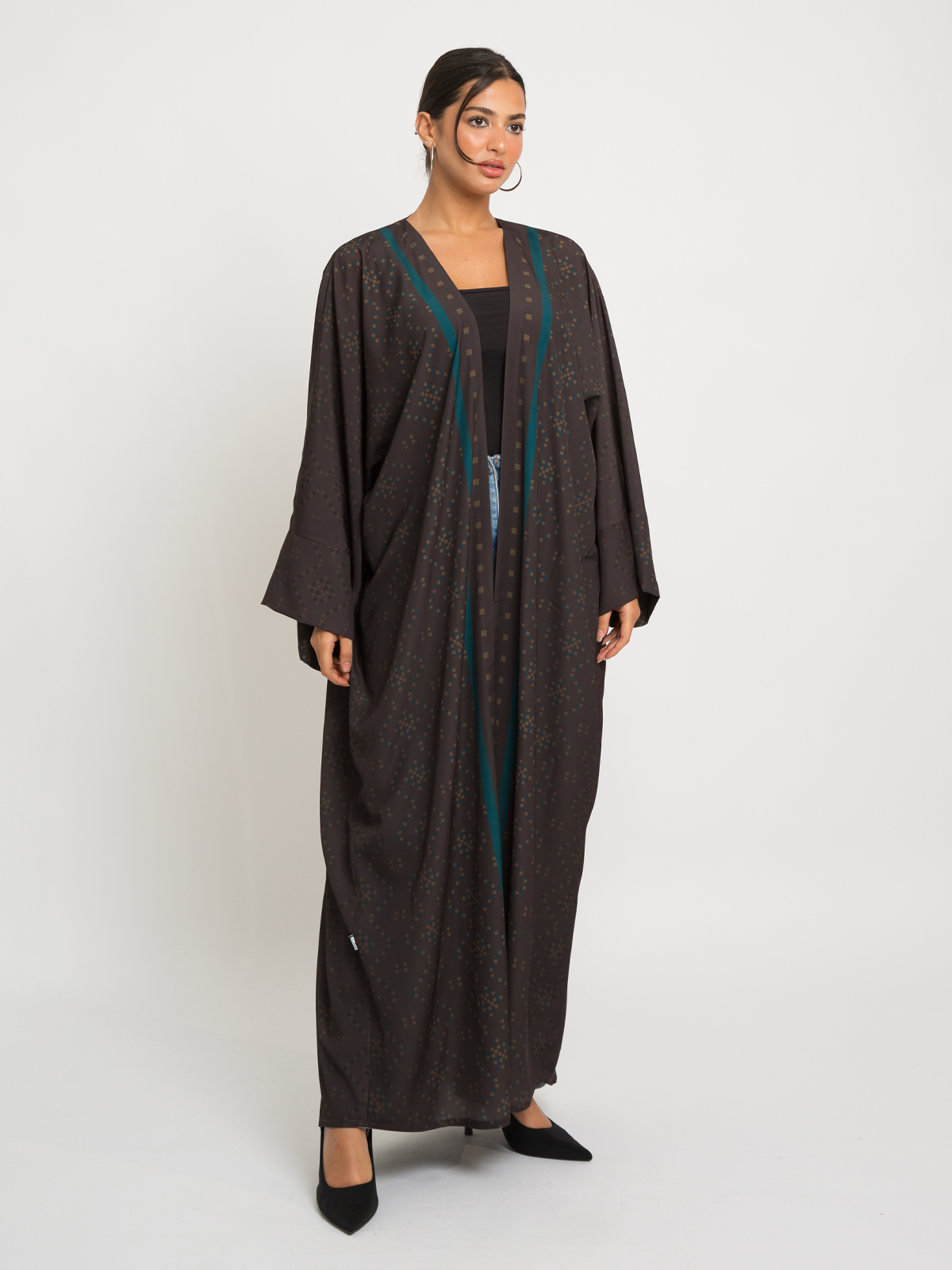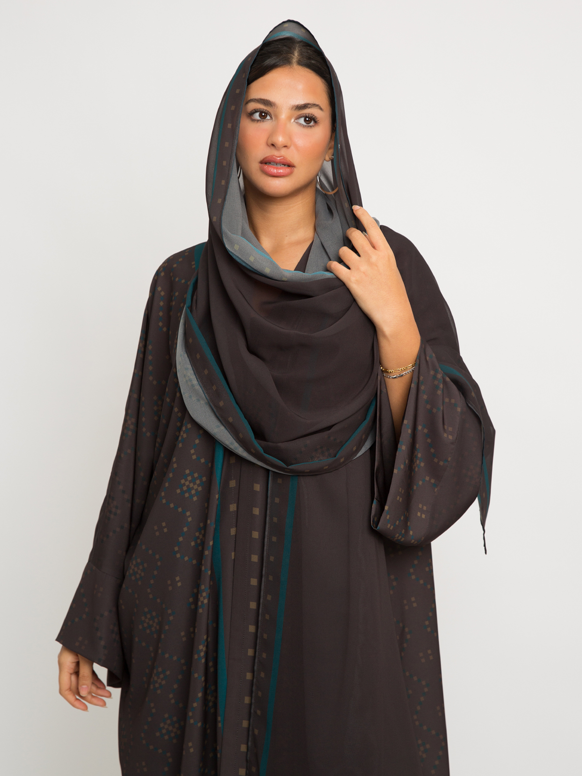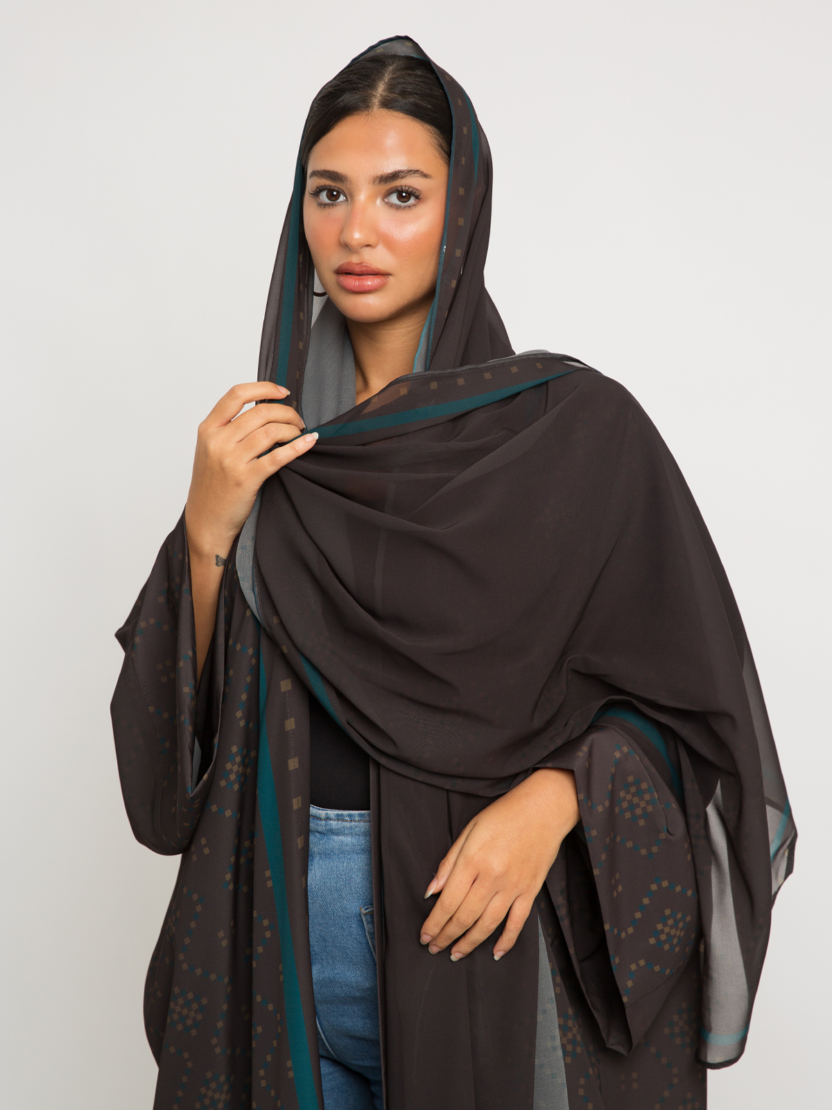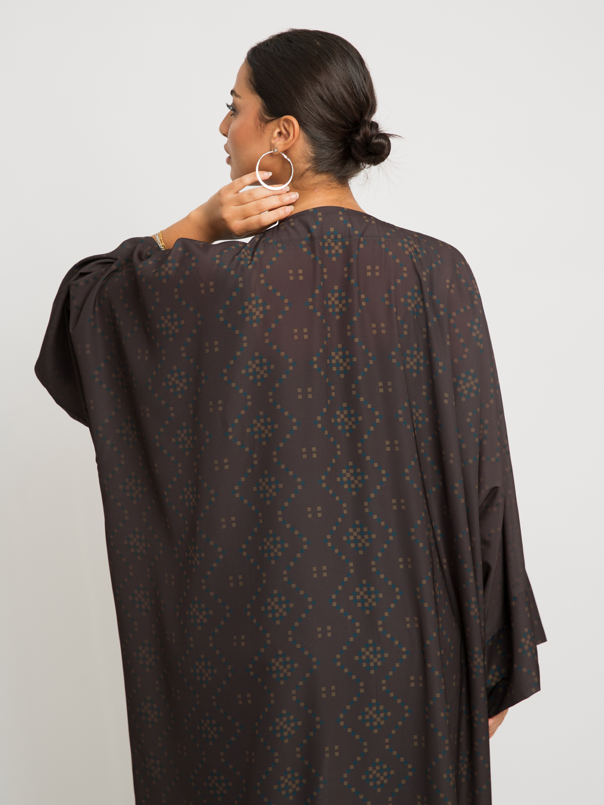 Wide-fit Long Open Abaya in Printed Light Crepe Fabric