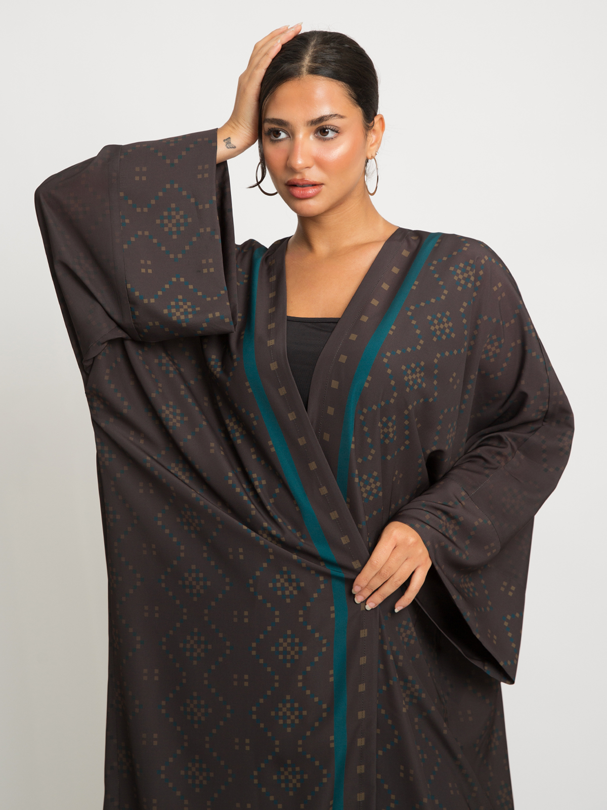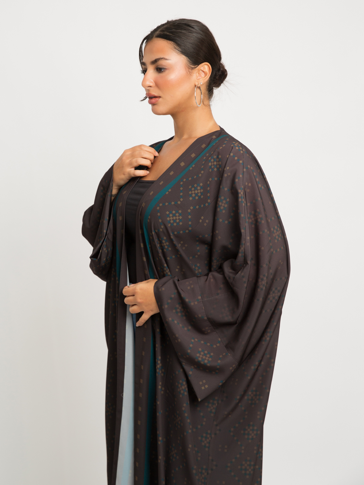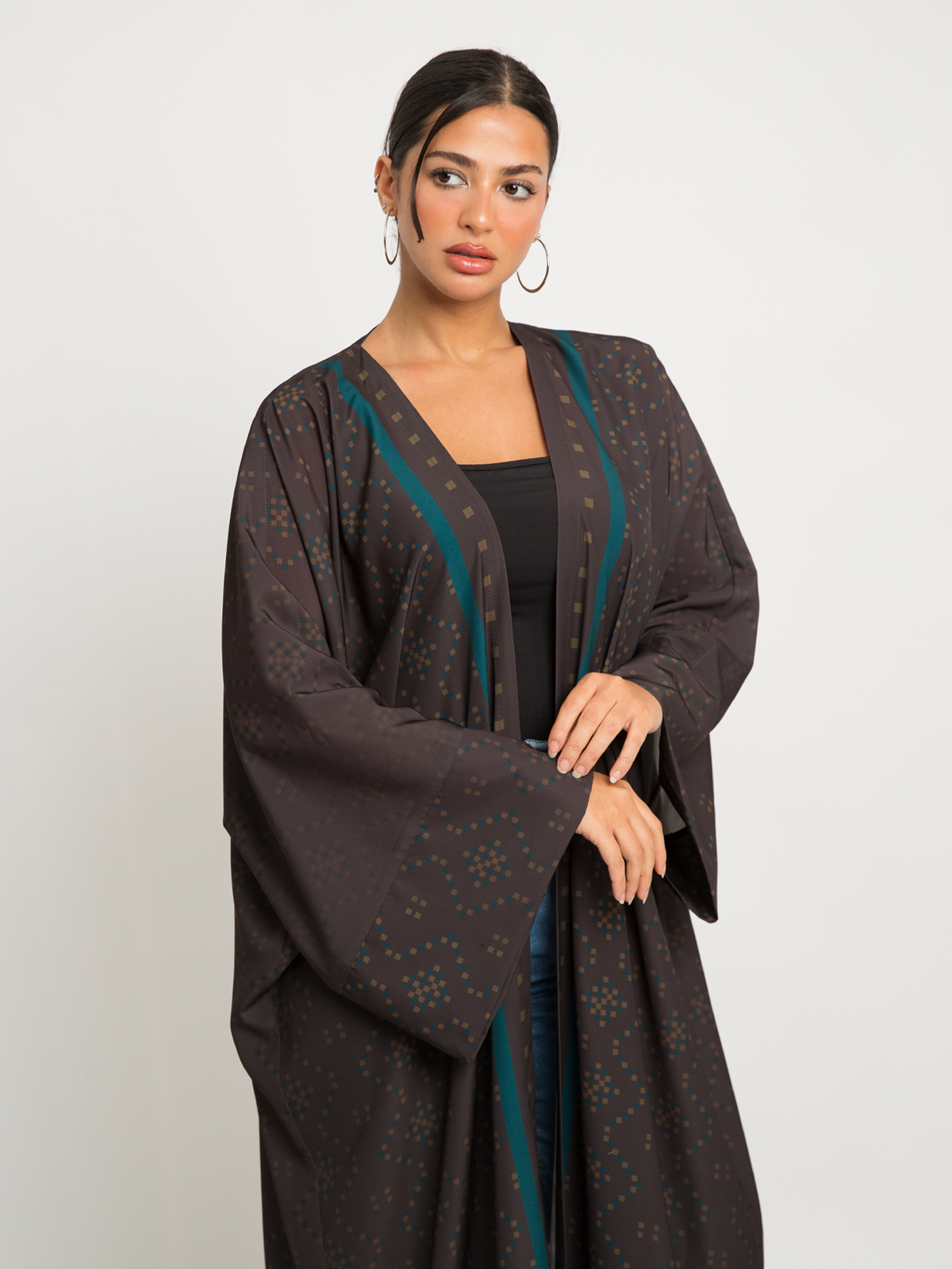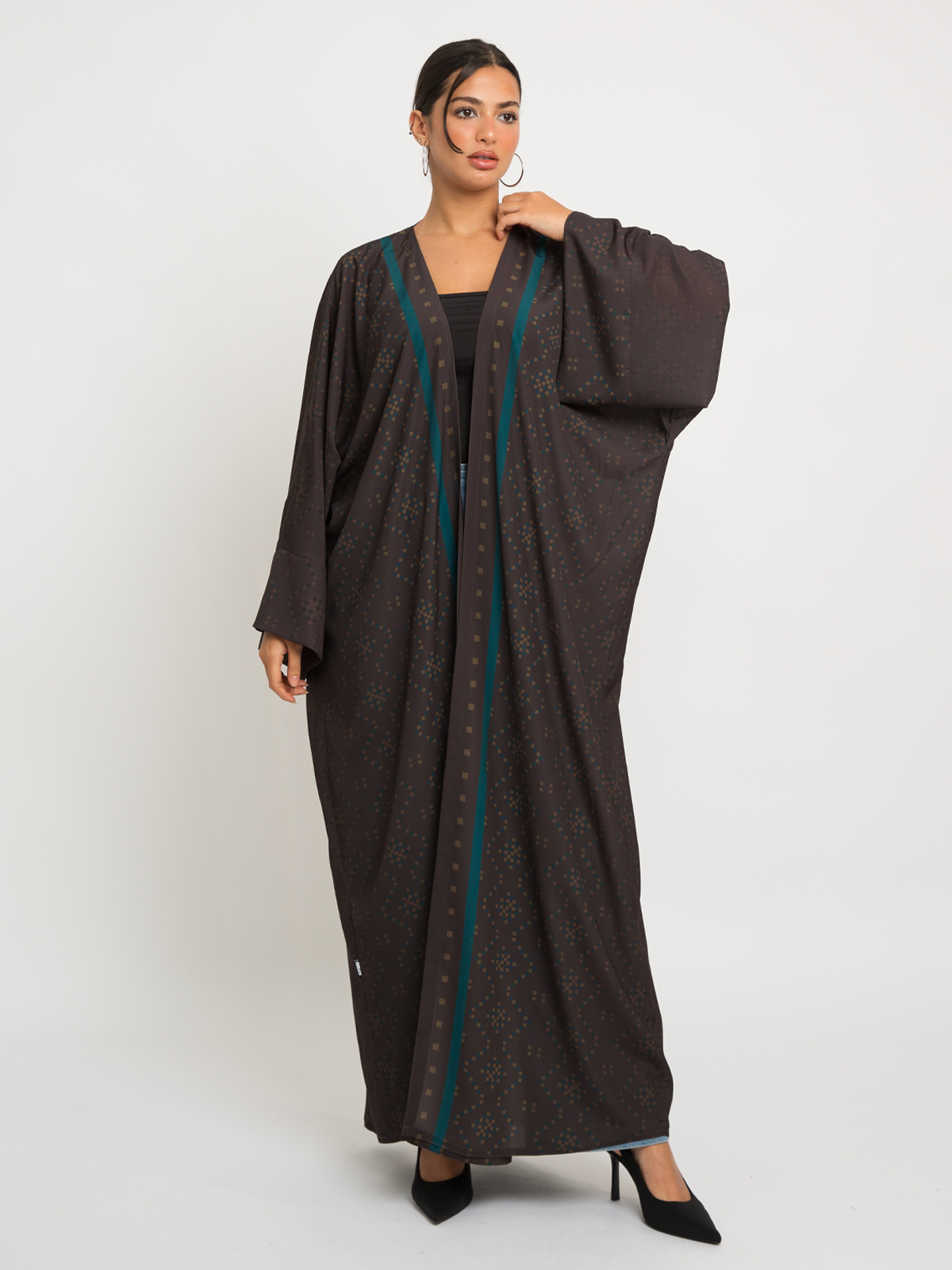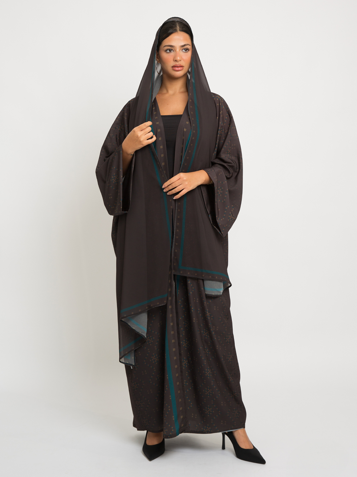 Wide-fit Long Open Abaya in Printed Light Crepe Fabric