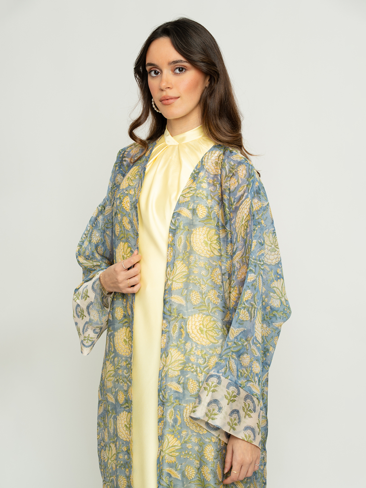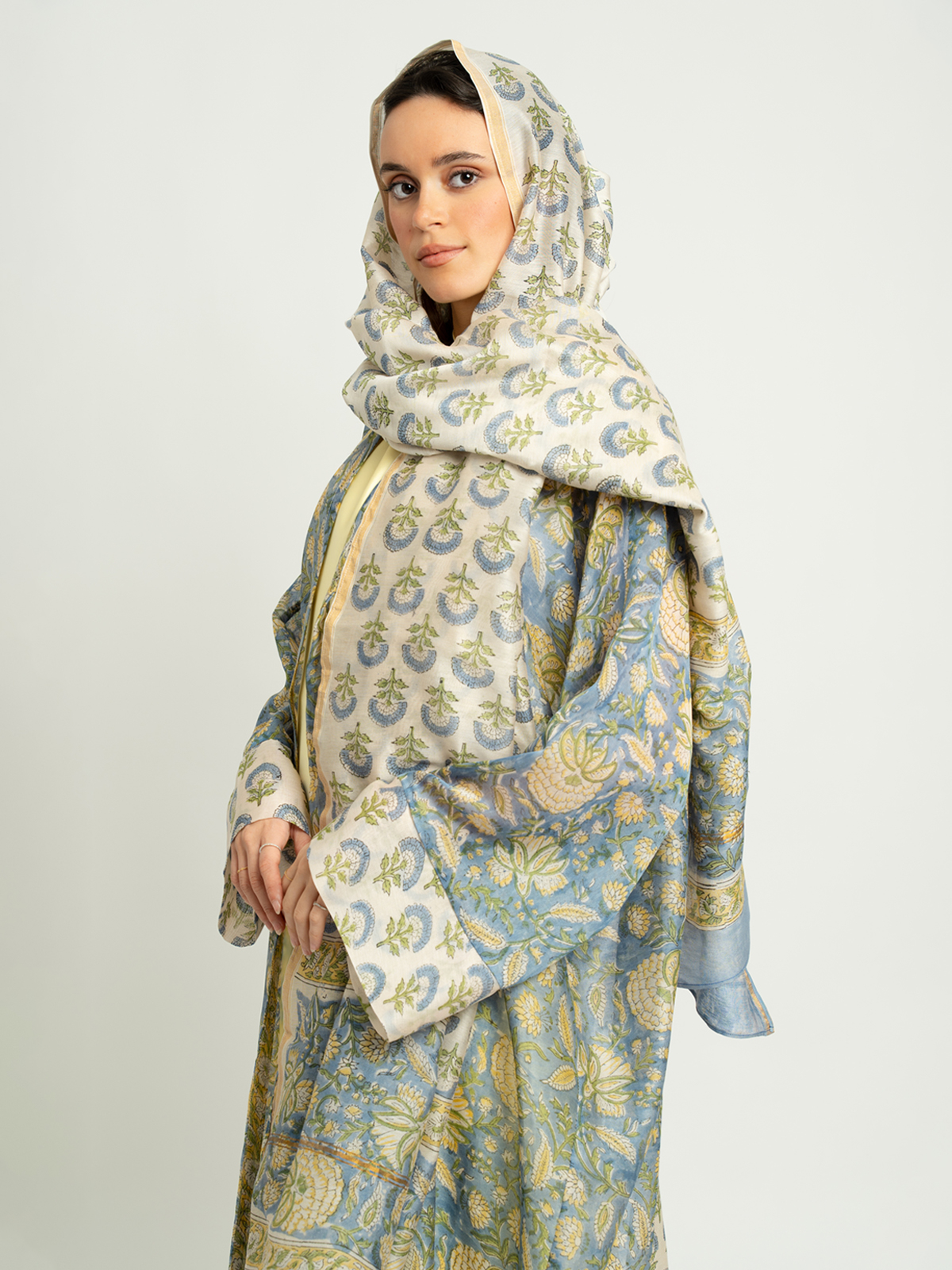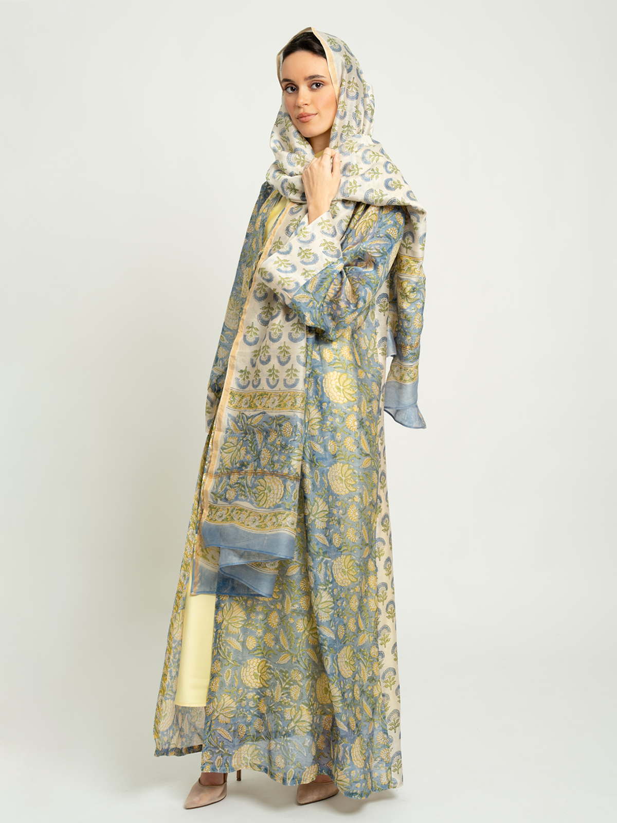 A new wide-cut printed abaya made from premium 100% stiff silk fabric, offering a soft, breathable feel you’ll appreciate all day long.