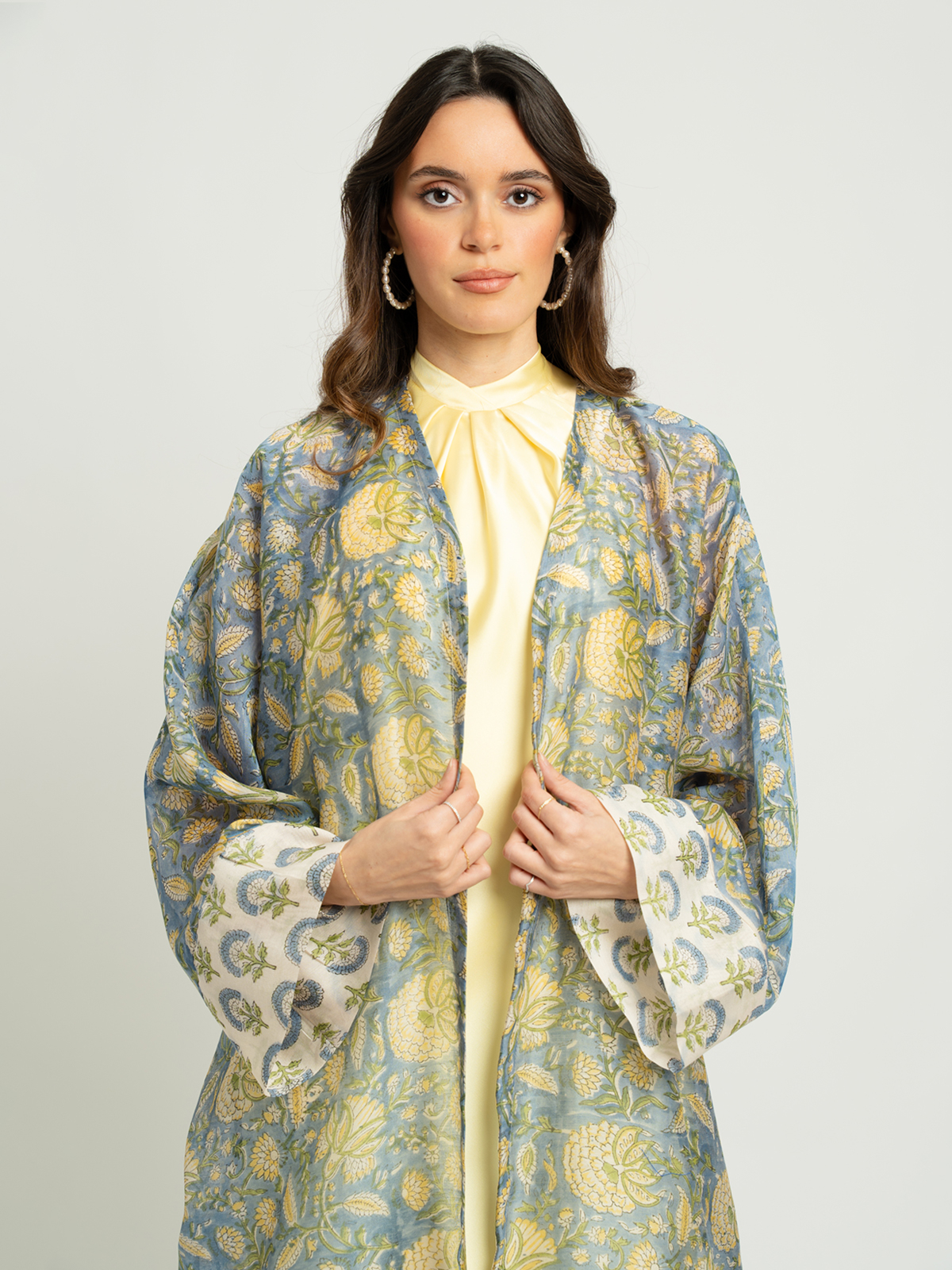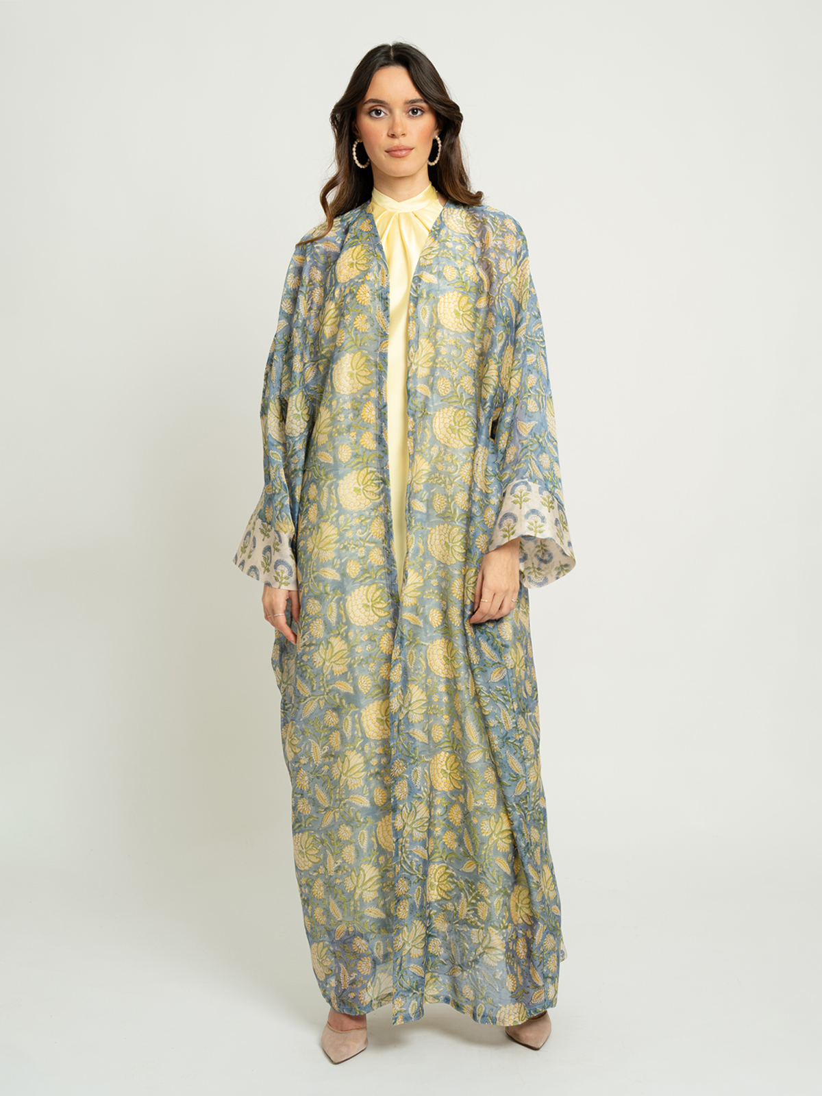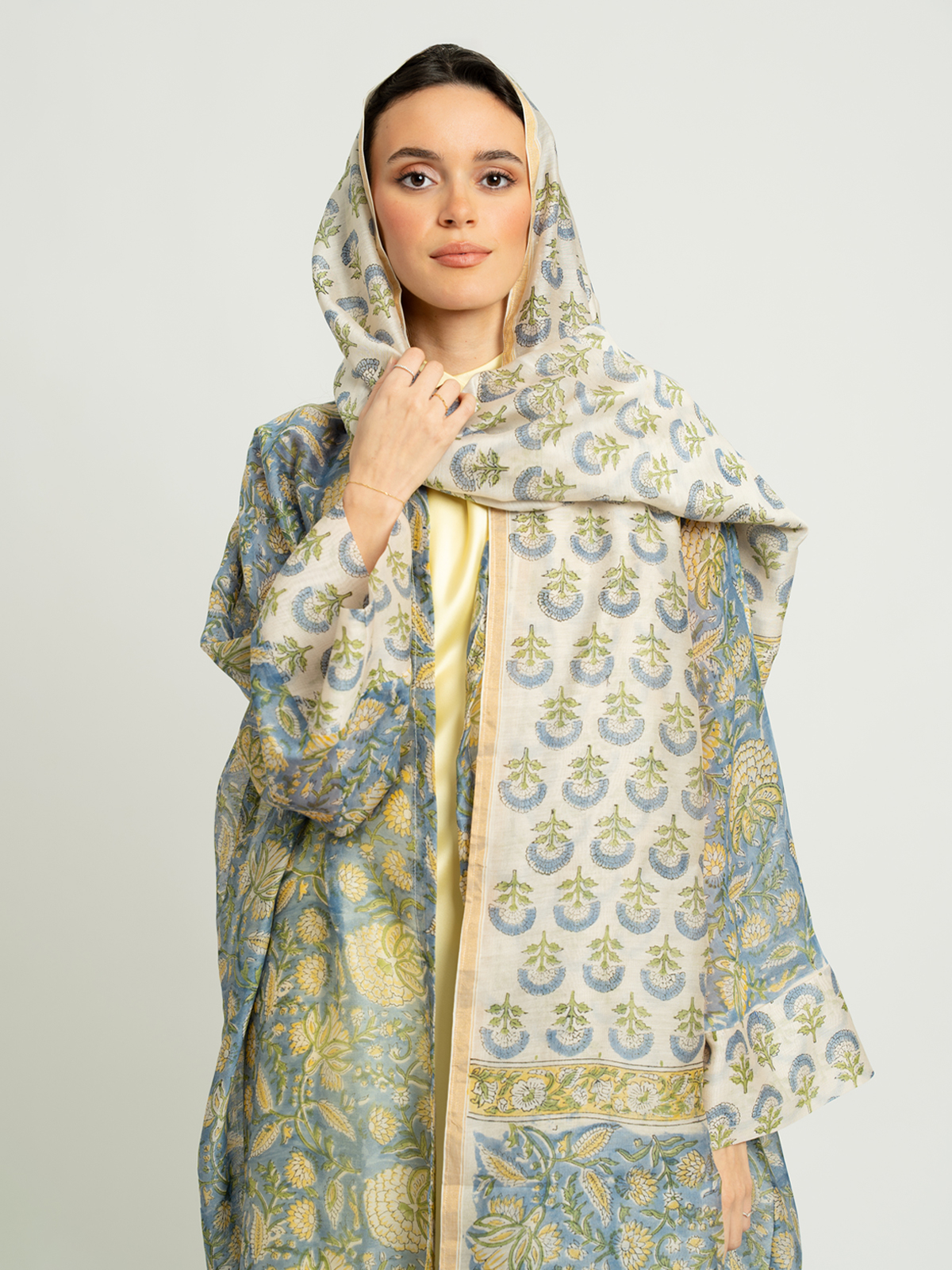 A new wide-cut printed abaya made from premium 100% stiff silk fabric, offering a soft, breathable feel you’ll appreciate all day long.