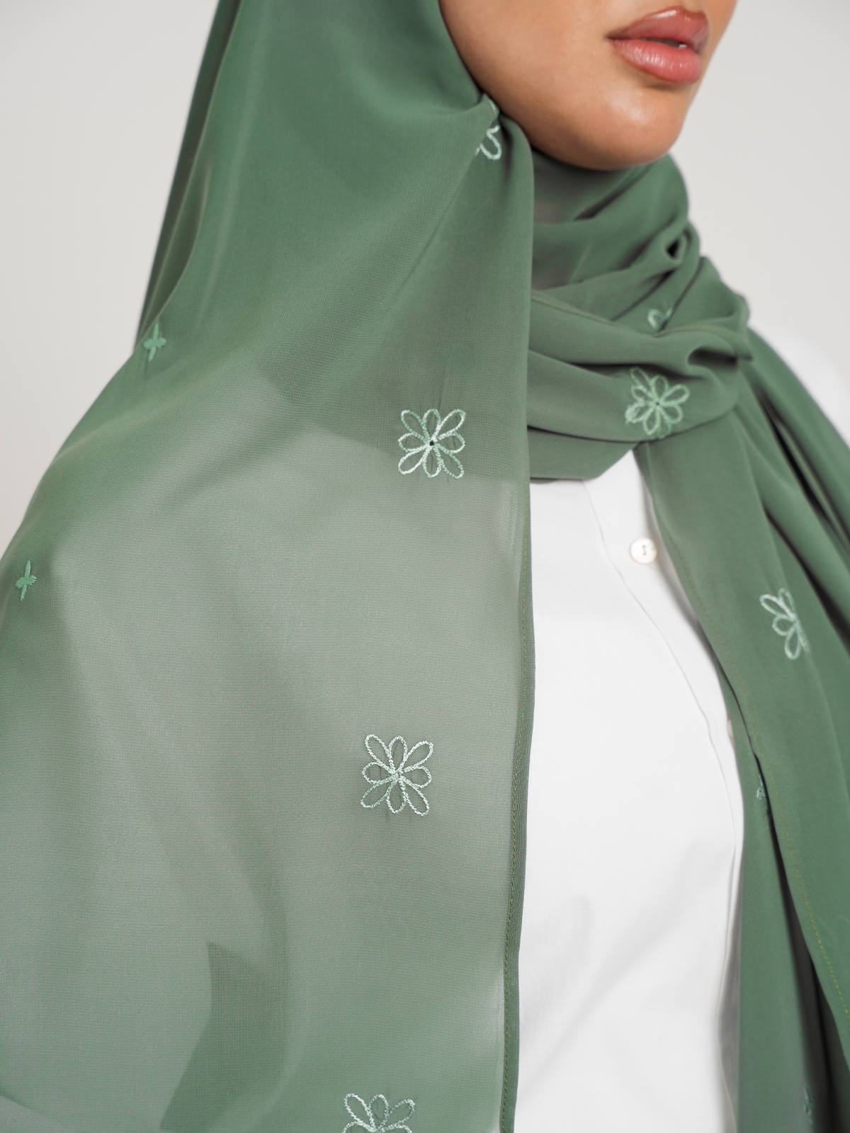 Powder Flower Embroidery Laser Chiffon Hijab – New Tarha by Kaafmeem!