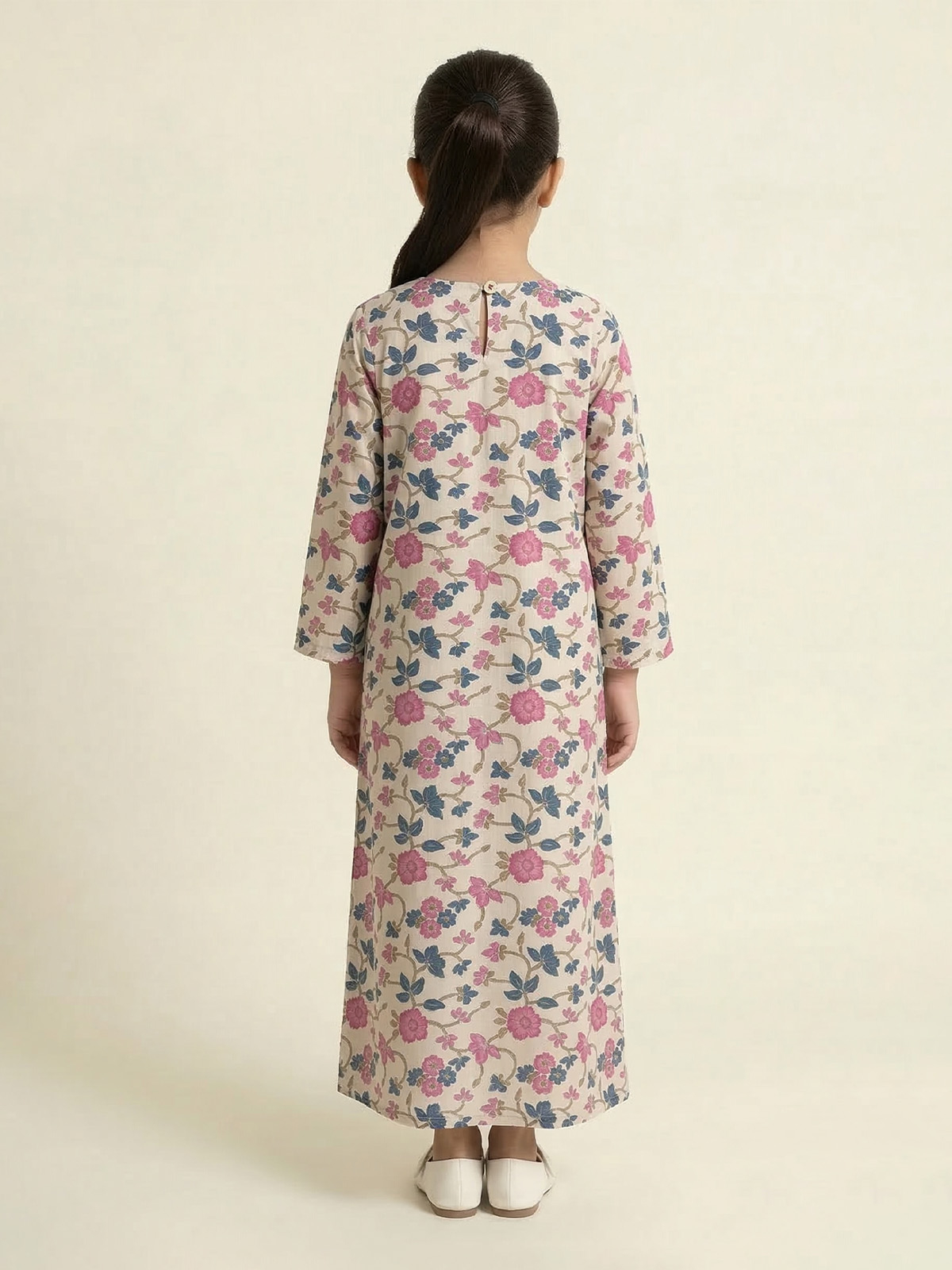 Kindly note: This jalabiya comes 2 inches shorter than the standard length. If you prefer a full-length fit, we recommend choosing one size up. Available in sizes for girls aged 3 to 9 years.