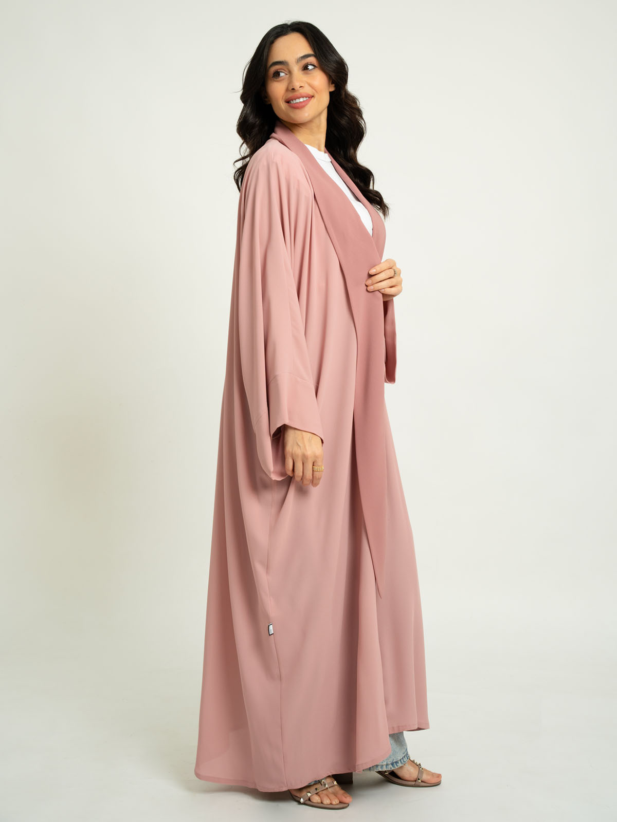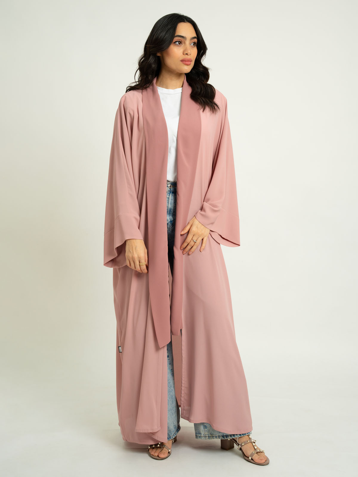 Flowstyle Wide-Fit Long Open Abaya in Light Fabric
