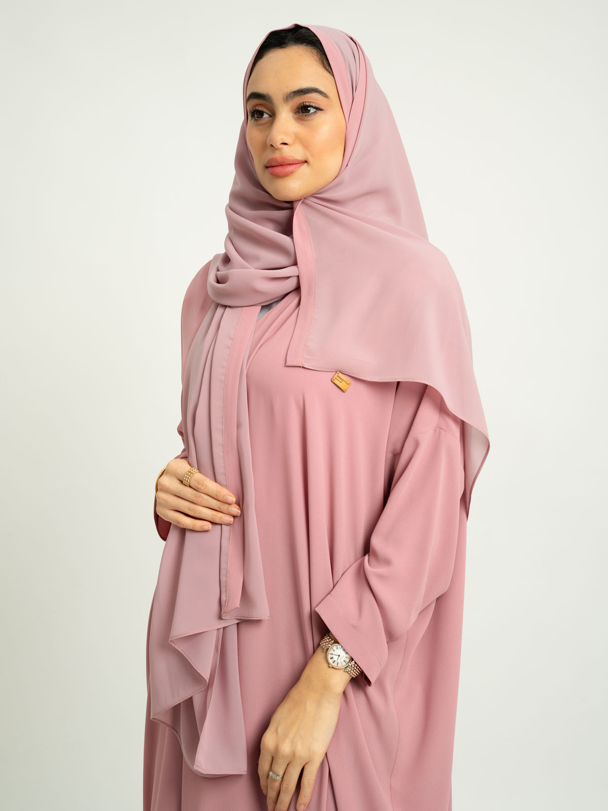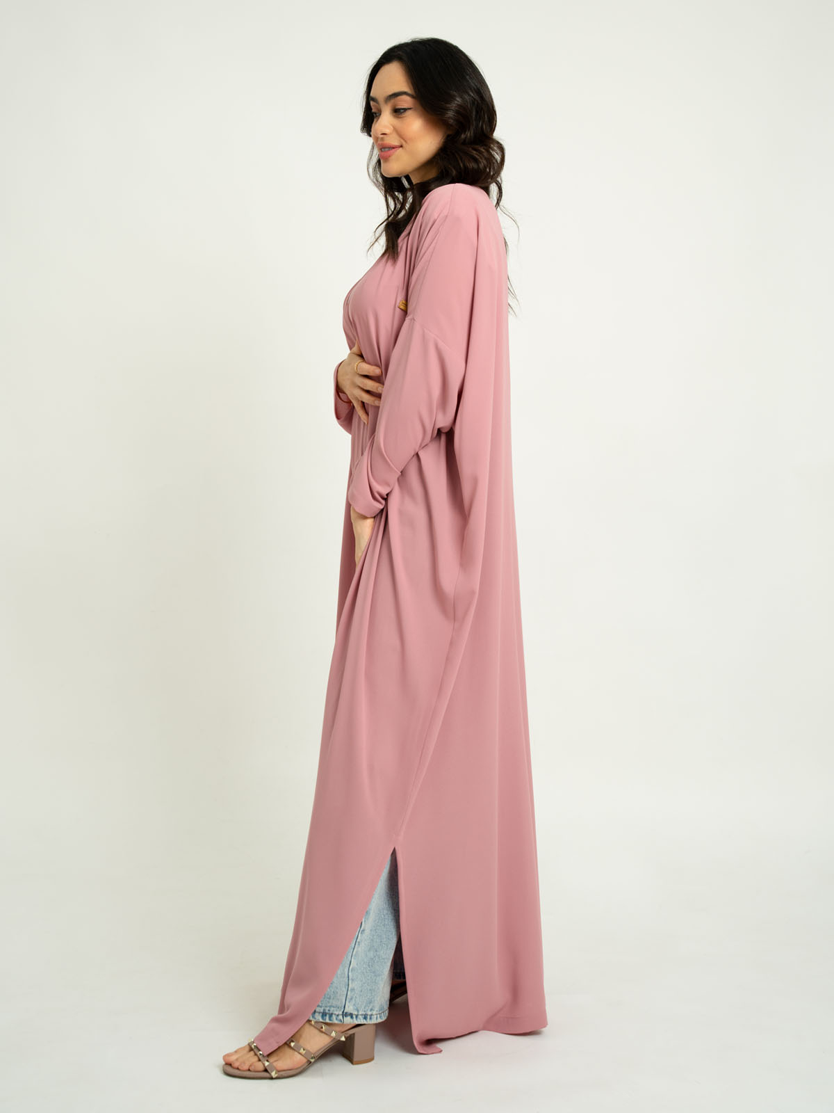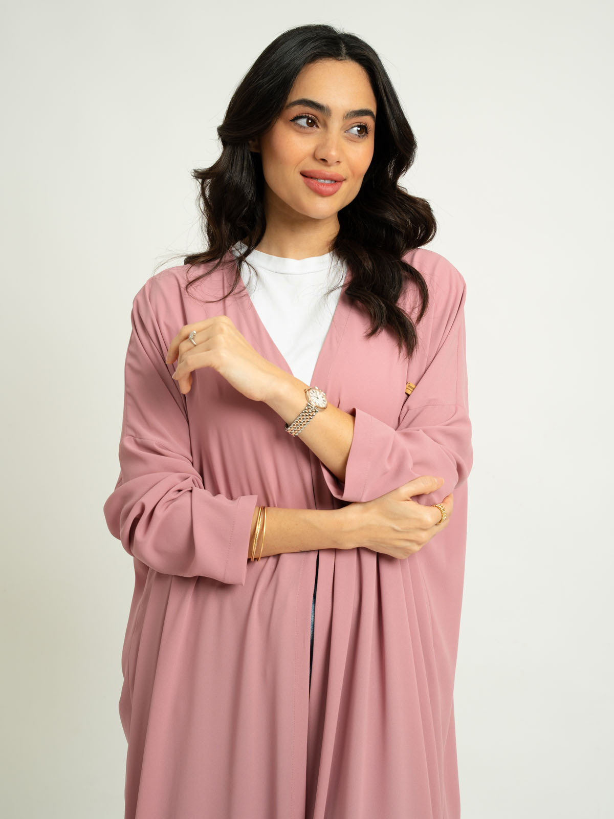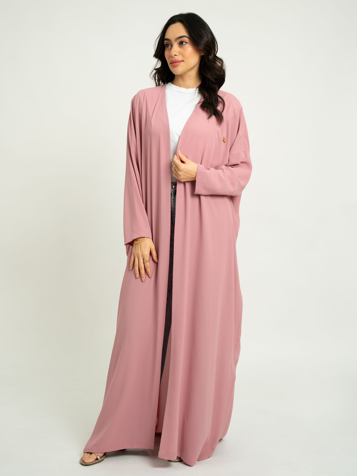 Wide-fit Tight Sleeves Long Open Abaya in Light Crepe Fabric