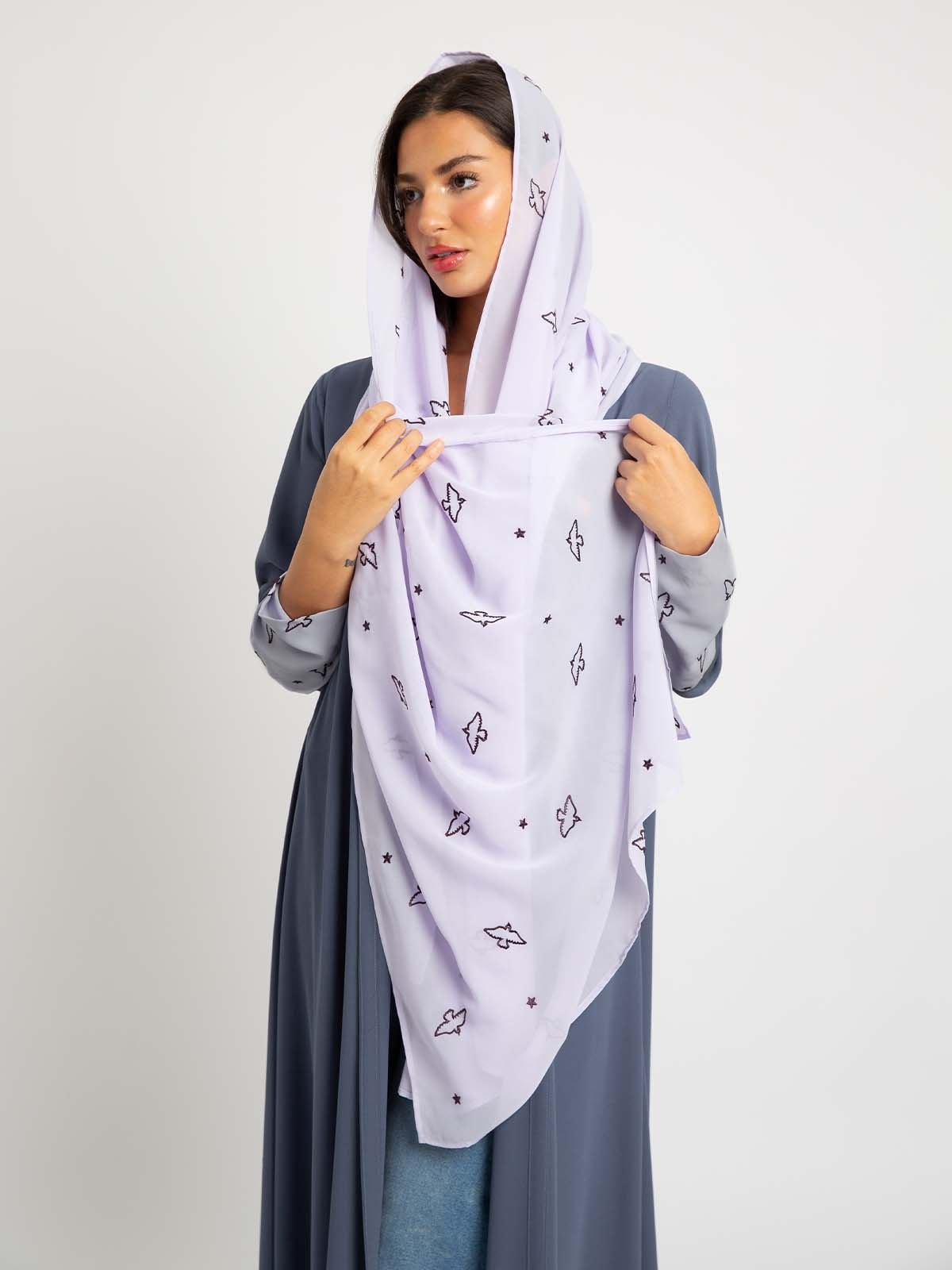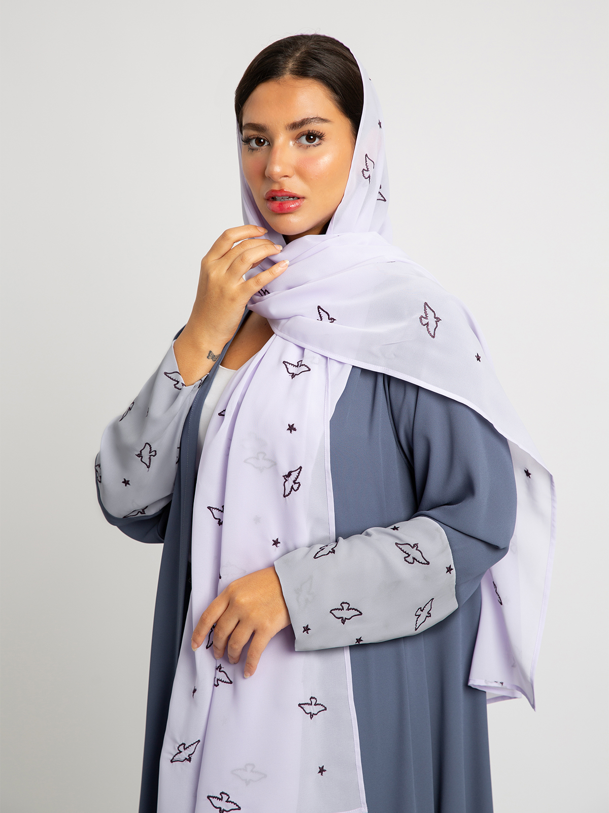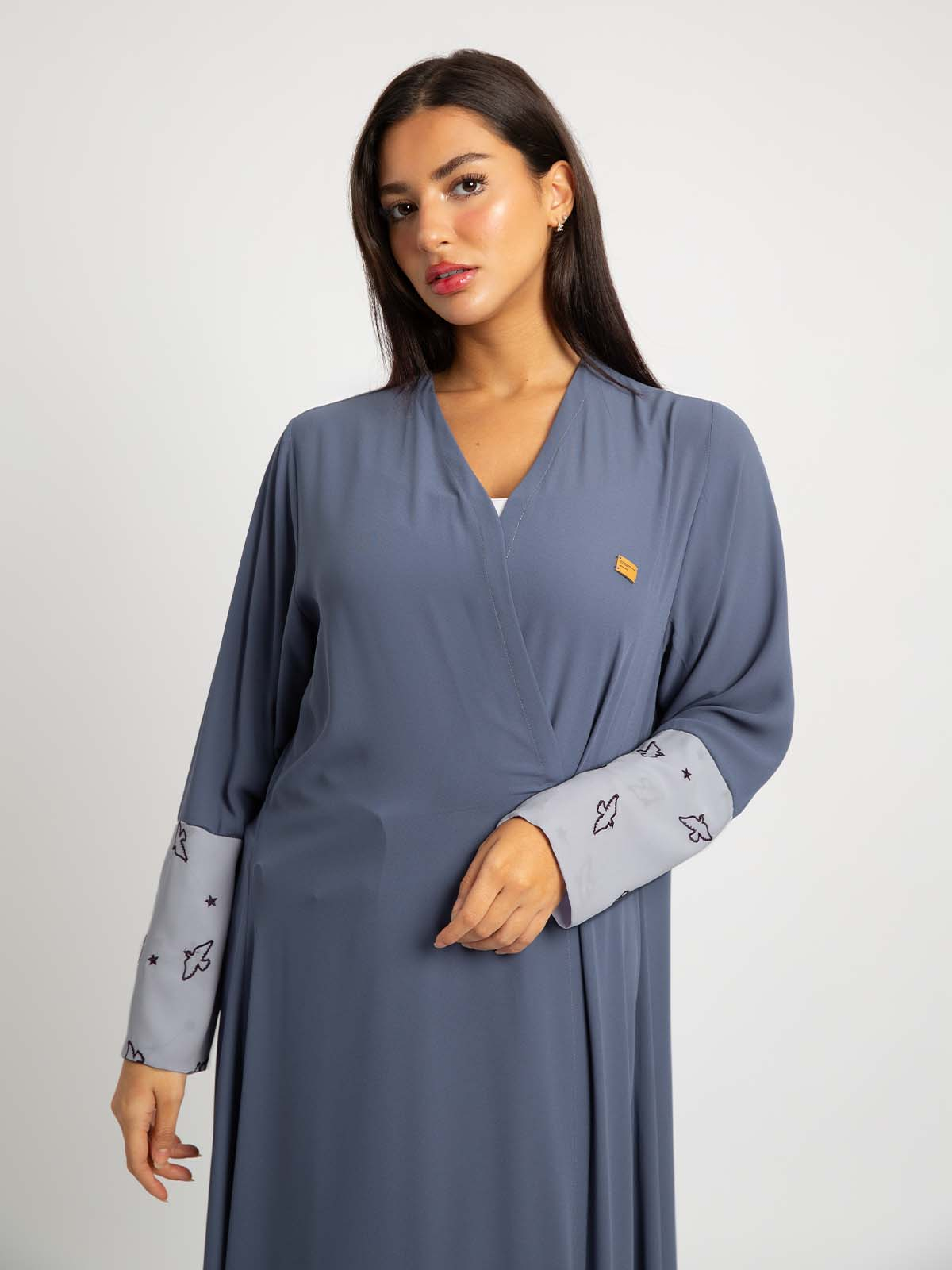 Long Open Abaya with Tight Sleeves in Embroidered Crepe Fabric