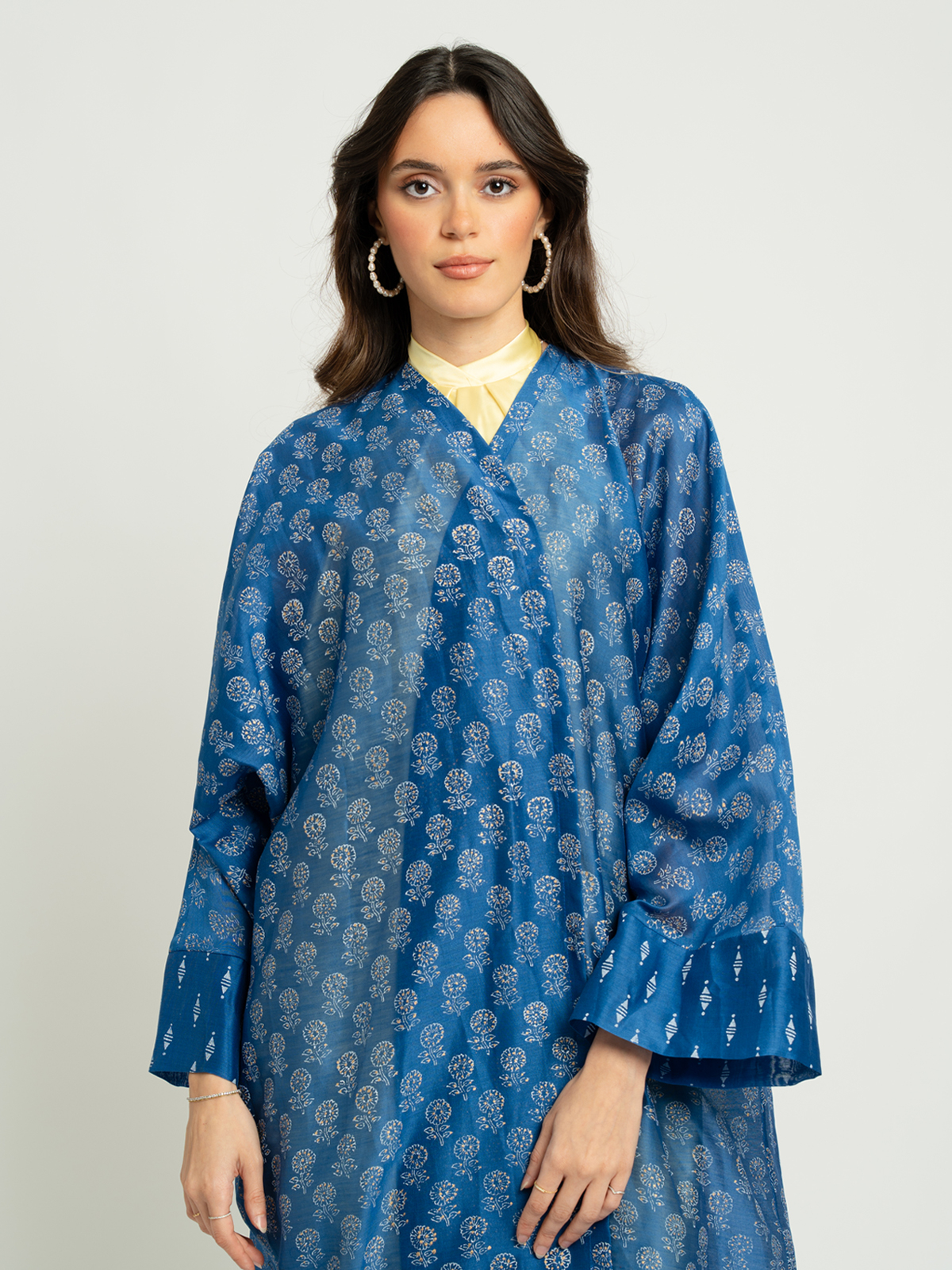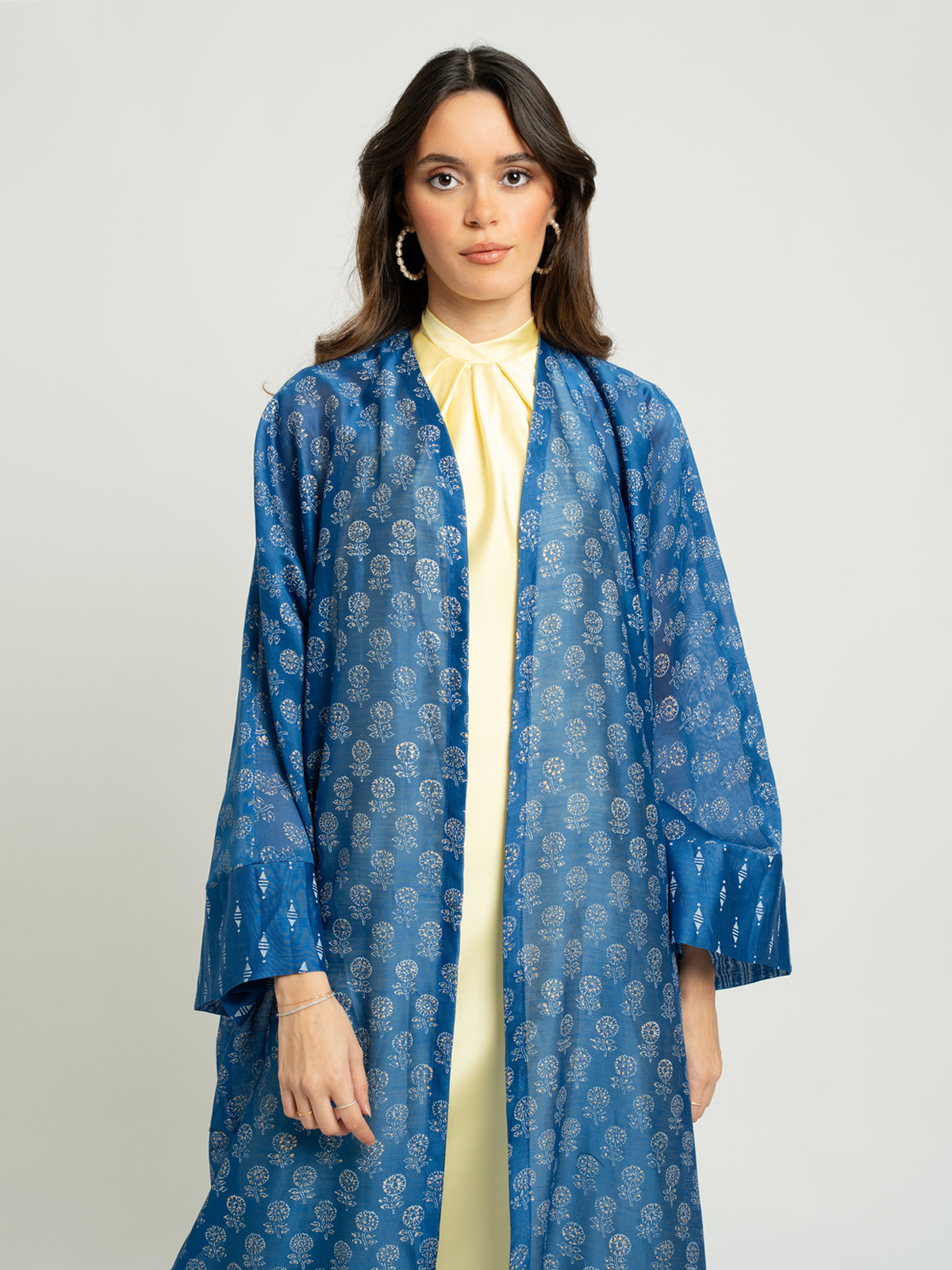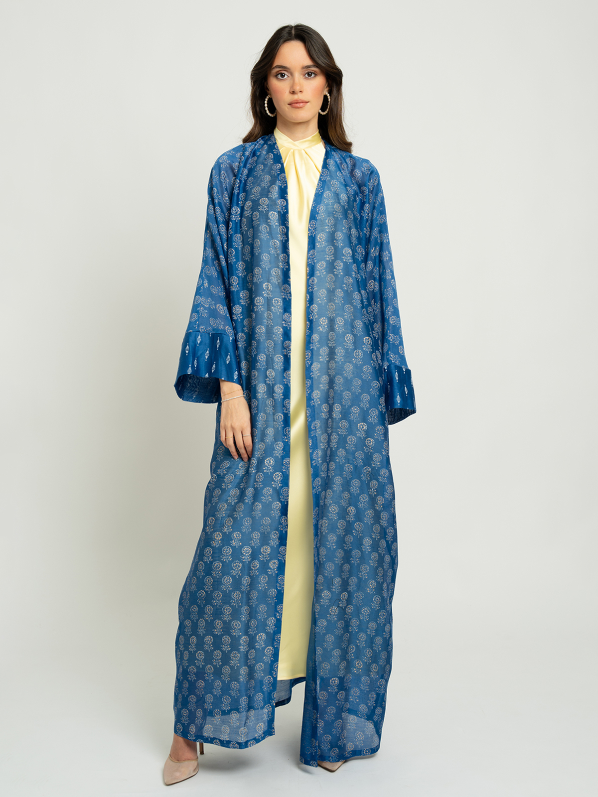 A new wide-cut printed abaya made from premium 100% stiff silk fabric, offering a soft, breathable feel you’ll appreciate all day long.