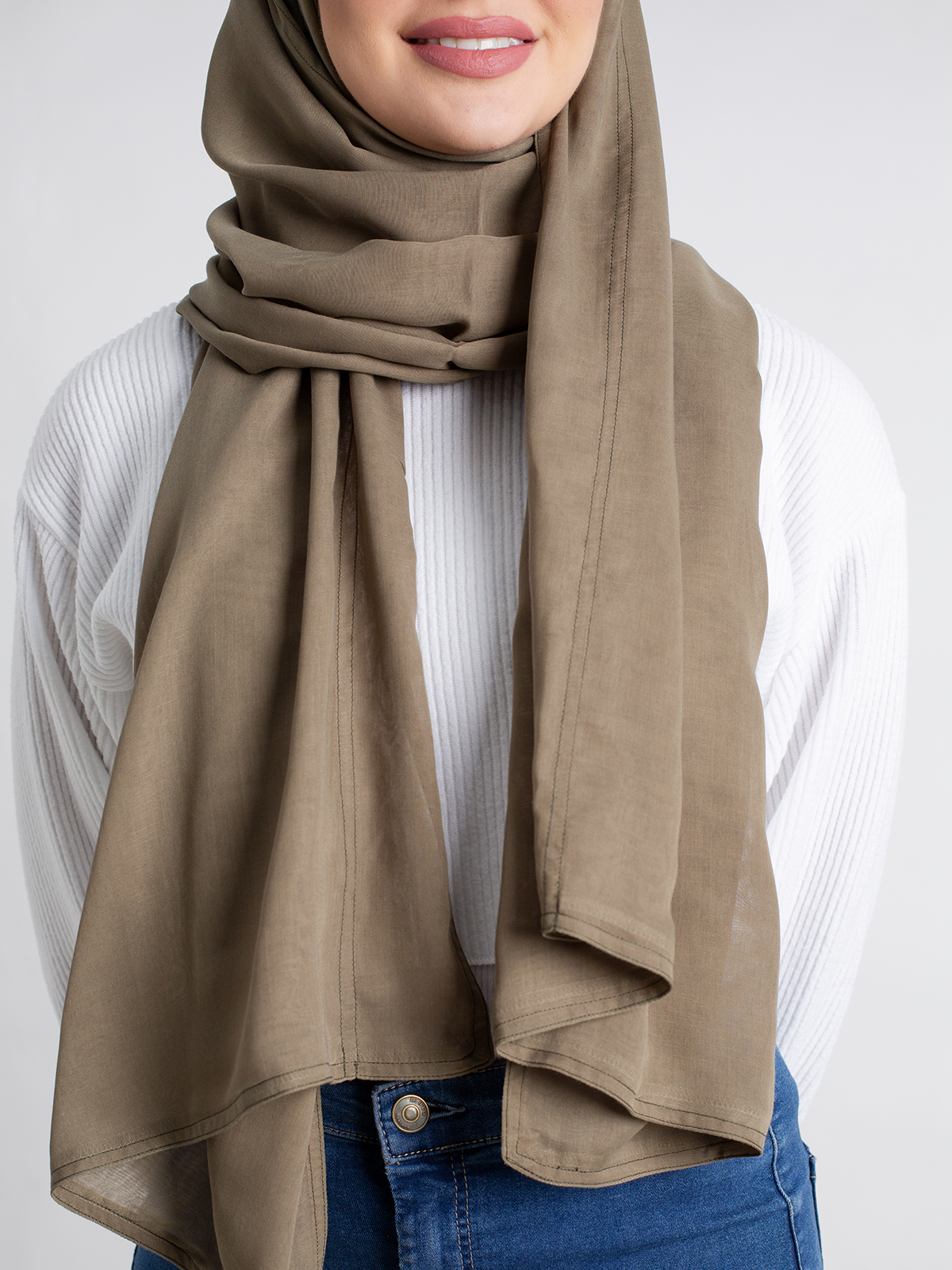 Unique with stitching lines abstract! Voile-feel hijab light, practical, & non-slip for both daily use & occasions. Highly recommended for travel, adventures & activities. Gives you a steady hijab wrap shape all day long.