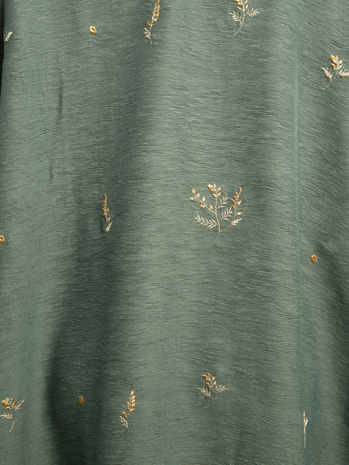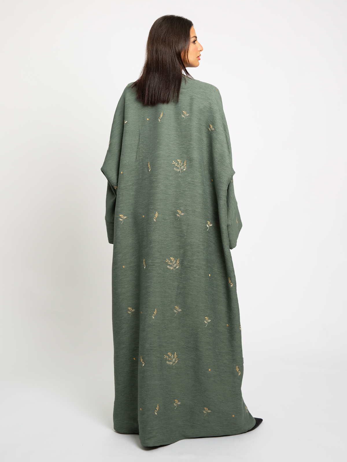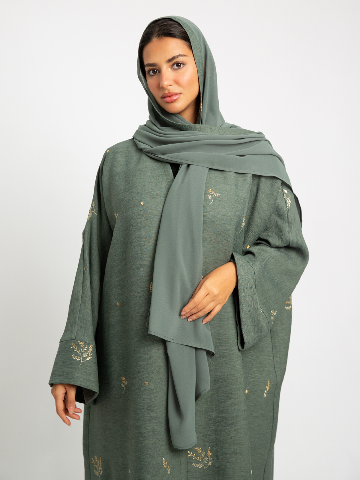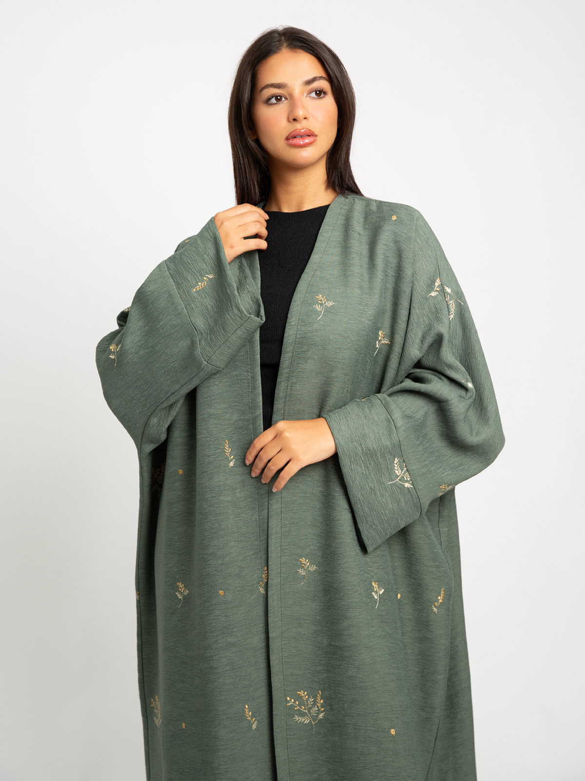 Wide-fit Long Open Abaya in Embroidered Thick Crepe Fabric