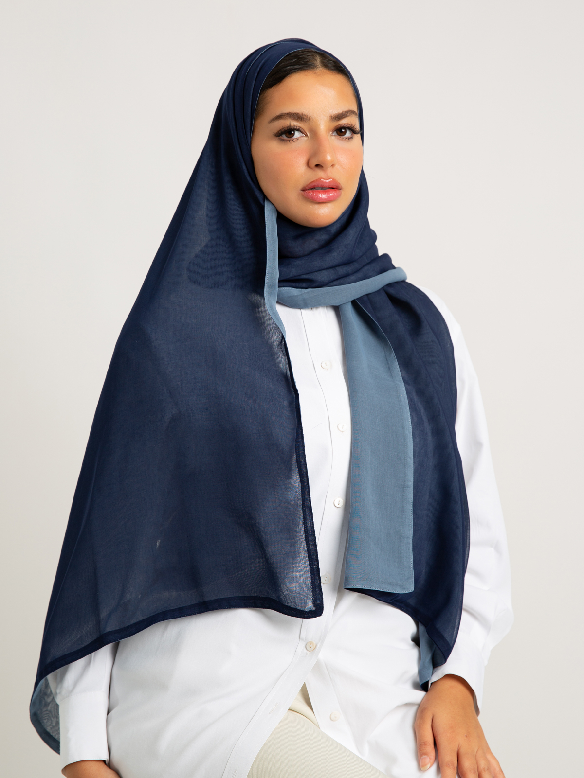 - Blue & Navy Double Side Voile Tarha.