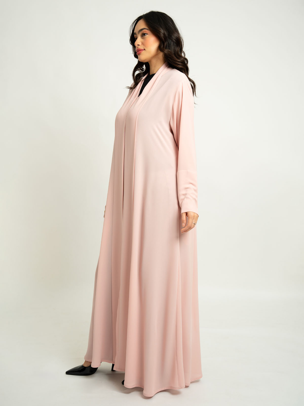 Half Cloche A-Cut Long Closed Abaya in Light Crepe Fabric