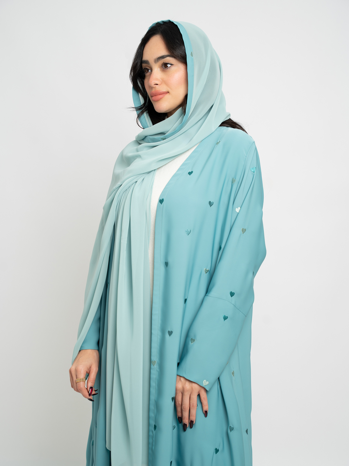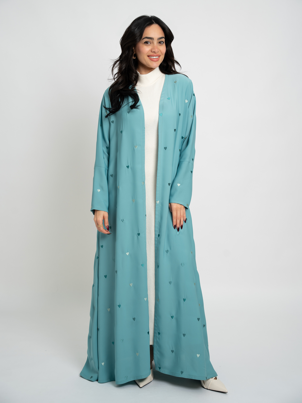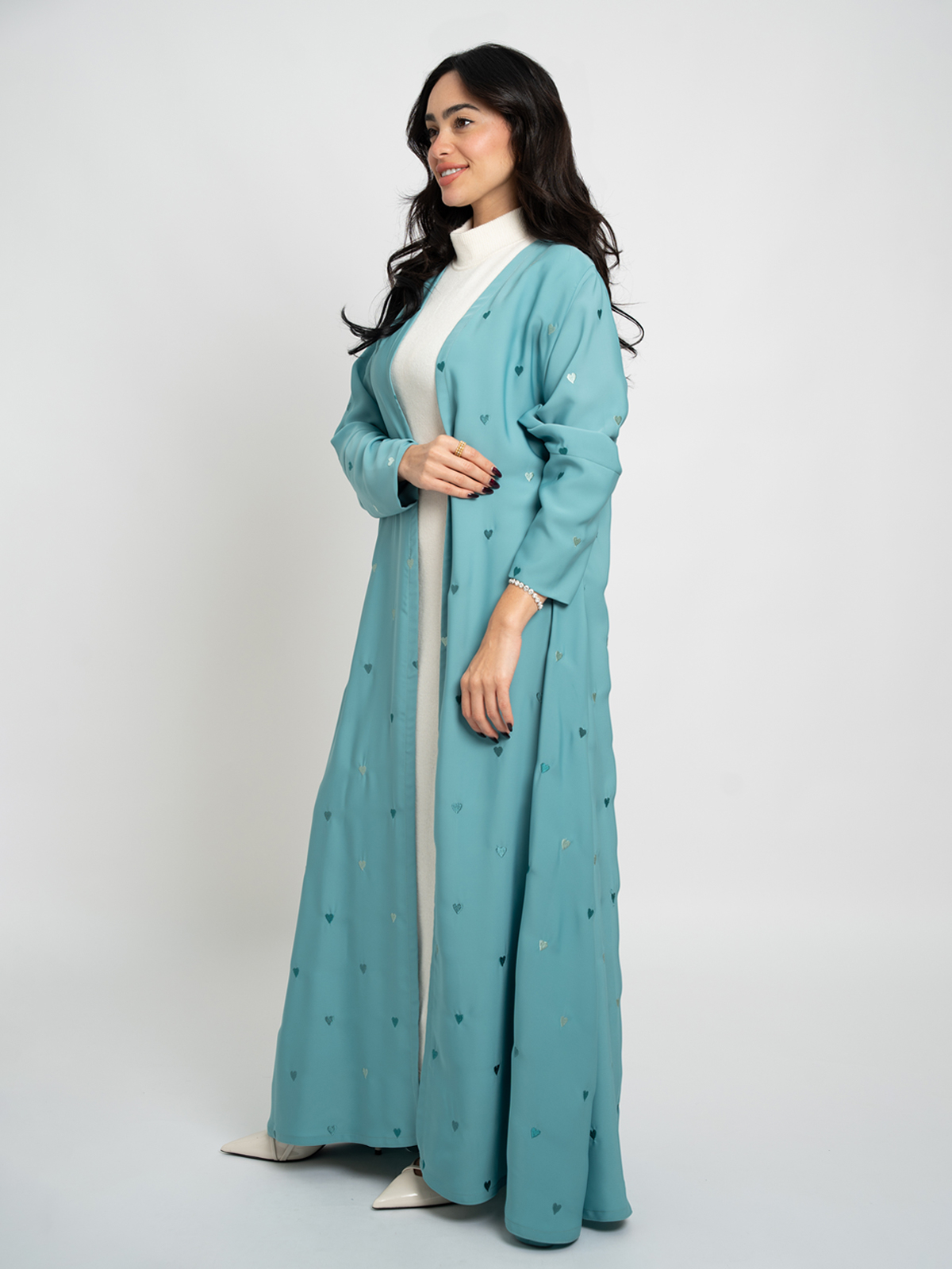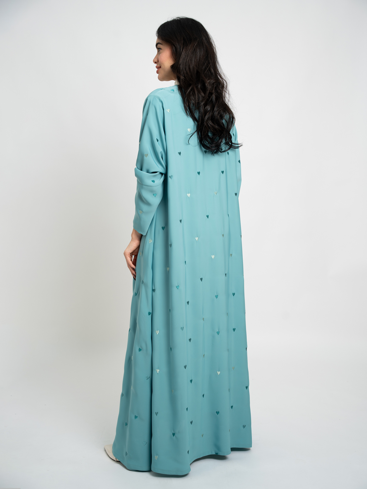 Half Cloche A-Cut Long Open Abaya in Embroidered Crepe Fabric