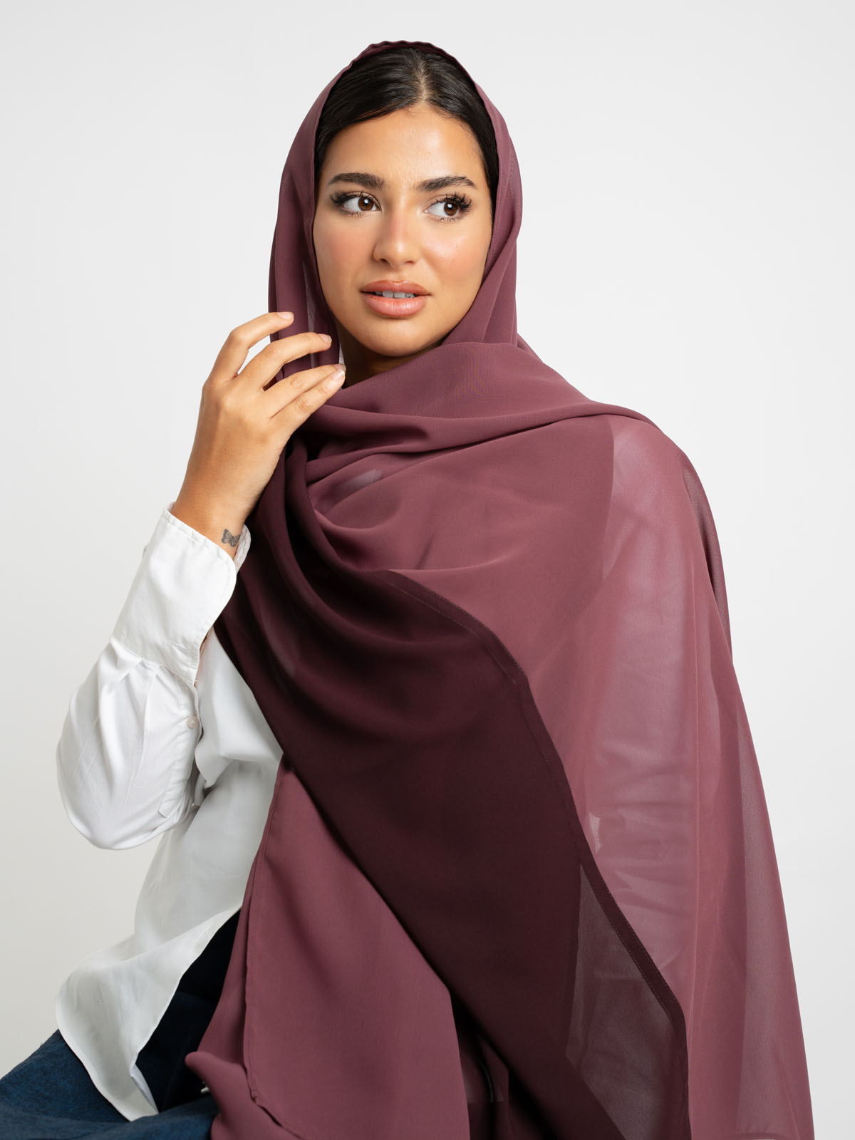 Effortless, refined, and quietly eye-catching. Made from airy chiffon fabric that flows with ease, this tarha features a harmonious two-tone design that adds a subtle statement to your look.