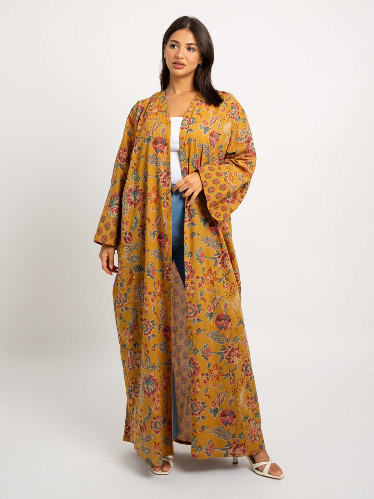- Wide-cut abaya, easy to style.