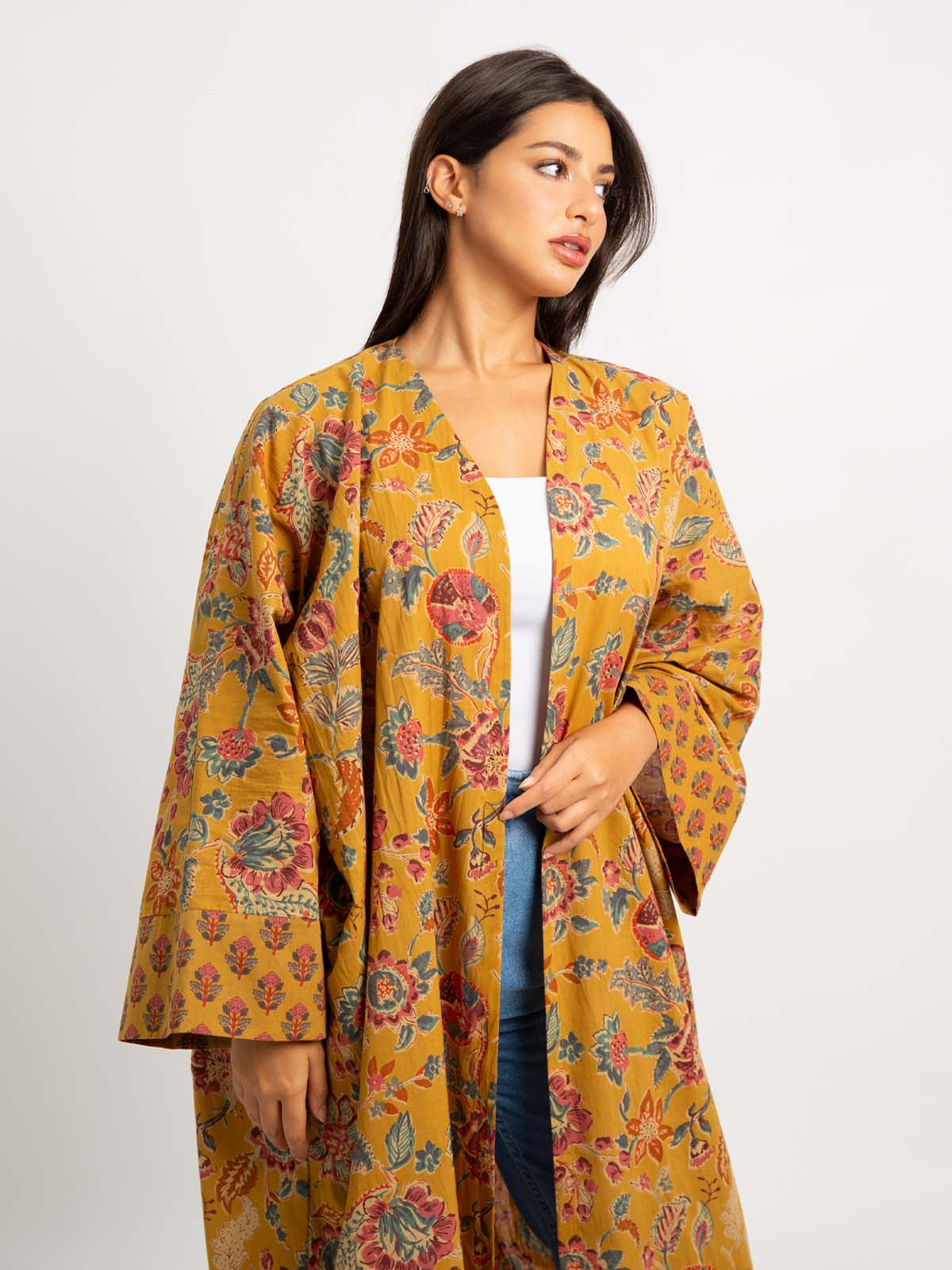 A breezy, wide-fit abaya made of 100% natural cotton fabric, designed with comfort and attention to detail in mind. Featuring playful prints and elegant colors carefully selected for everyday sophistication. Perfect for casual outings and daily wear.