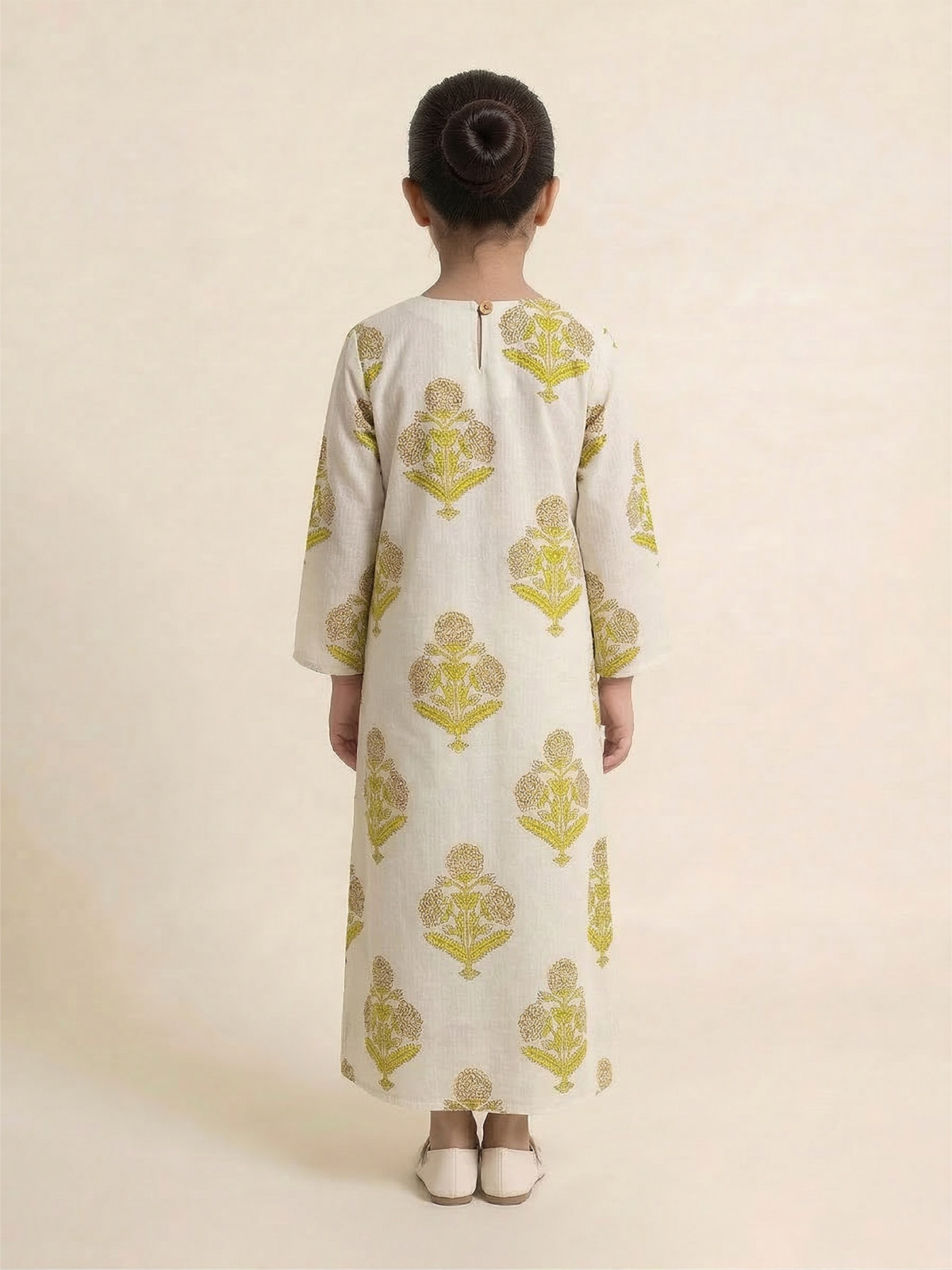 Kindly note: This jalabiya comes 2 inches shorter than the standard length. If you prefer a full-length fit, we recommend choosing one size up. Available in sizes for girls aged 3 to 9 years.