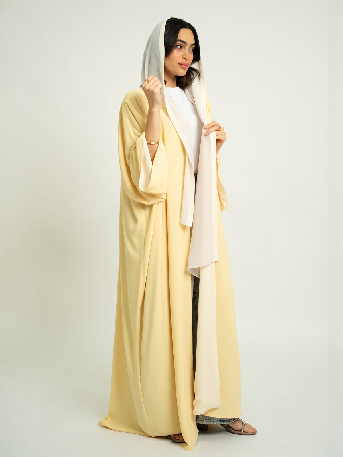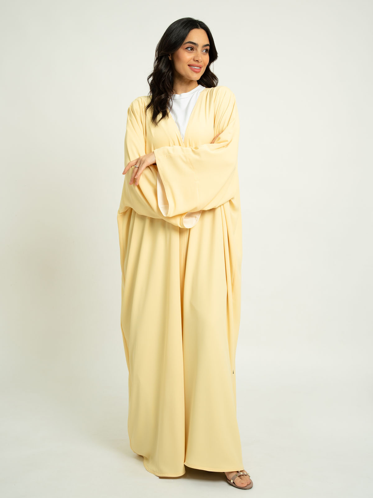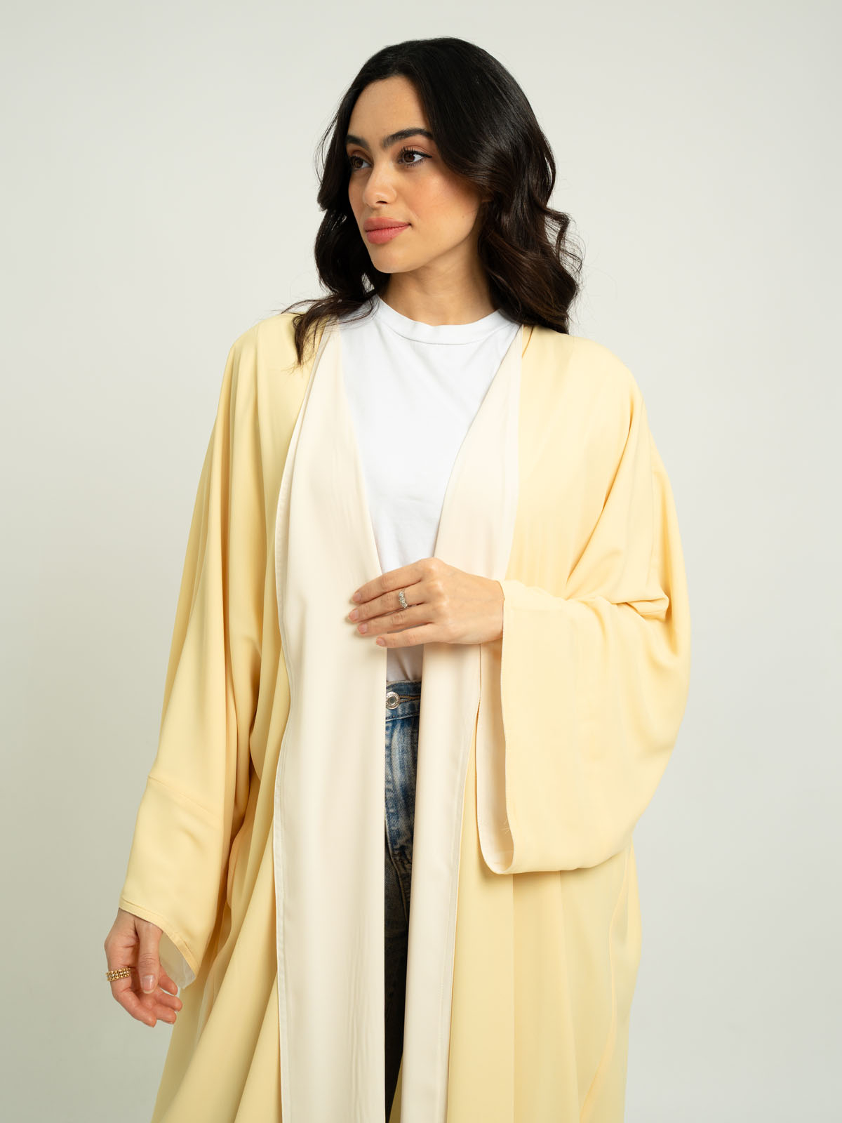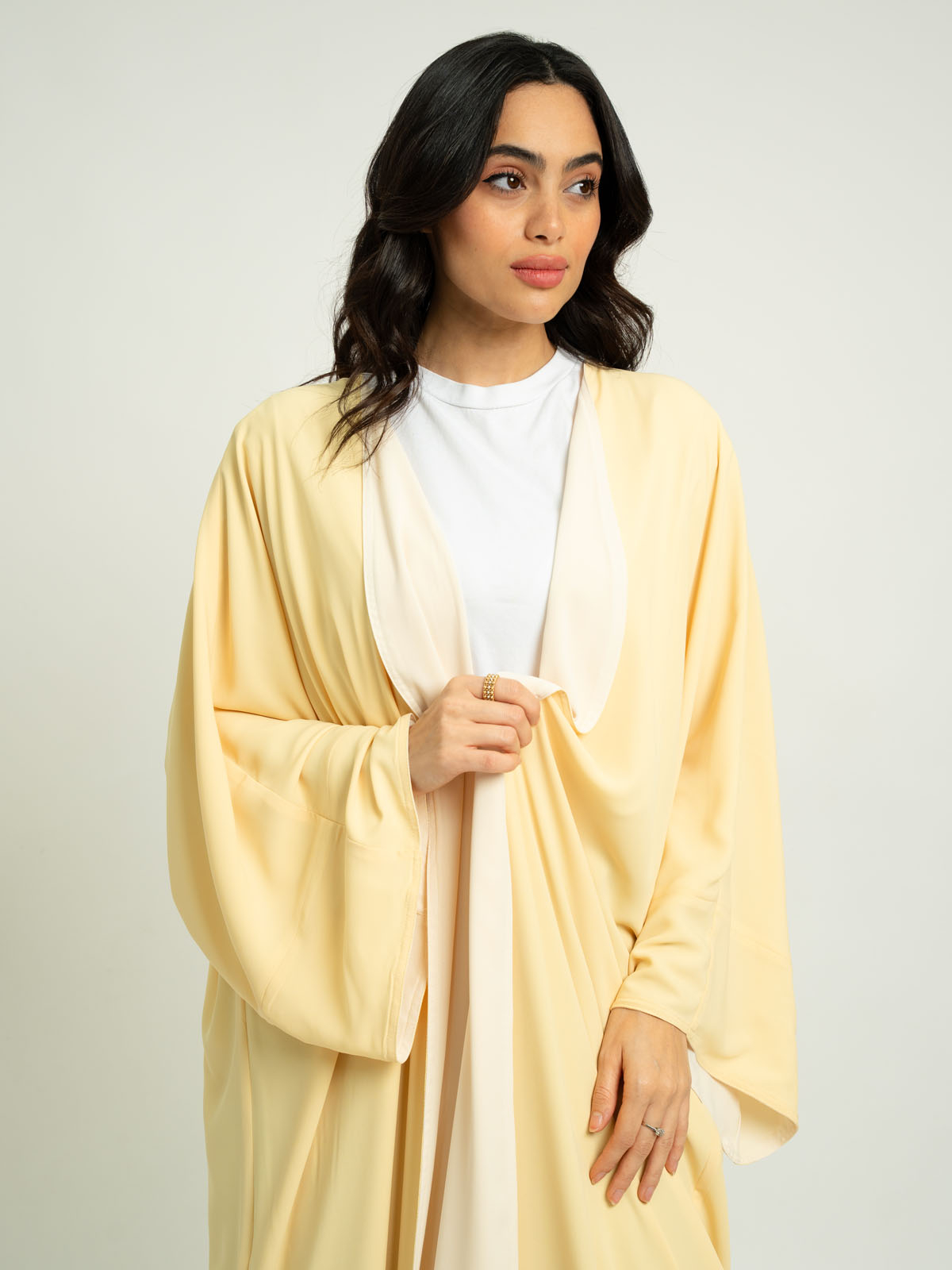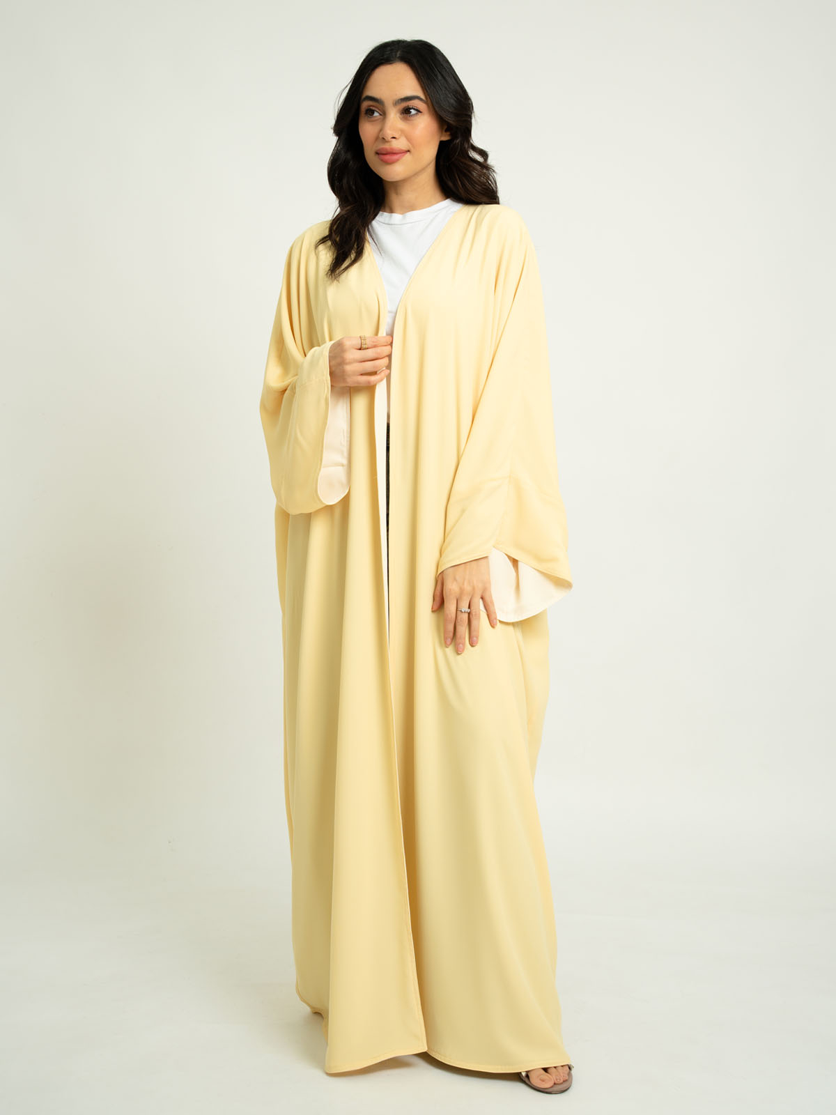 Double Face Flowstyle Wide-fit Long Open Abaya in Light Fabric