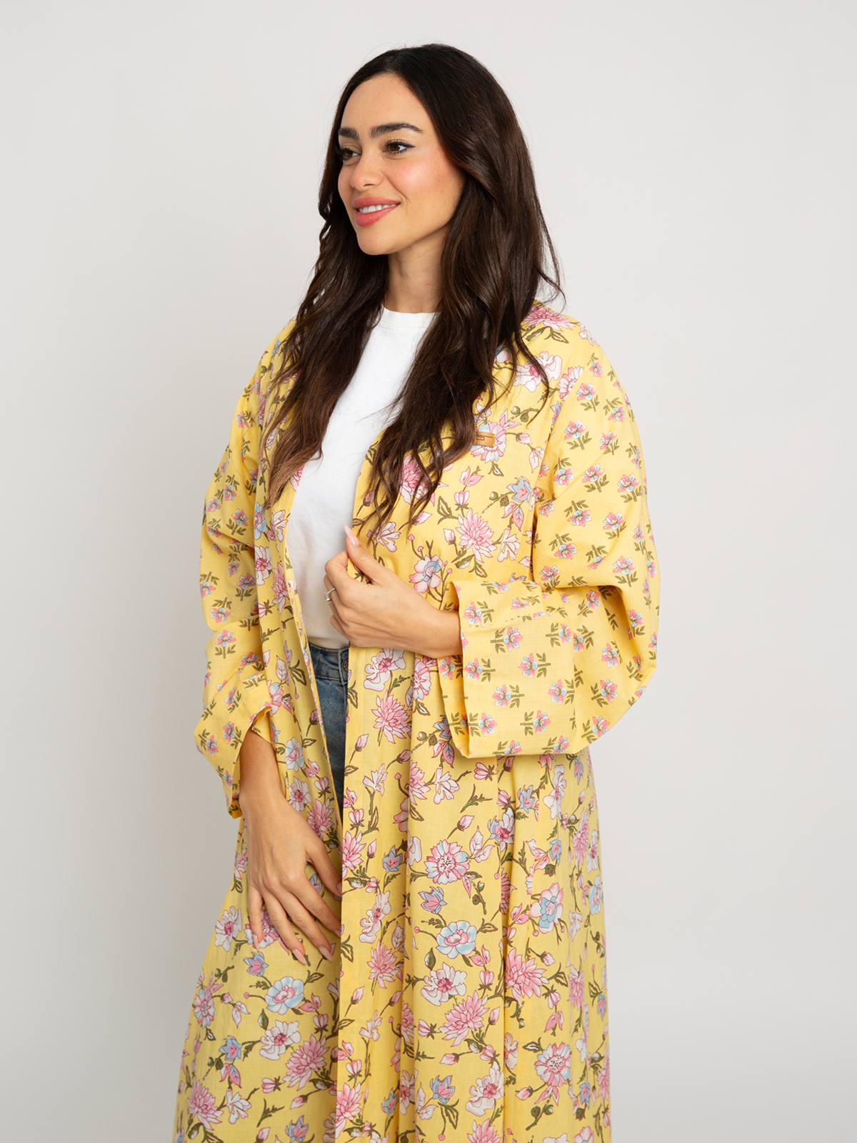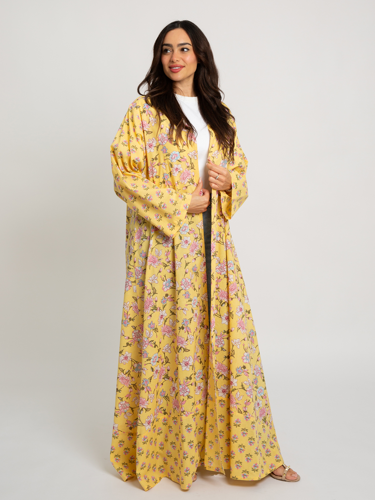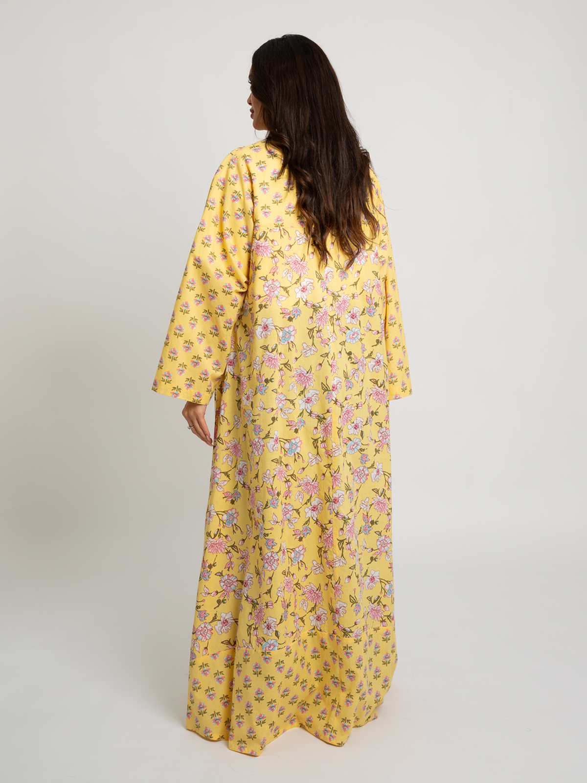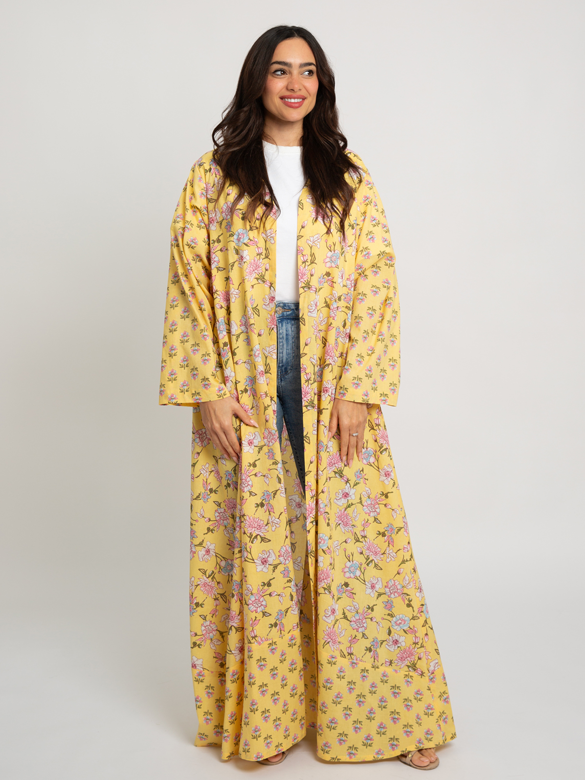 A breezy, relaxed-fit A-cut half cloche abaya made of 100% natural cotton, designed with comfort and attention to detail in mind. Featuring playful prints and elegant colors carefully selected for everyday sophistication. Perfect for casual outings and daily wear.