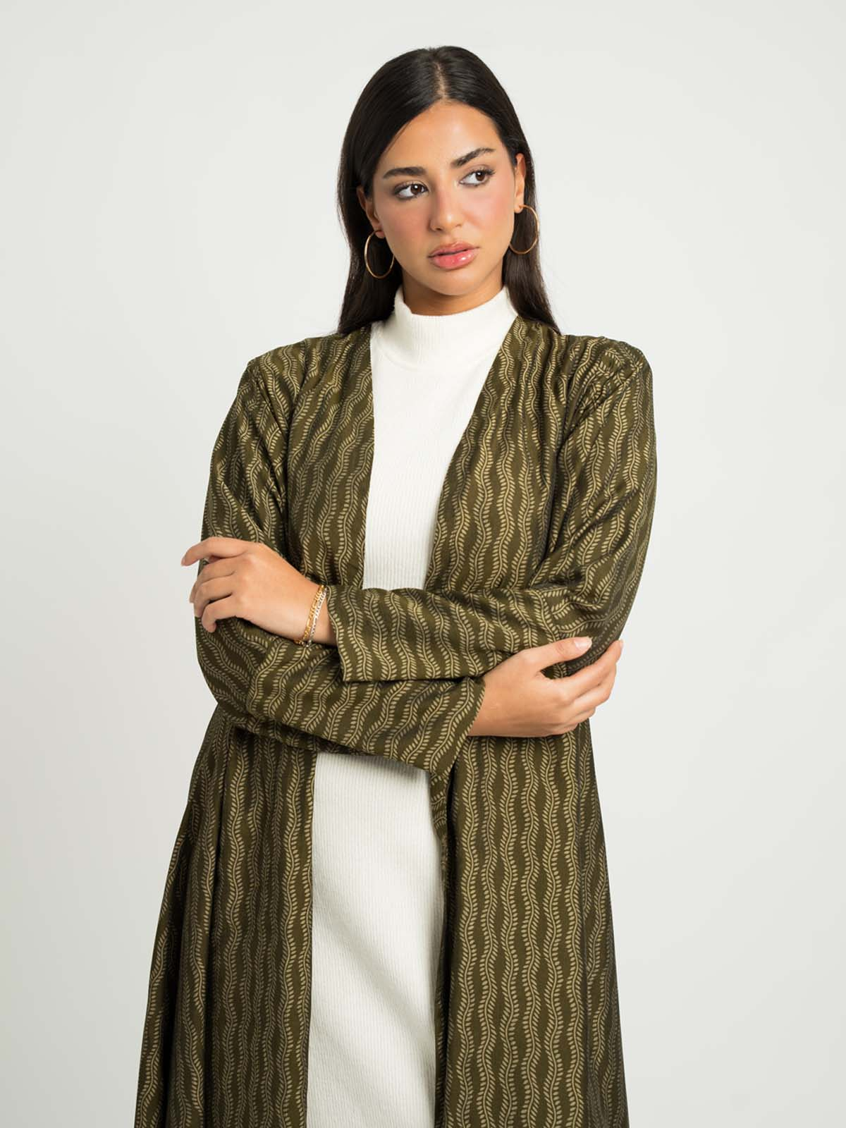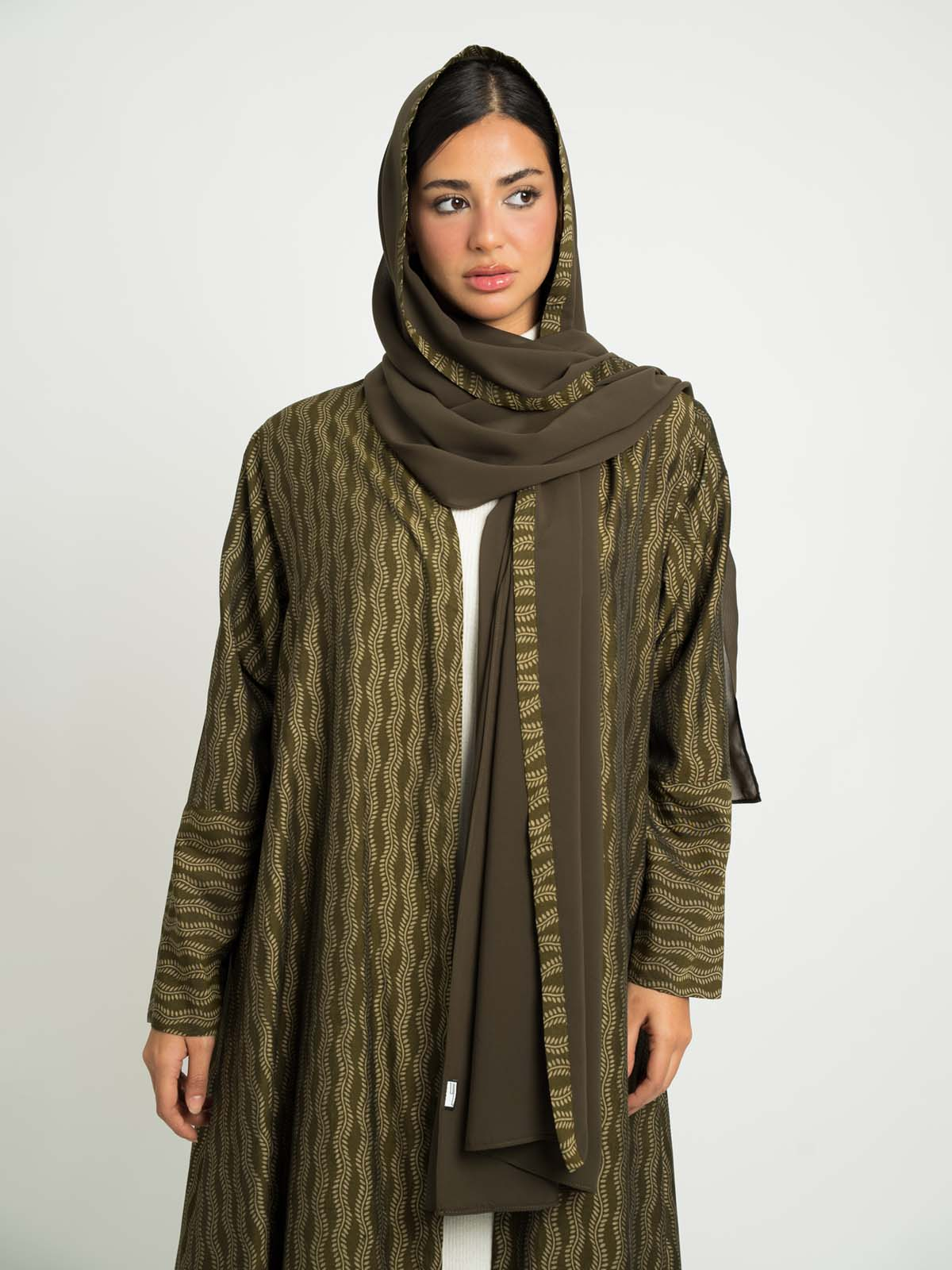 Abaya Color: Olive Abaya with Prints.